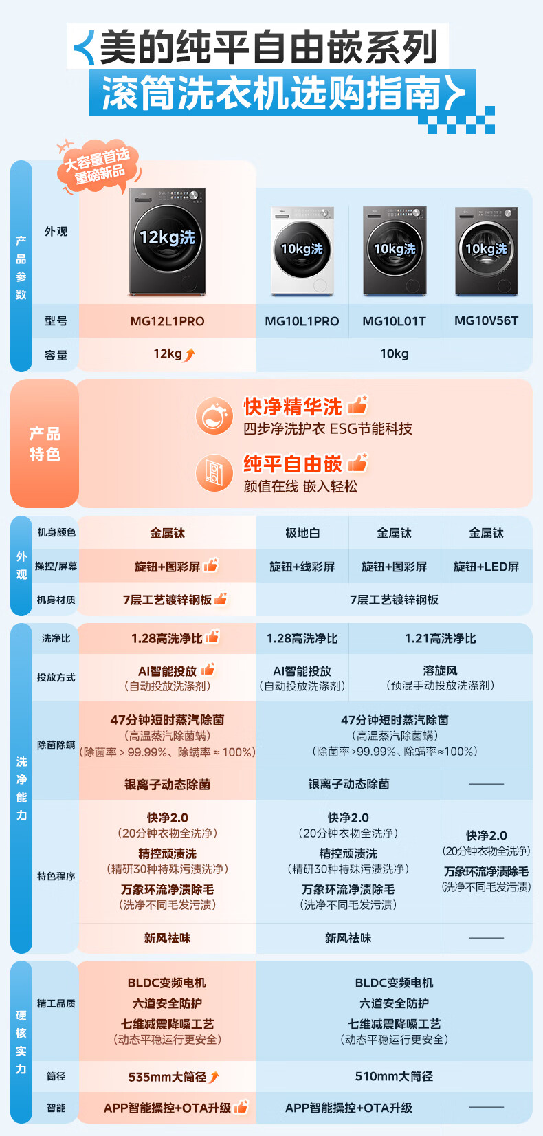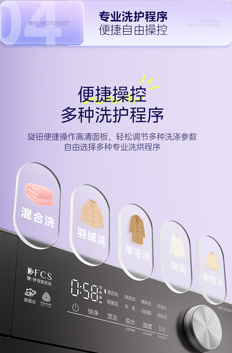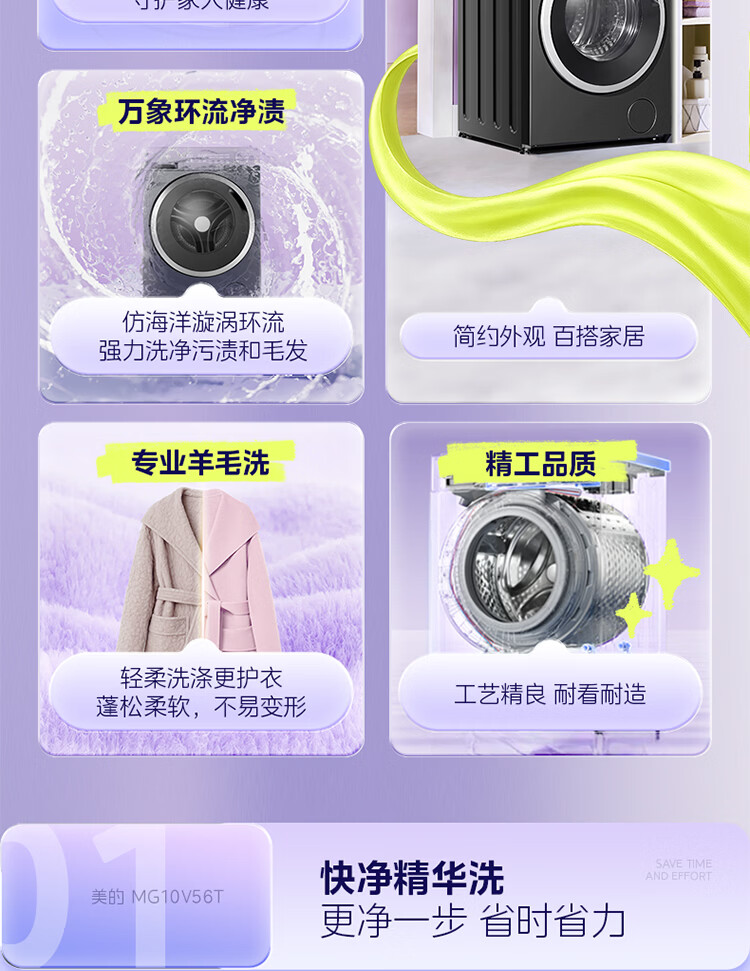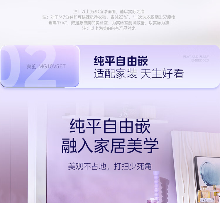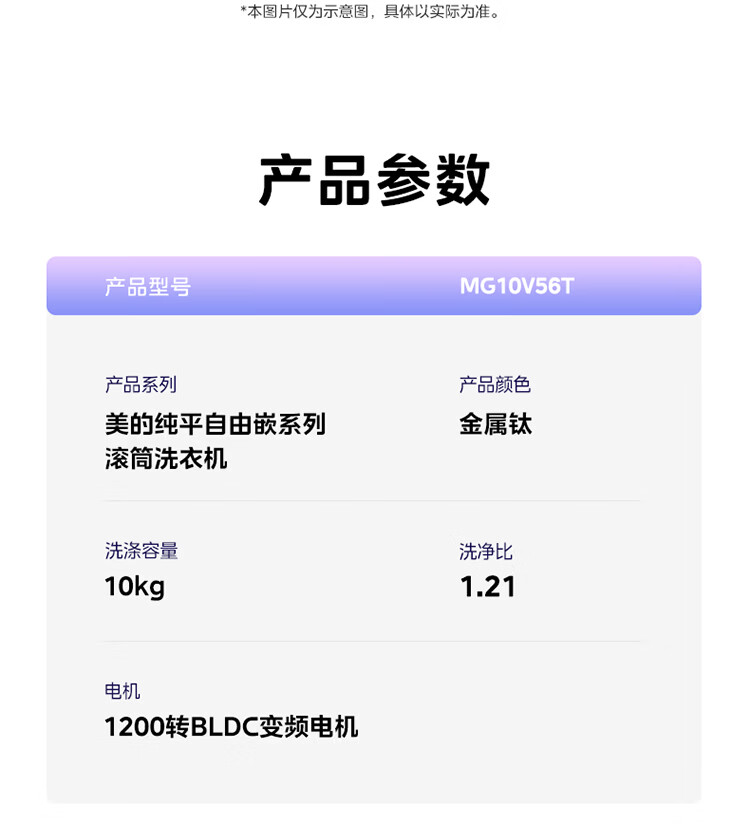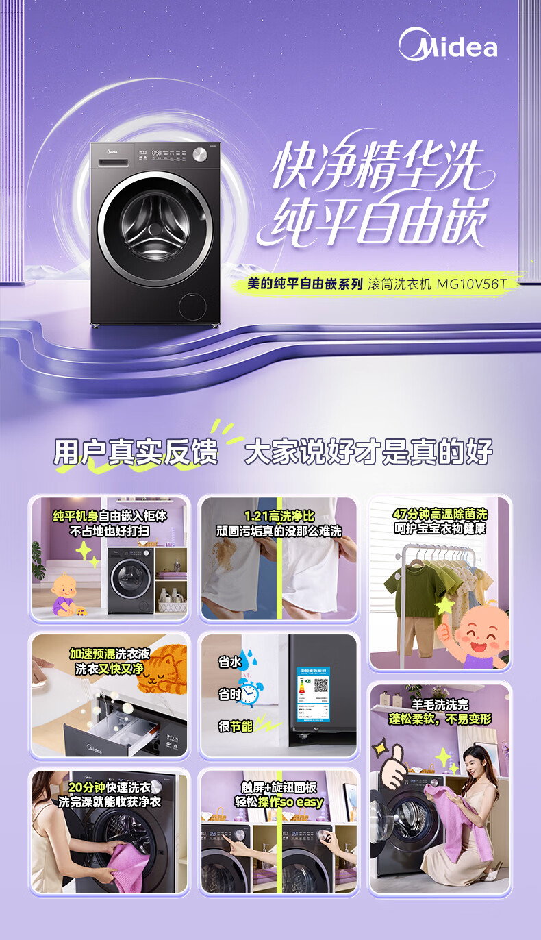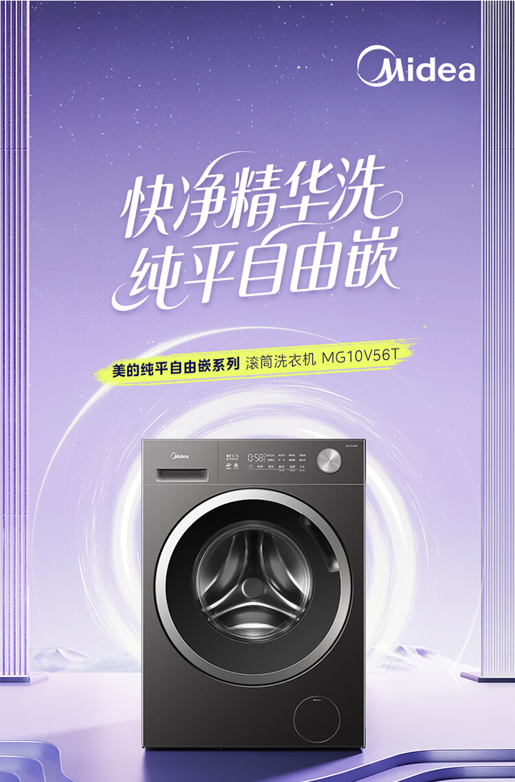 美的(Midea)纯平自由嵌 滚筒洗衣机全自动 10公斤 1.21高洗净比 除菌除螨 MG10V56T 以旧换新 国家补贴 自营
