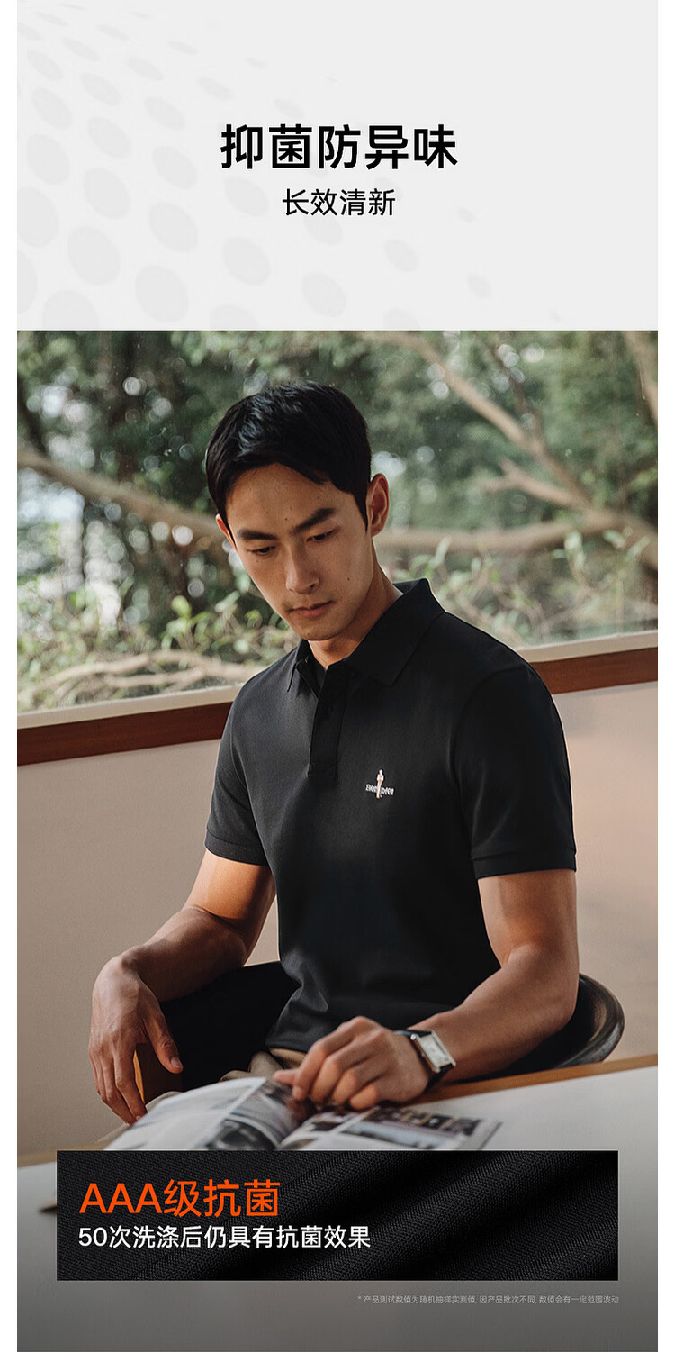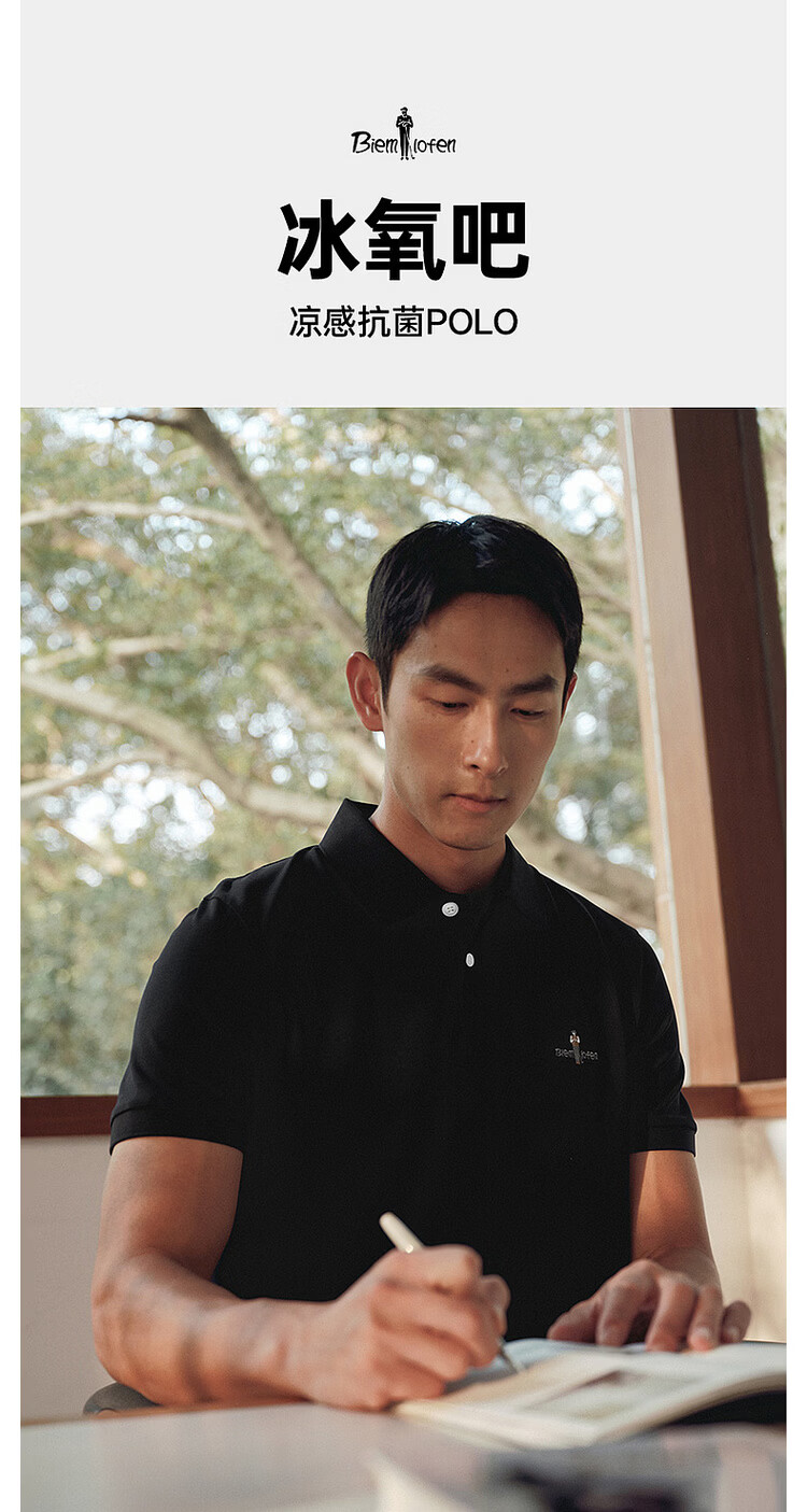 比音勒芬【冰氧吧】夏季款男士时尚休闲上衣多色抗菌凉感舒弹短袖POLO衫T 14浅绿色 3XL (120)
