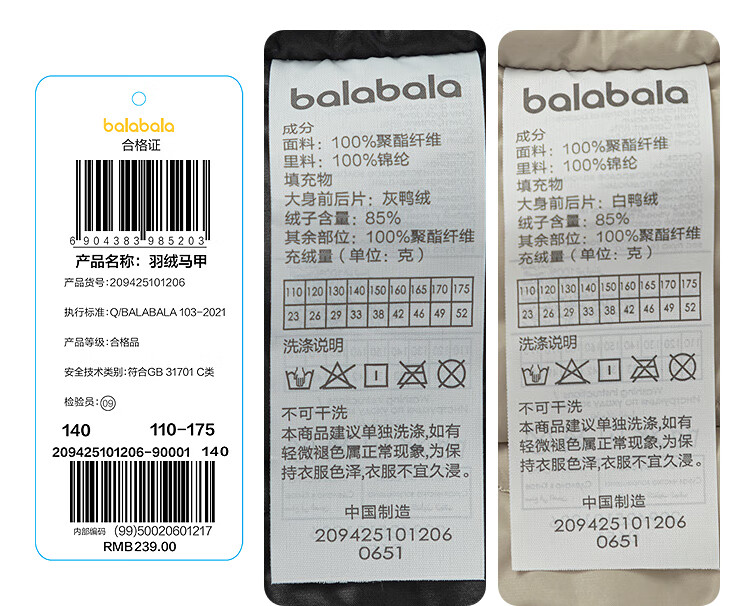 巴拉巴拉童装儿童马甲女男童轻薄外套上衣童装2025秋冬装保暖209425101206