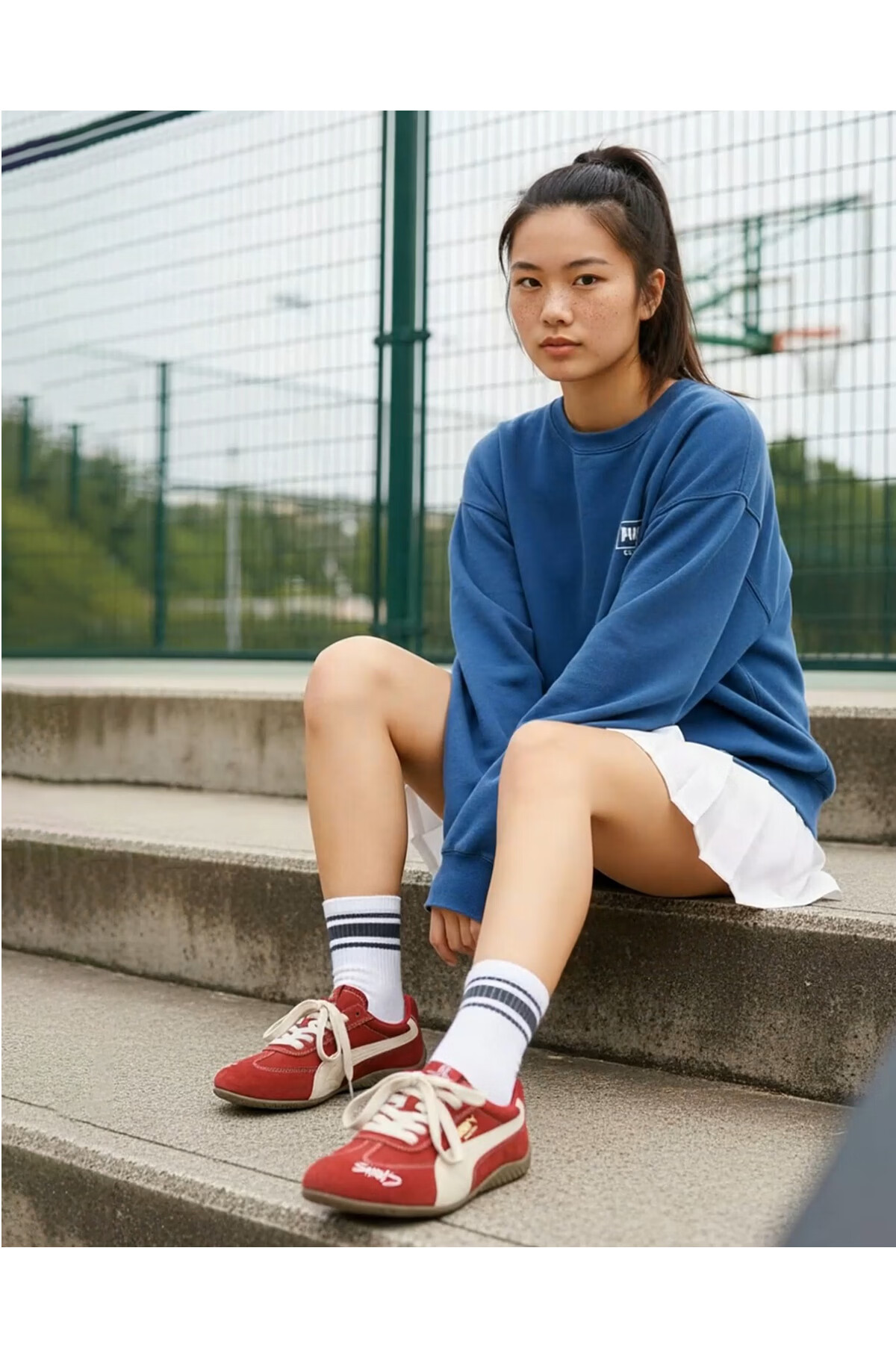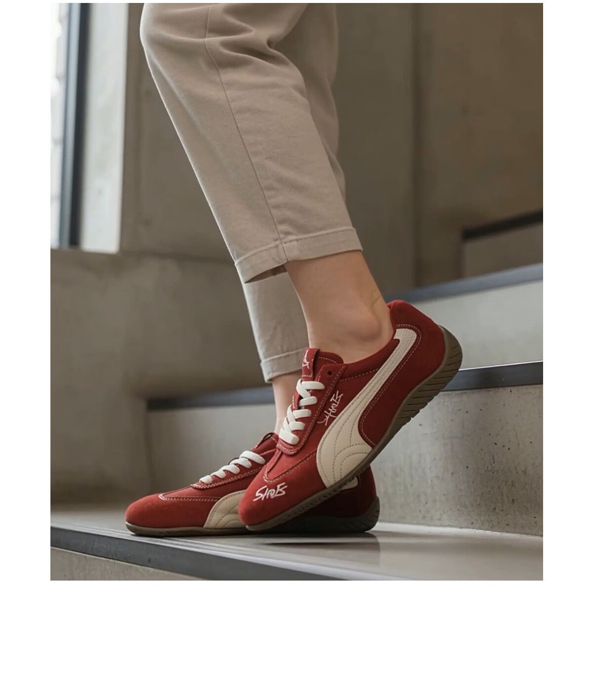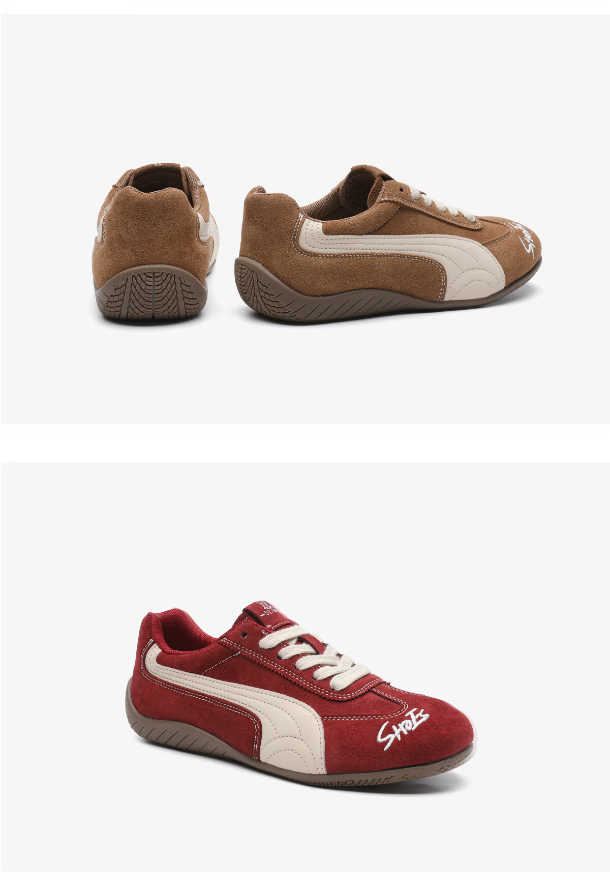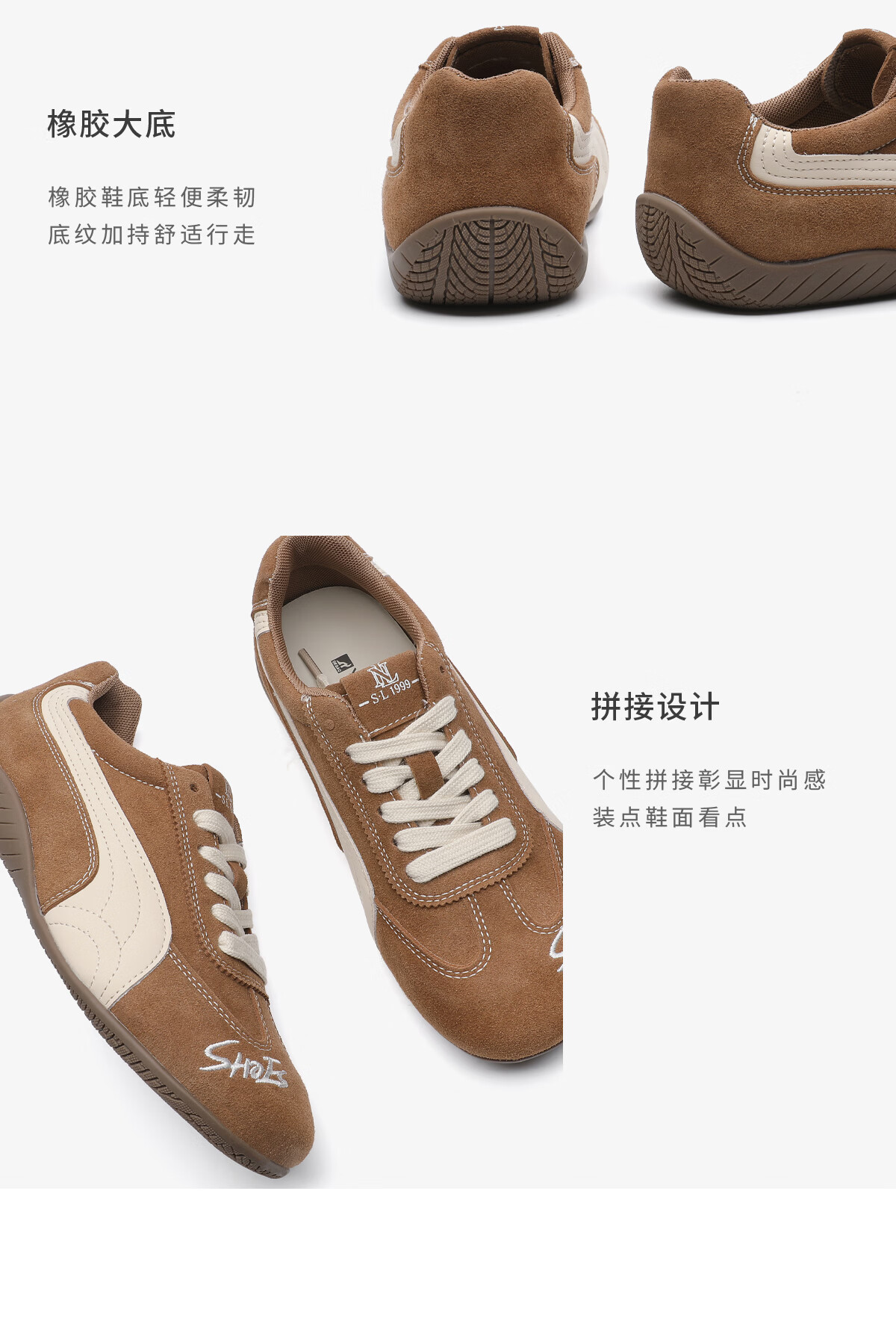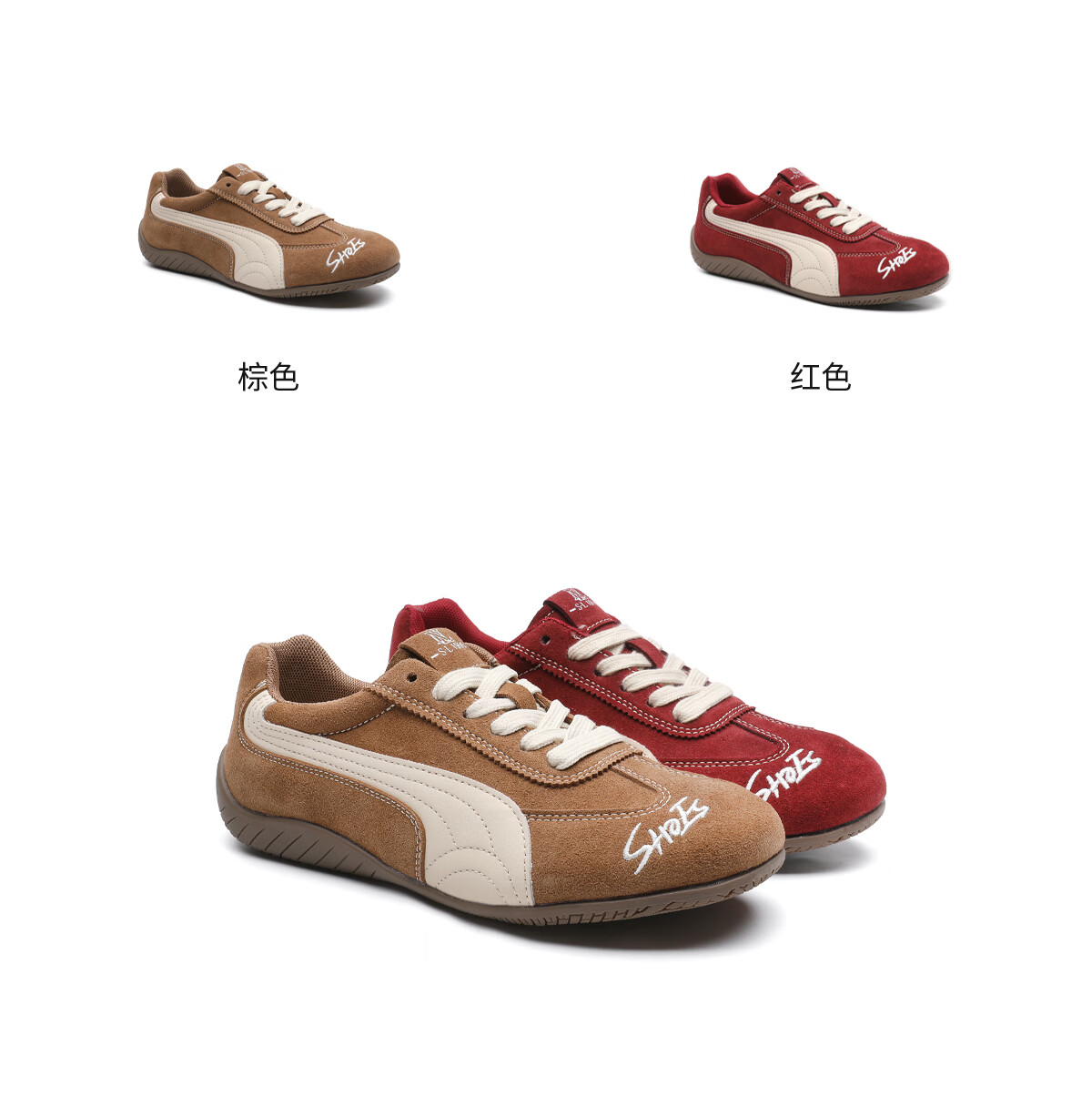 月芽儿红色拼色德训鞋女2025年冬季季新款系带休闲鞋复古运动软底女鞋 棕色03S 34