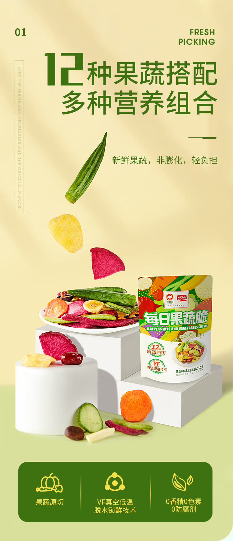 盼盼果蔬脆 混合蔬菜干休闲零食水果脆片蜜饯果干下午茶 250g/袋