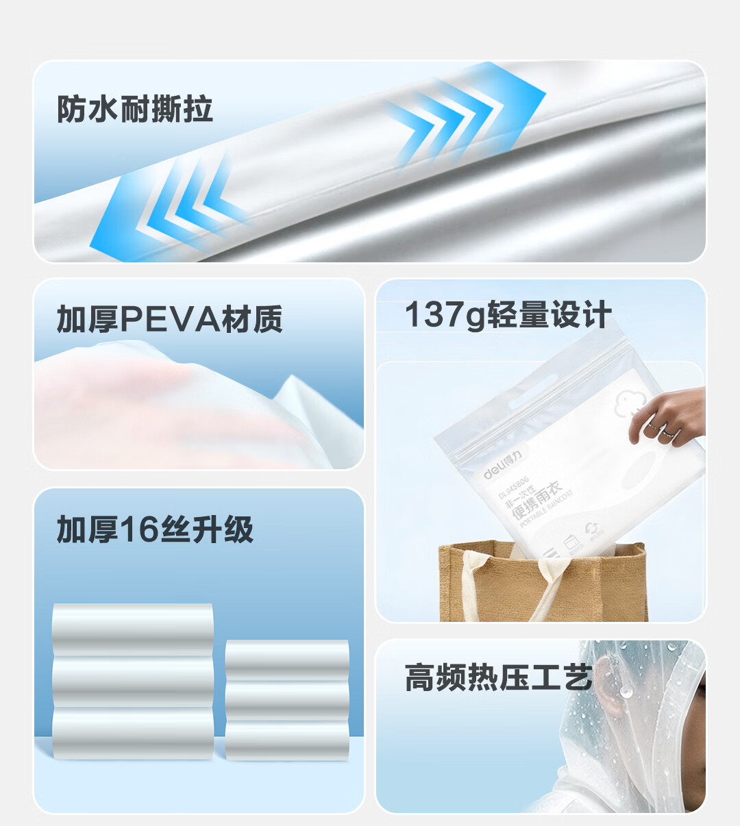 得力(deli)一次性雨衣雨披加厚长款成人暴雨骑行全身便携户外通用 棕