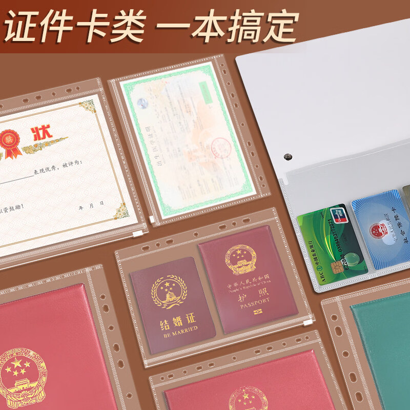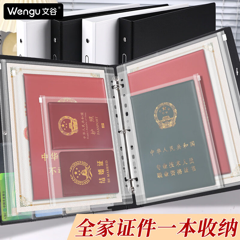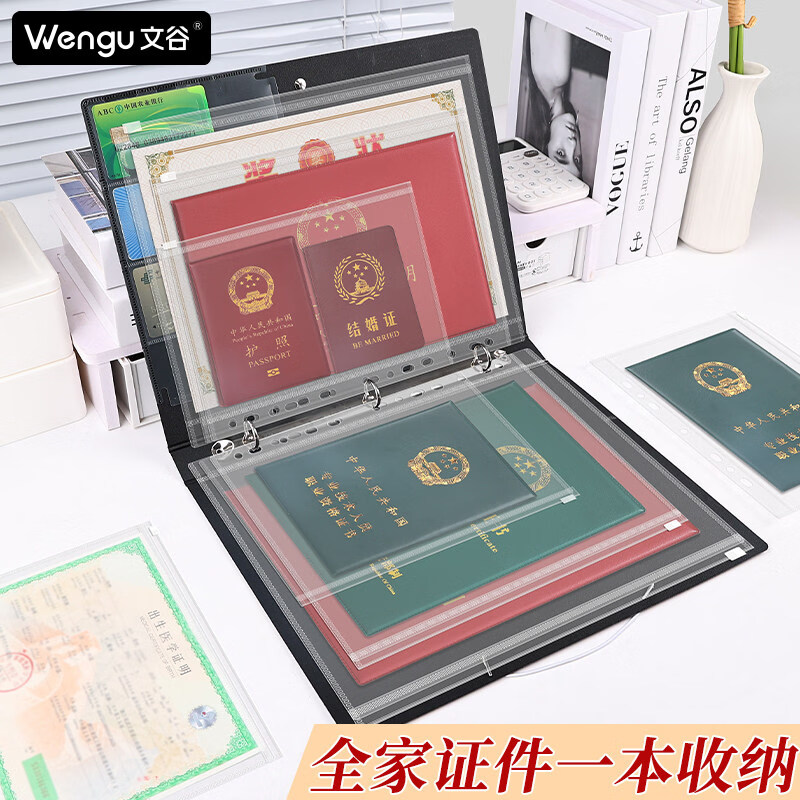 文谷(Wengu)资料收纳册家庭A4办公会议证件活页夹出生证房产护照奖状多功能产检报告HYSN003-A云白+内芯10张