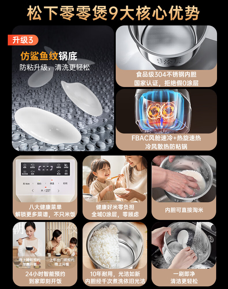 松下(Panasonic)【国家补贴】Xtra零零煲电饭煲0涂层IH家用无涂层电饭锅4-5人不锈钢胆4升一级能效SR-HFS153C-W