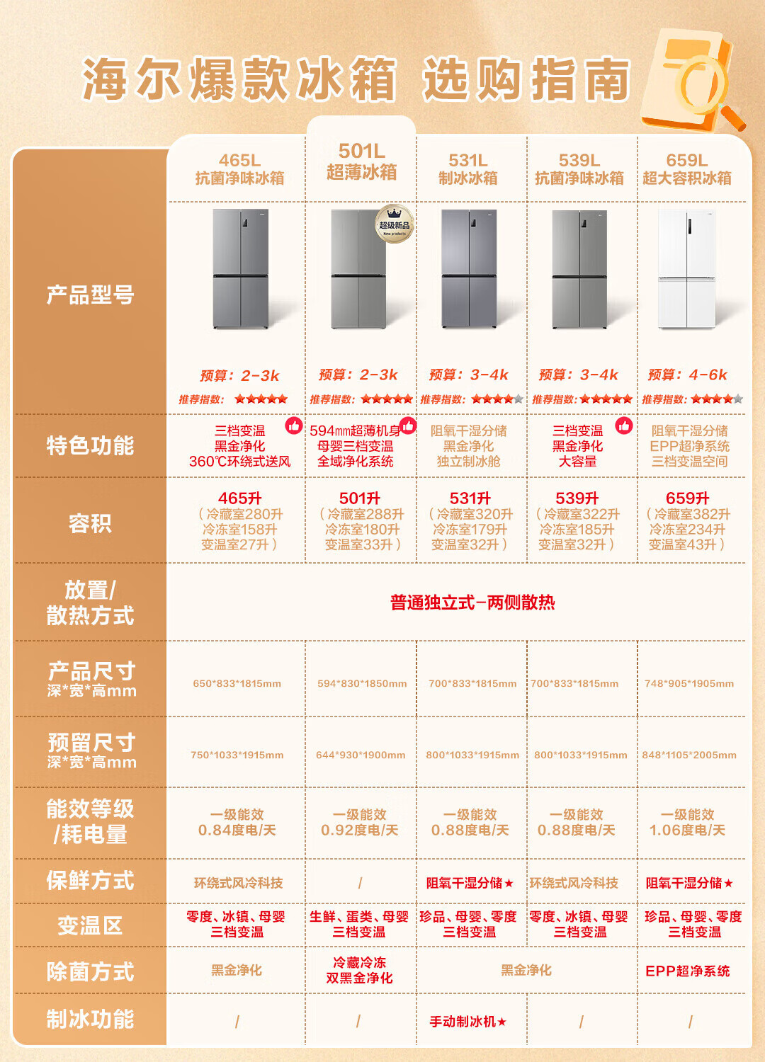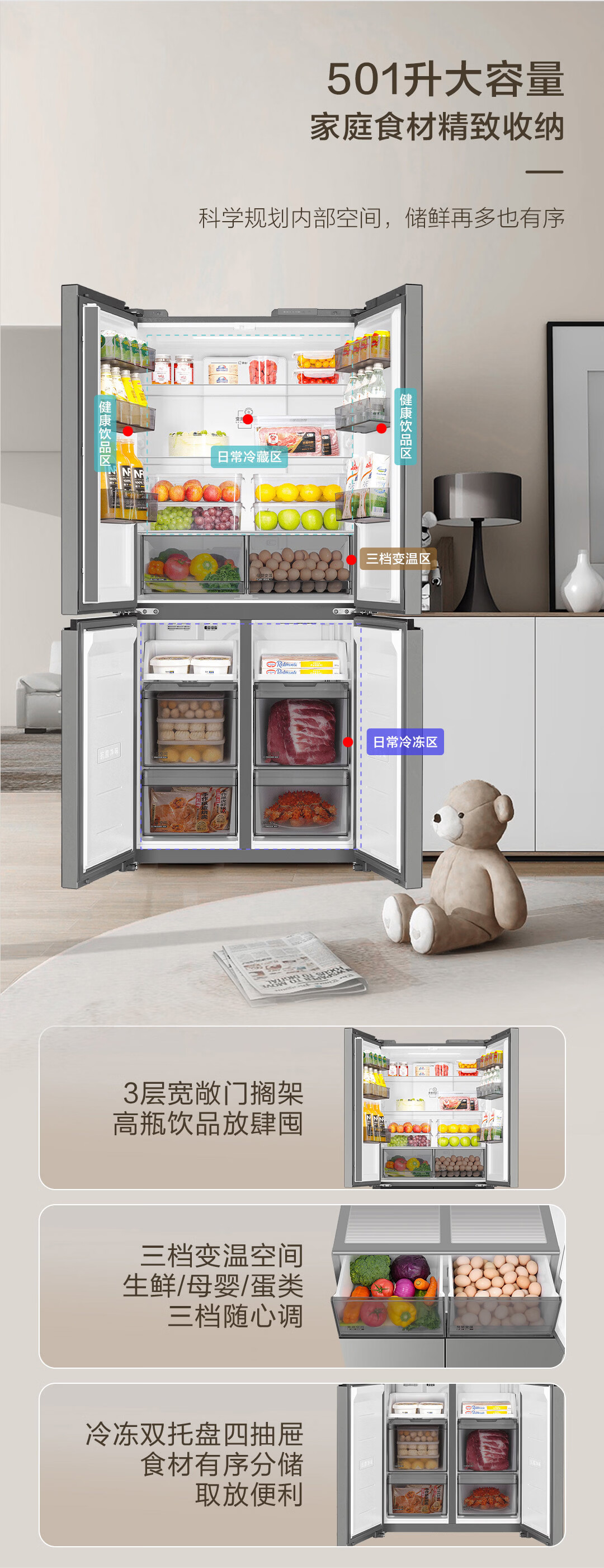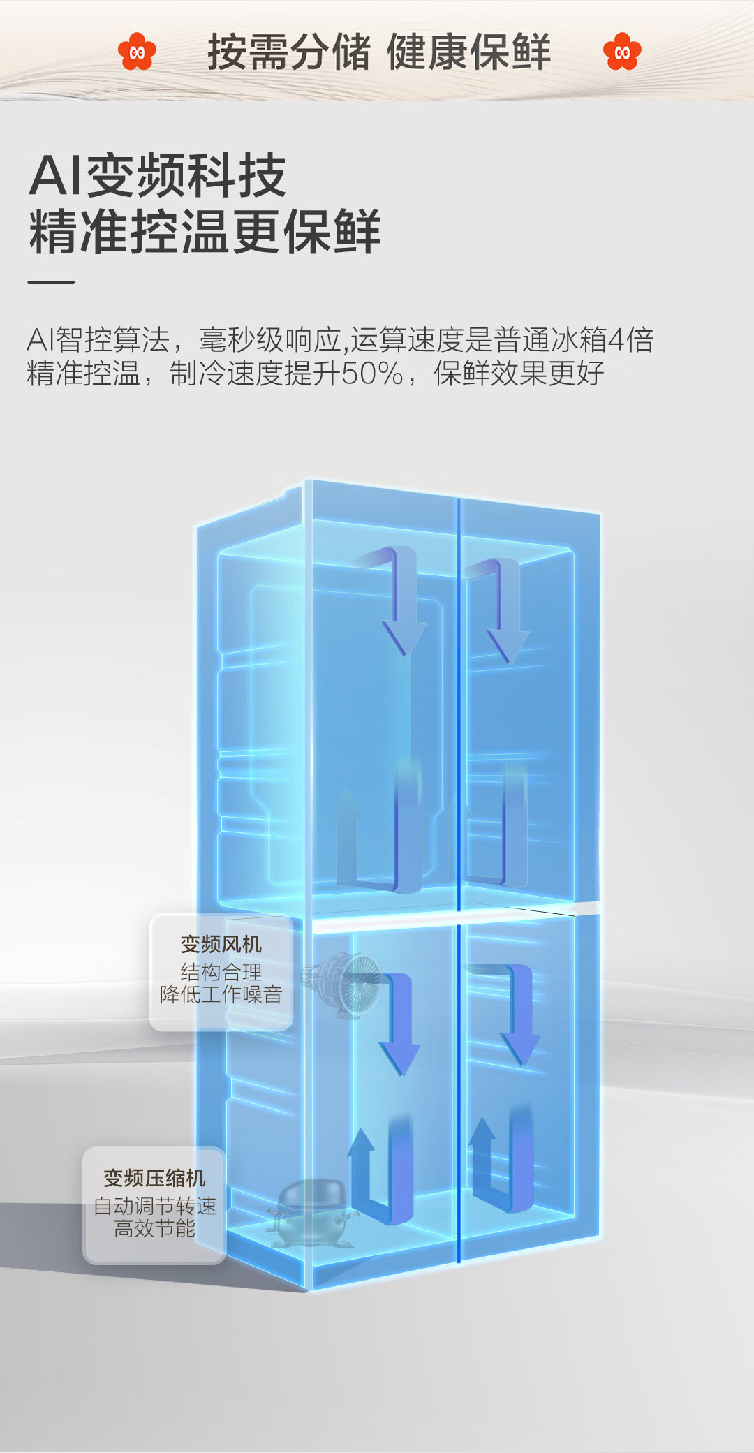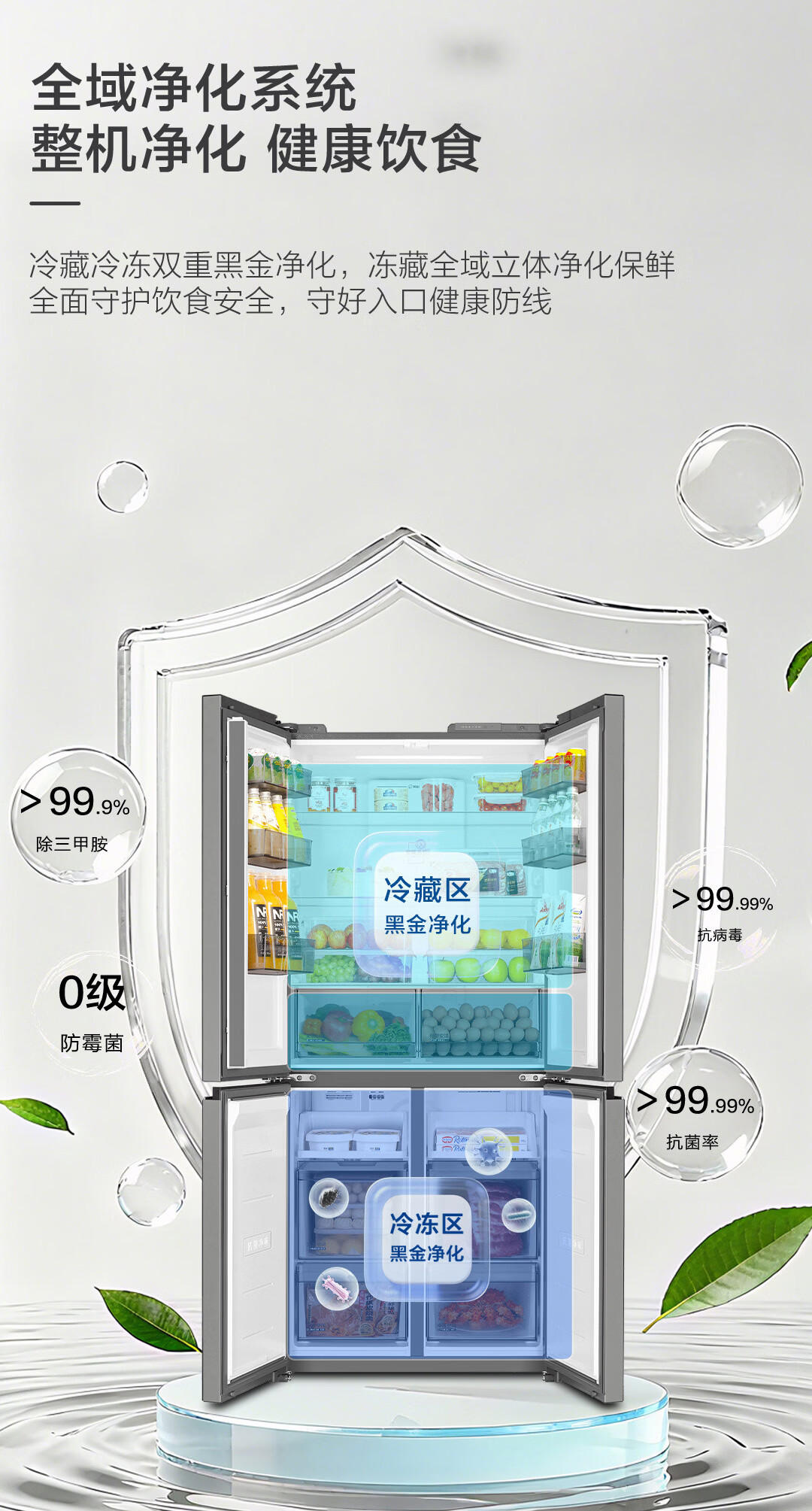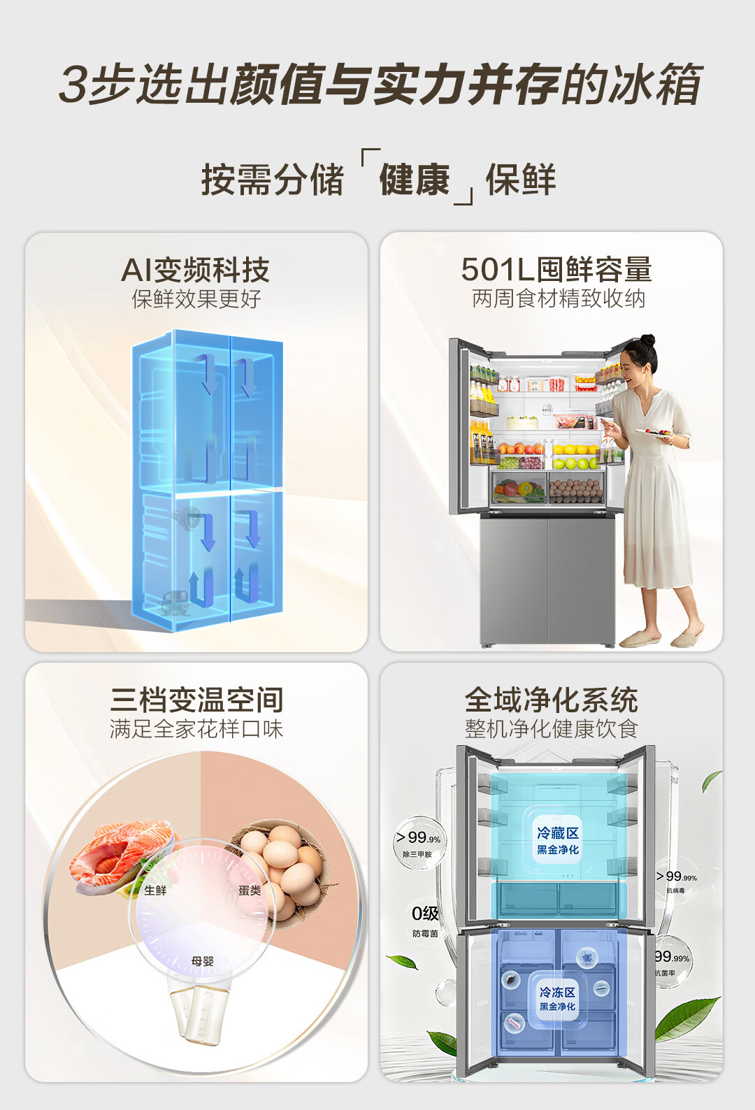 海尔(Haier)「小红花系列」501L十字门冰箱超薄冷藏冷冻双净化一级变频风冷无霜BCD-501WGHTDEDH9U1国家补贴