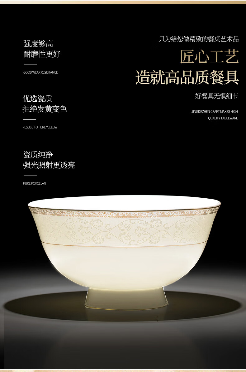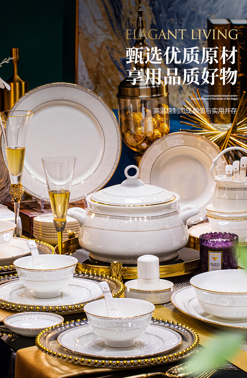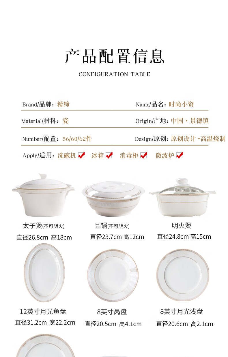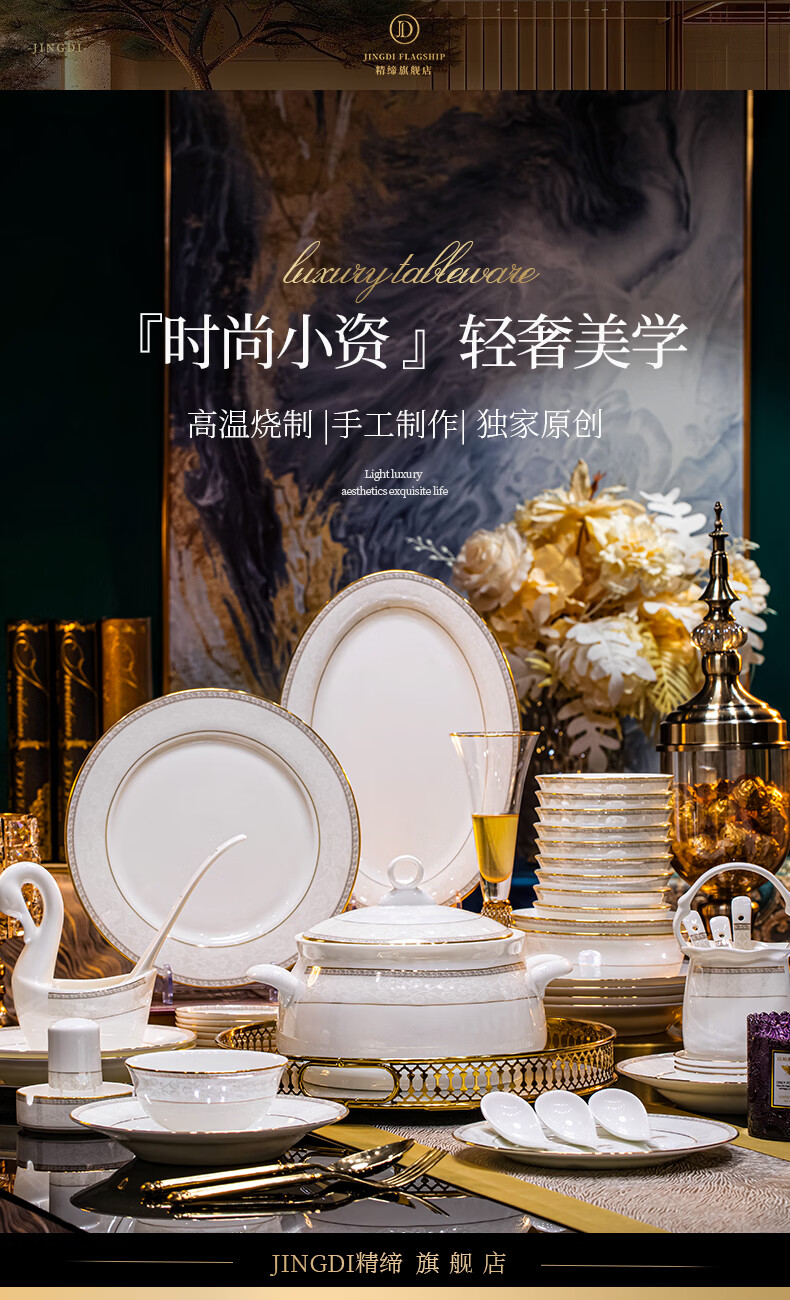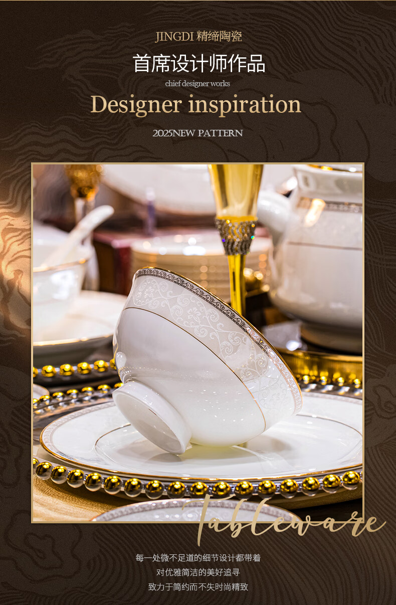 精缔陶瓷JINGDI2025新款碗碟套装家用碗筷乔迁高温骨瓷餐具套装景德镇陶瓷碗盘子 【80%人选择购买】66件升级配富贵煲 66件套