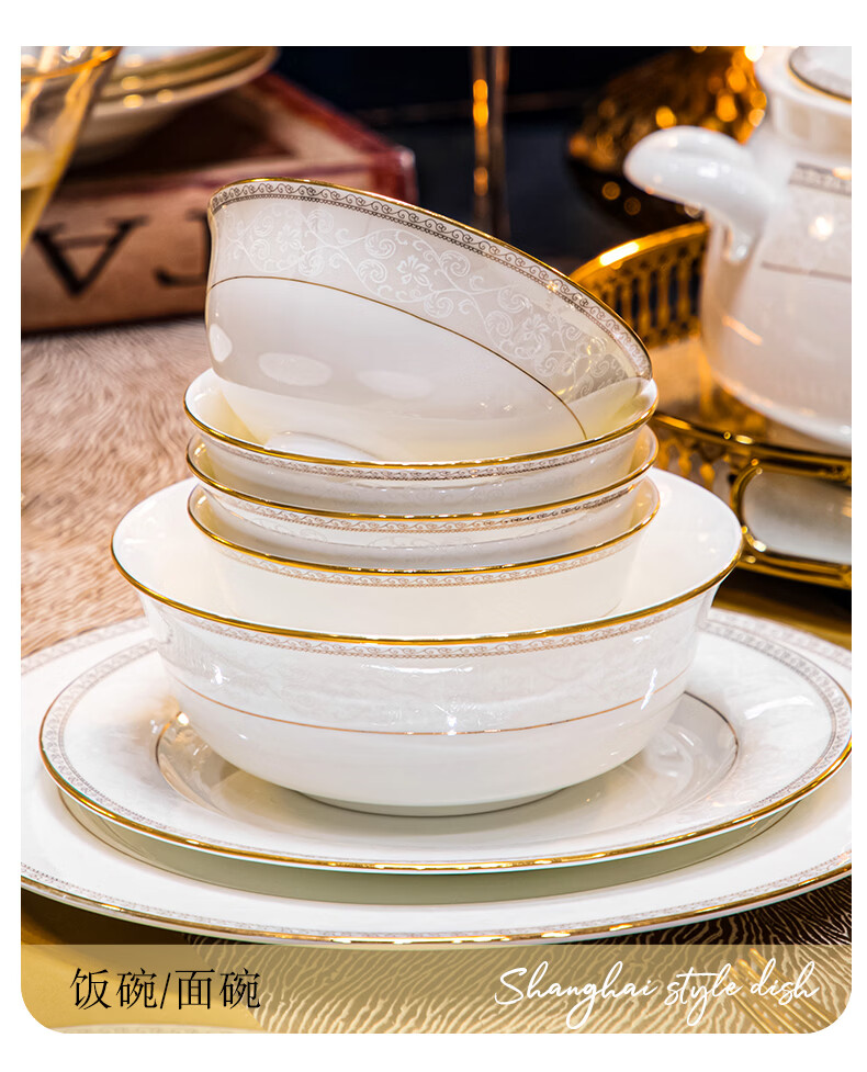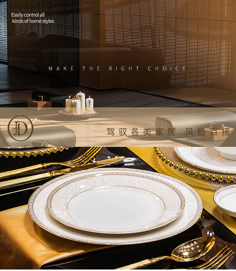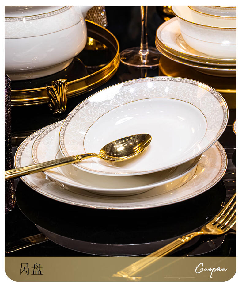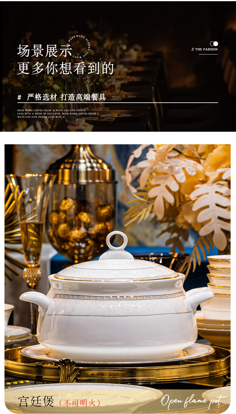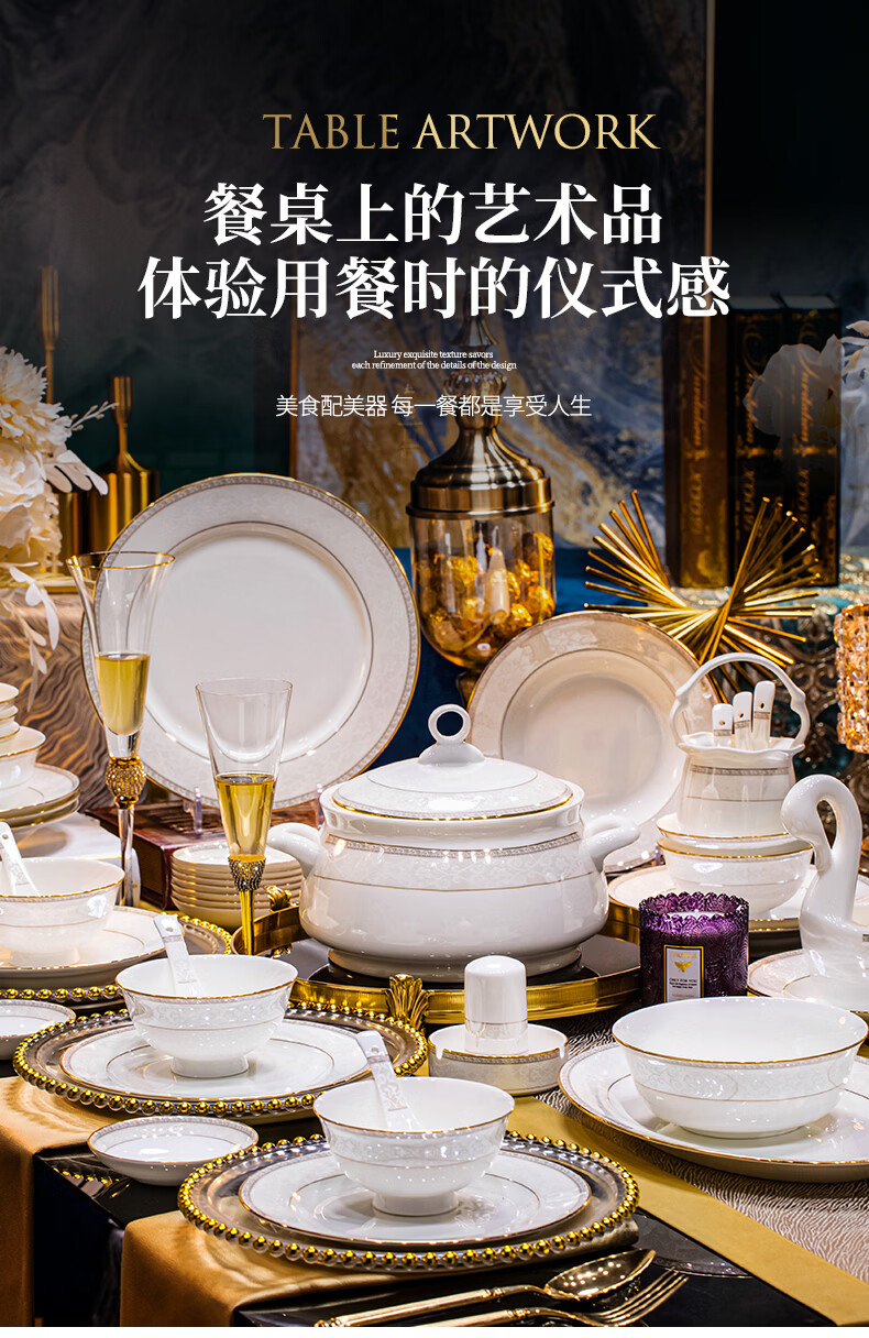 精缔陶瓷JINGDI2025新款碗碟套装家用碗筷乔迁高温骨瓷餐具套装景德镇陶瓷碗盘子 【80%人选择购买】66件升级配富贵煲 66件套