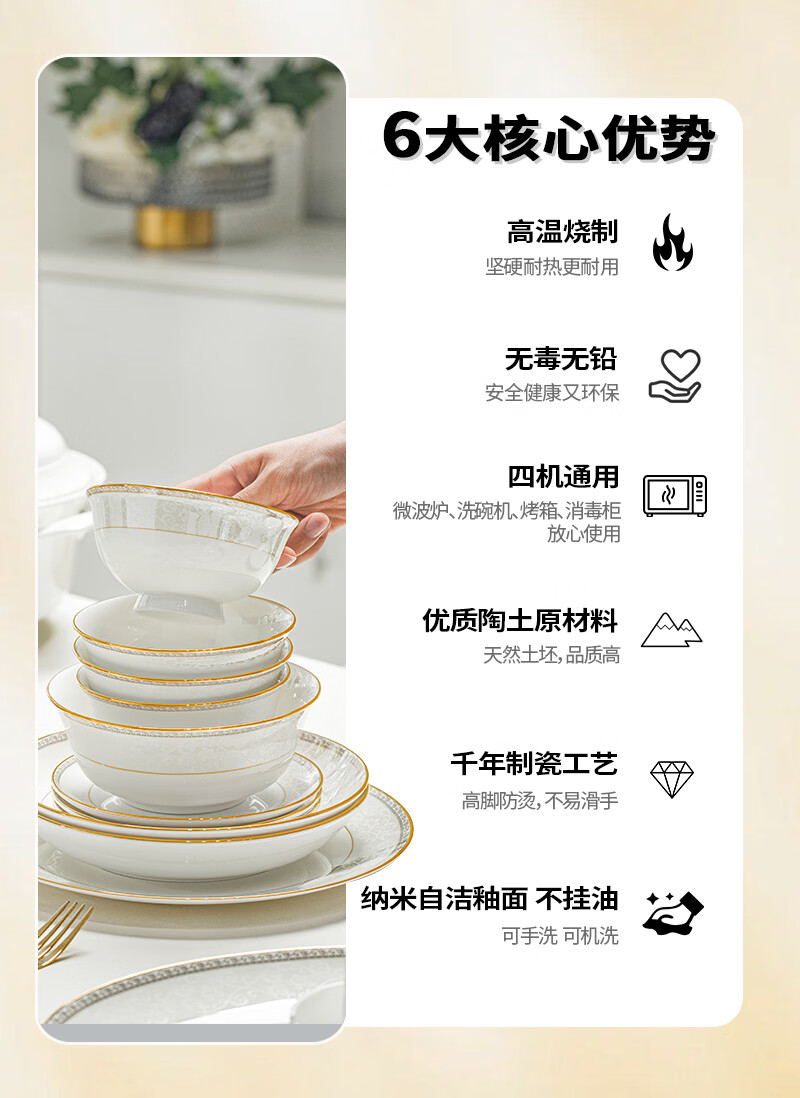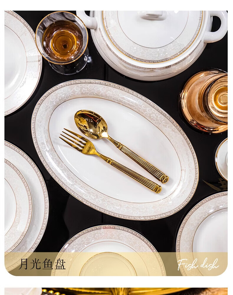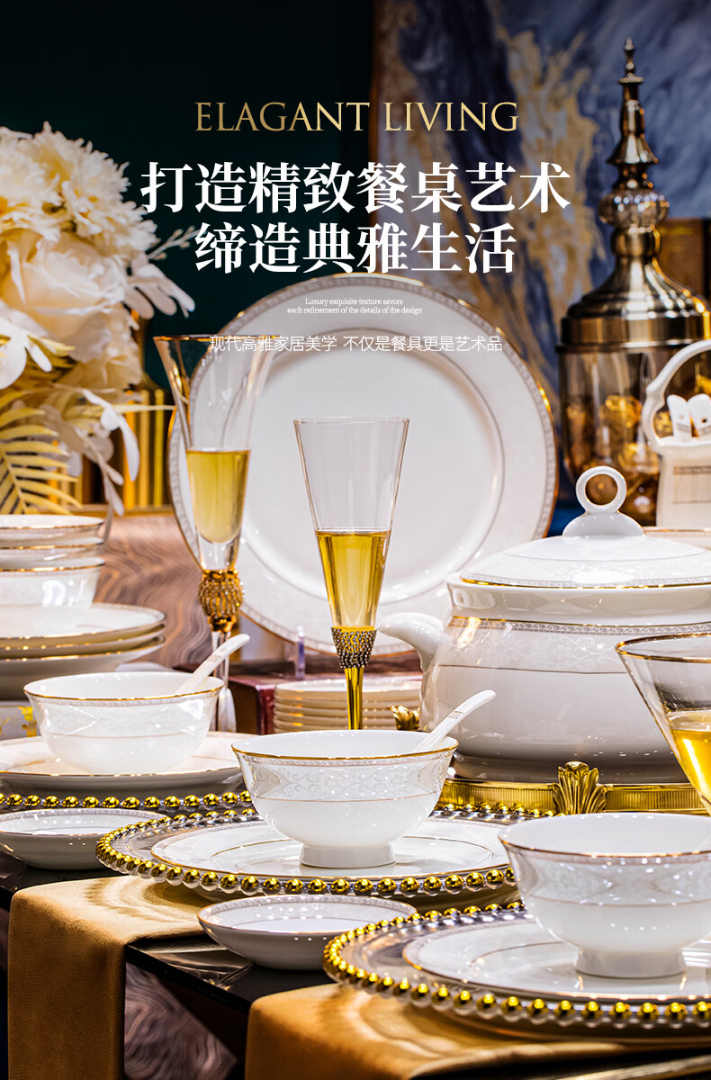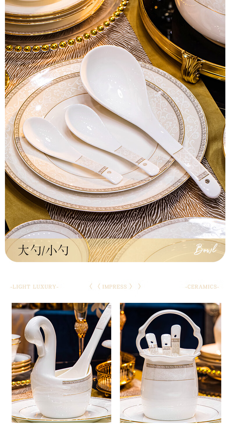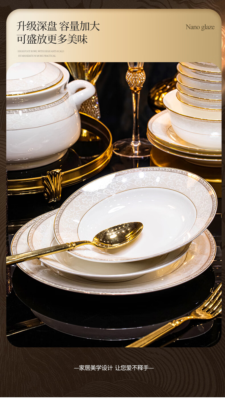 精缔陶瓷JINGDI2025新款碗碟套装家用碗筷乔迁高温骨瓷餐具套装景德镇陶瓷碗盘子 【80%人选择购买】66件升级配富贵煲 66件套