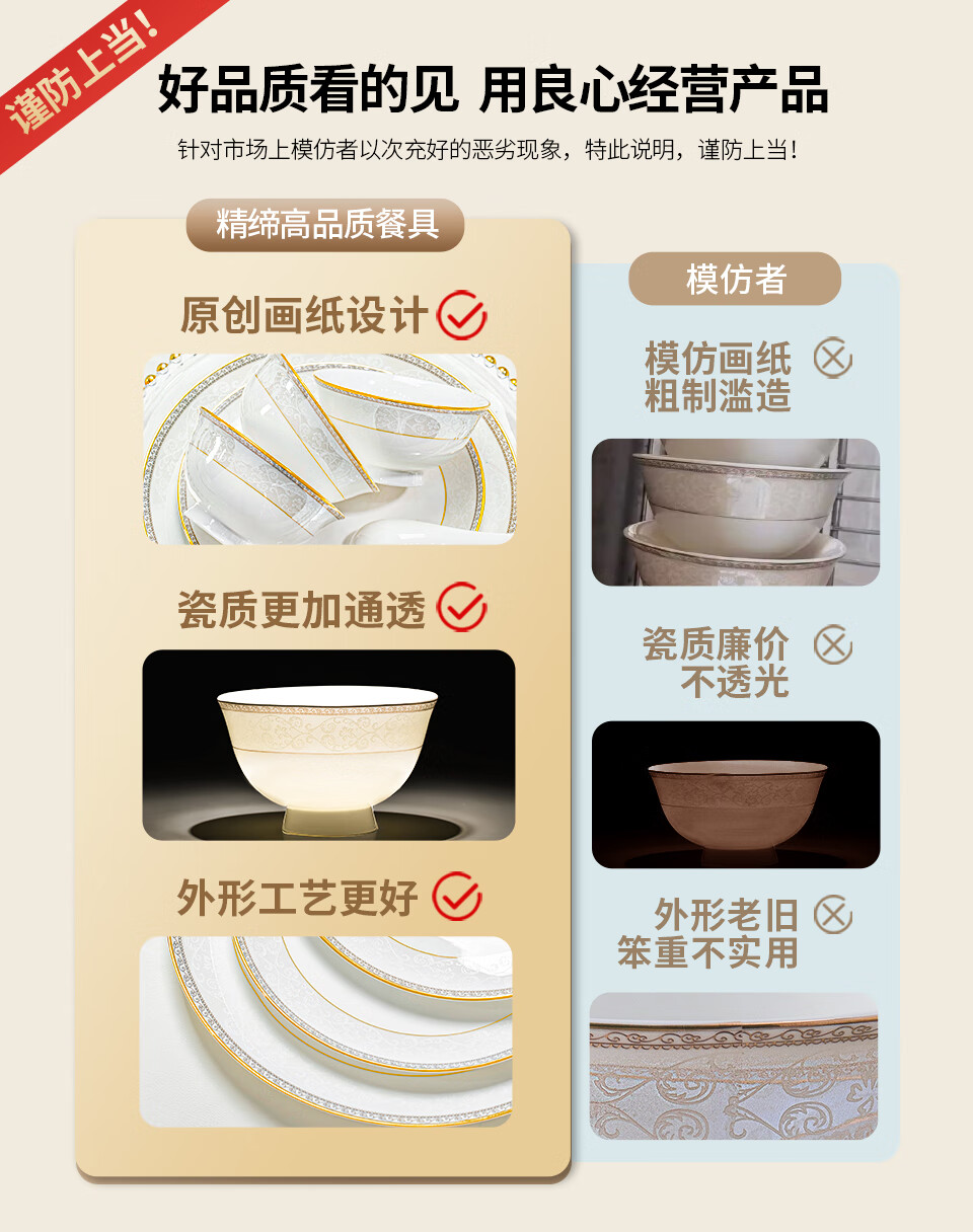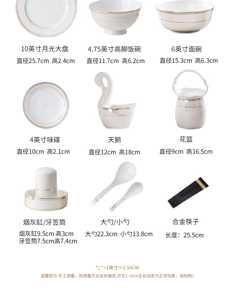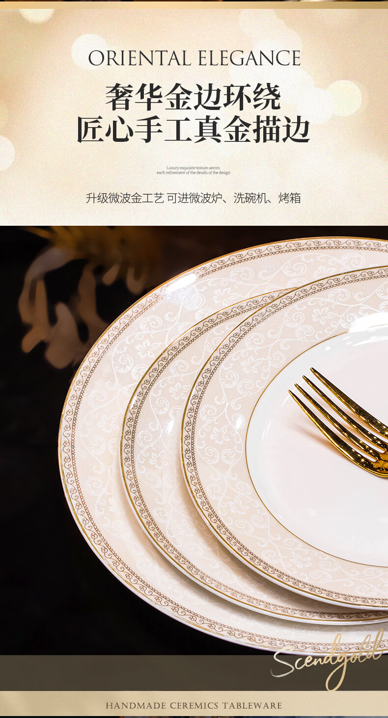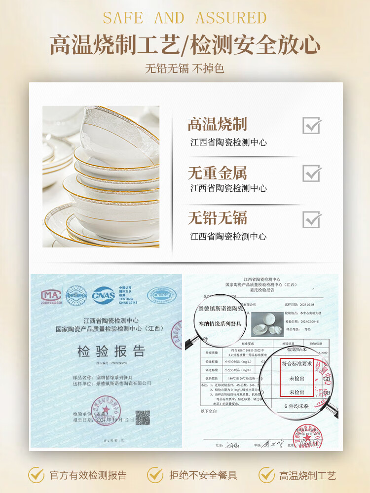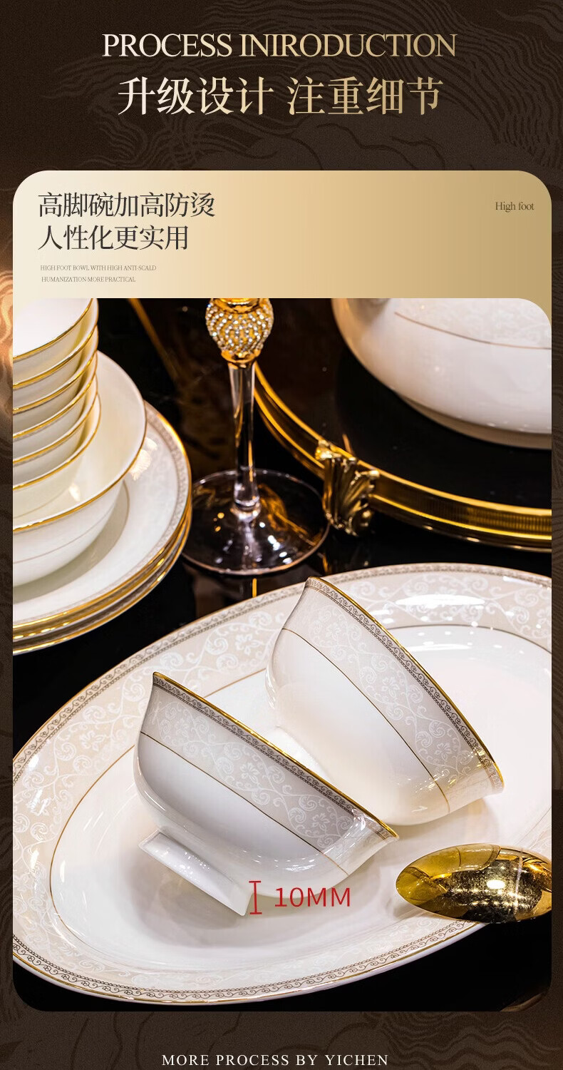 精缔陶瓷JINGDI2025新款碗碟套装家用碗筷乔迁高温骨瓷餐具套装景德镇陶瓷碗盘子 【80%人选择购买】66件升级配富贵煲 66件套