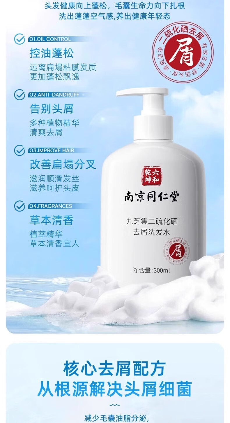 南京同仁堂个人护理洗发水二硫化硒去屑洗发水深层清洁控油洗发露男女士品牌 【升级款】1瓶装【500ml大容量】 【有防伪标志买的放心】