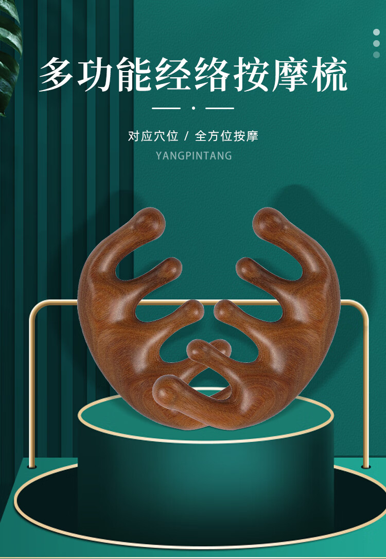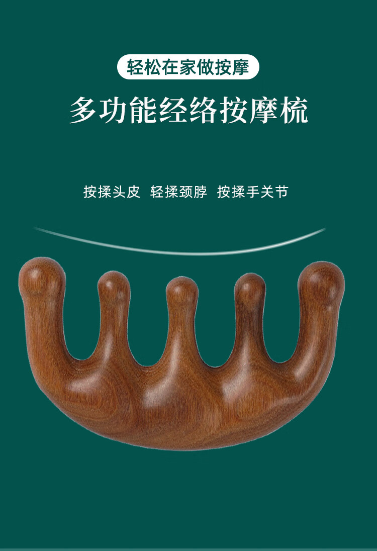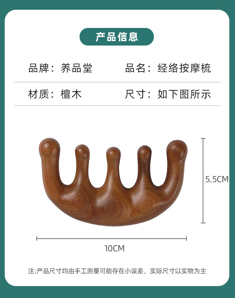 北京养品堂 头部按摩梳子经络按摩梳檀木穴位头疗五爪齿梳节日礼物送长辈 檀木五齿按摩梳1个装