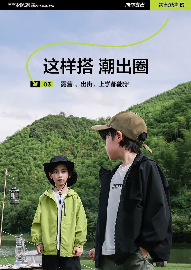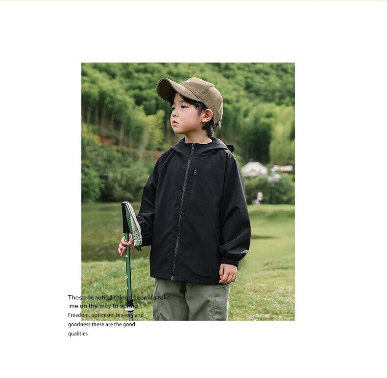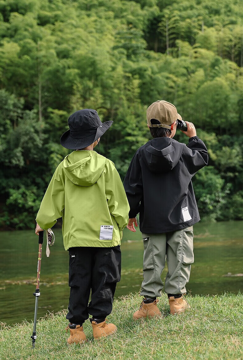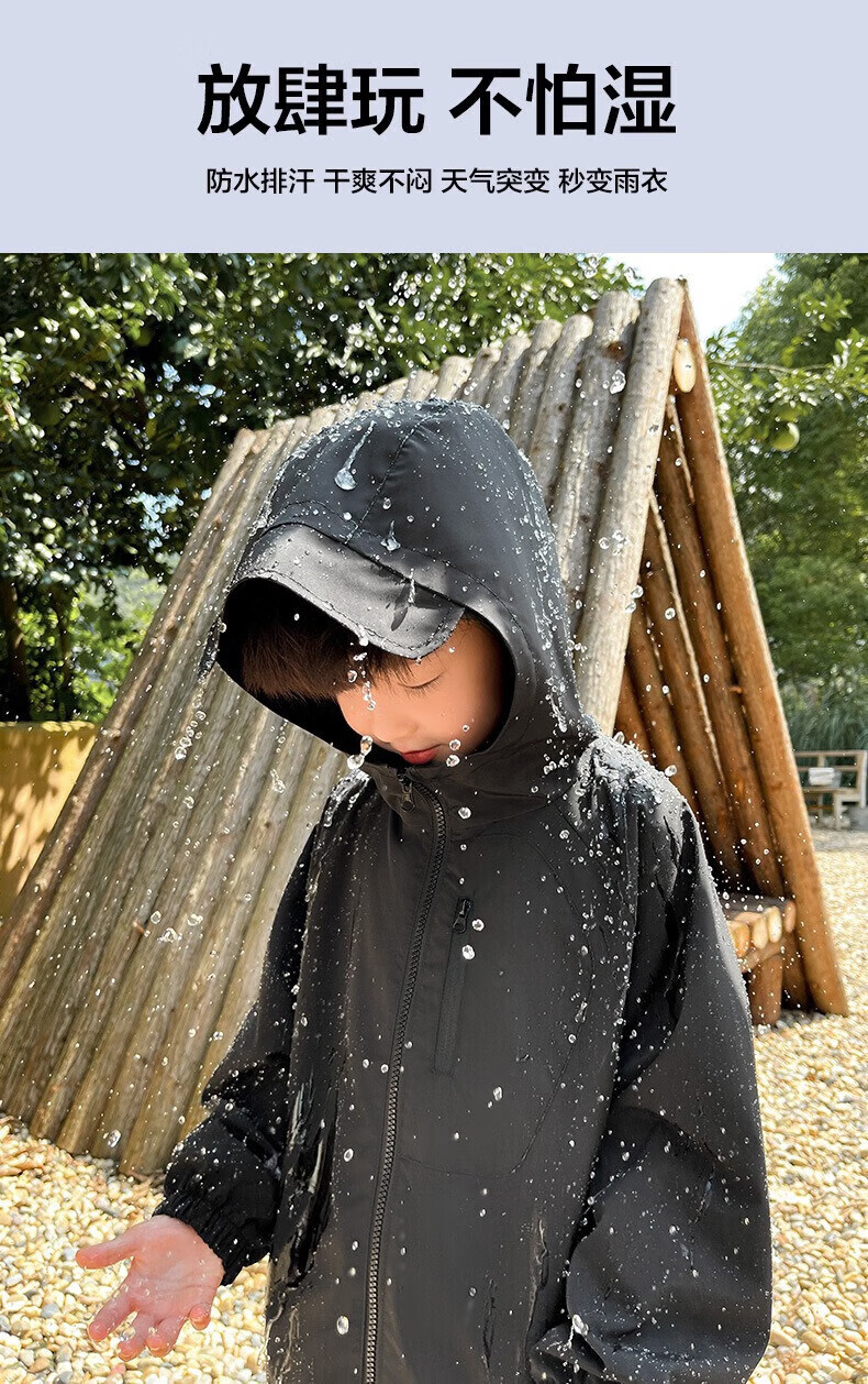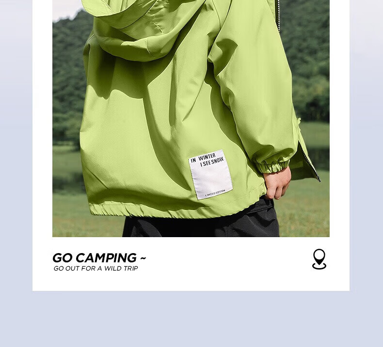 小猪班纳(PEPCO)儿童户外防水冲锋衣春秋款中大童外套休闲运动潮流百搭童装 苍灵绿(胸袋) 140 建议身高135-140cm 【足码-正码正拍】