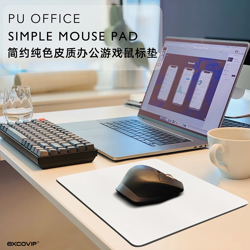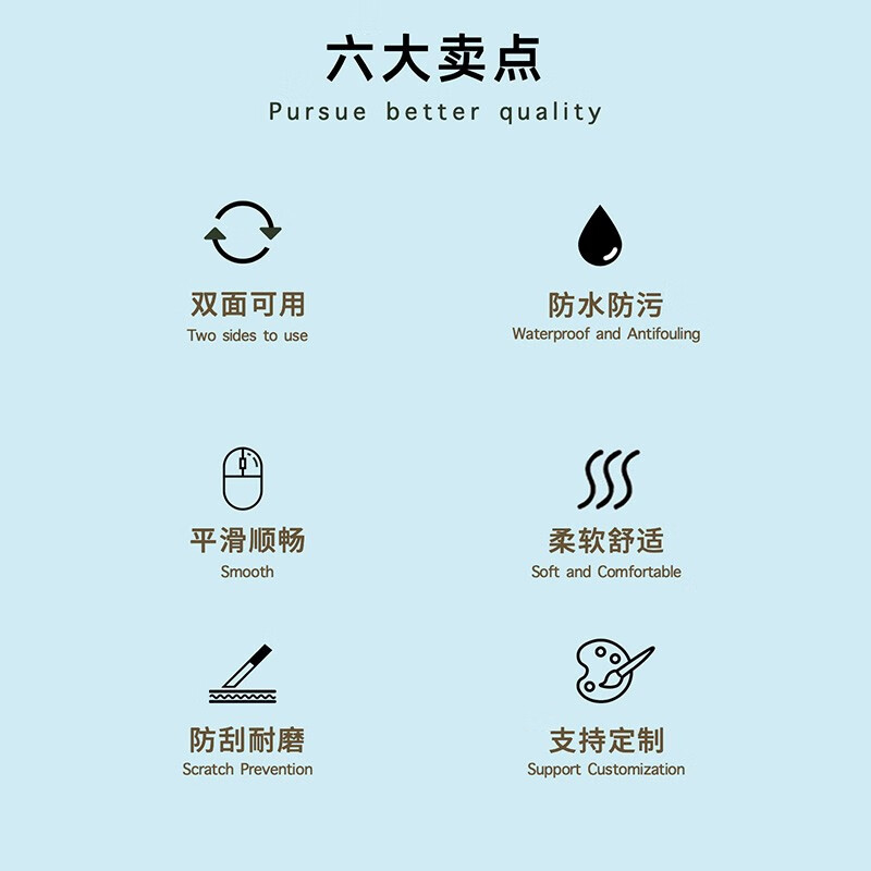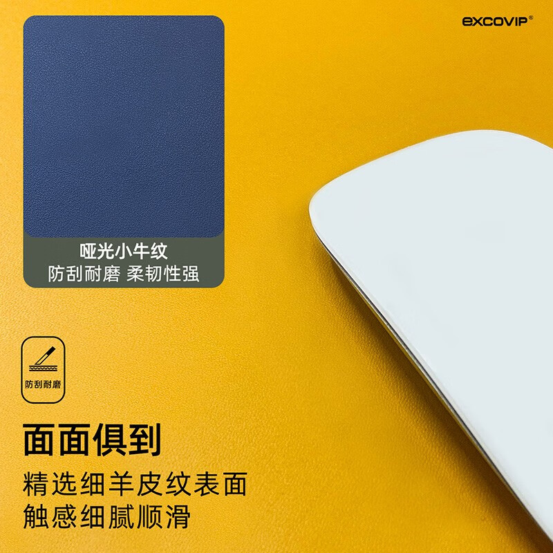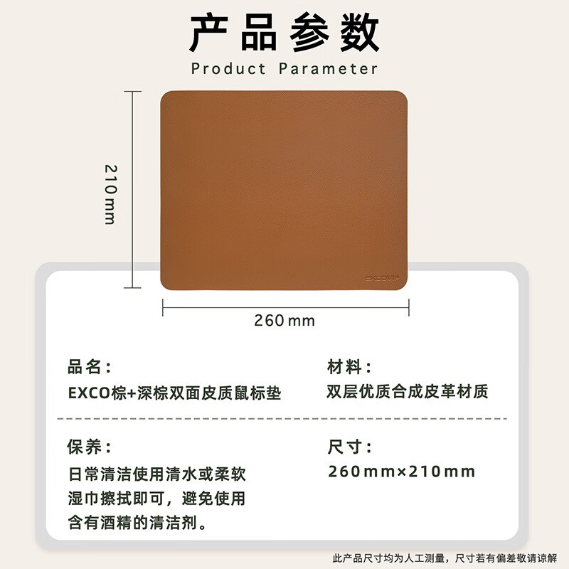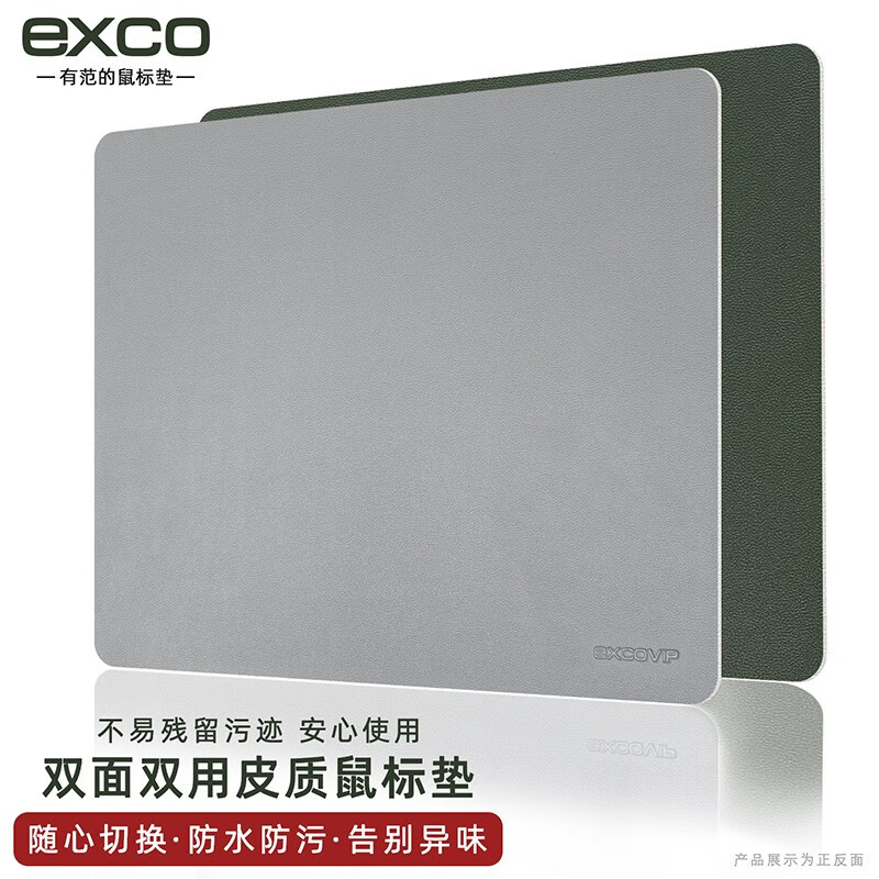 皮质双面鼠标垫小号 办公电竞游戏简约笔记本电脑皮革垫子顺滑防水易清洁隔热 灰色+墨绿 260x210x2mm