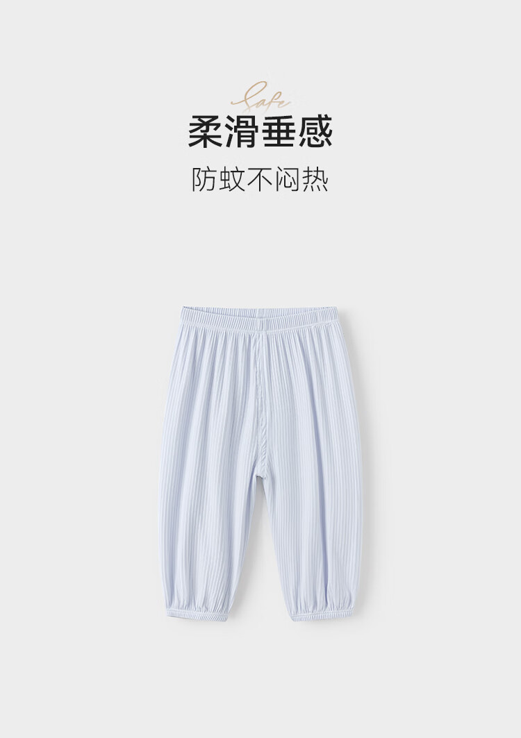 babylove婴幼儿防蚊裤莫代尔夏季休闲长裤灯笼裤男女宝宝纯色裤子 晴空蓝 100 cm