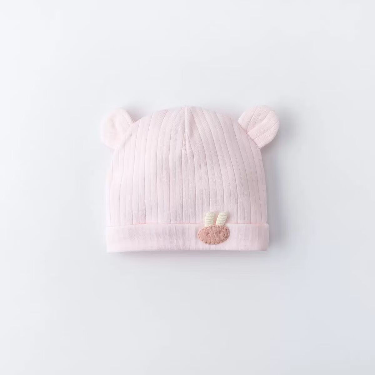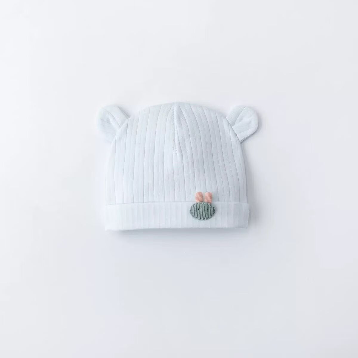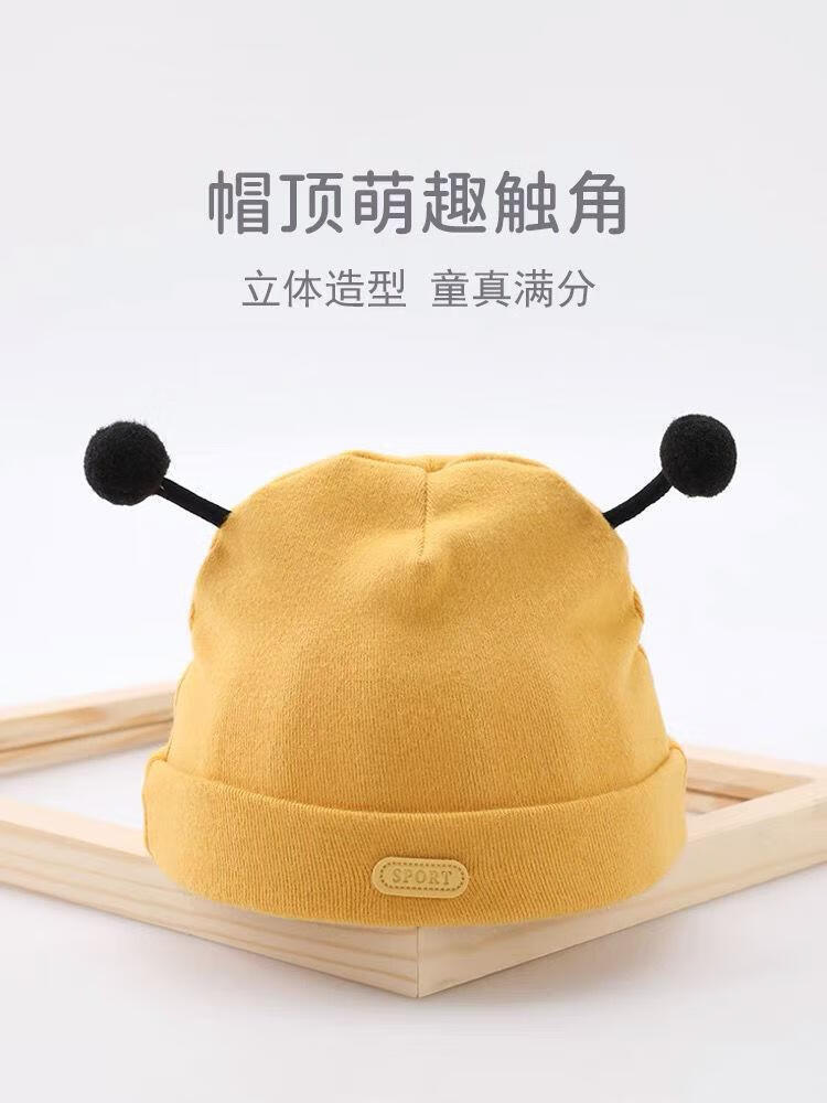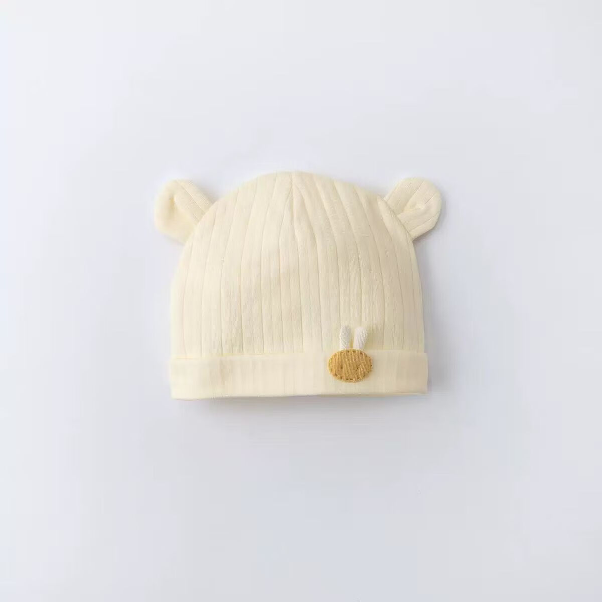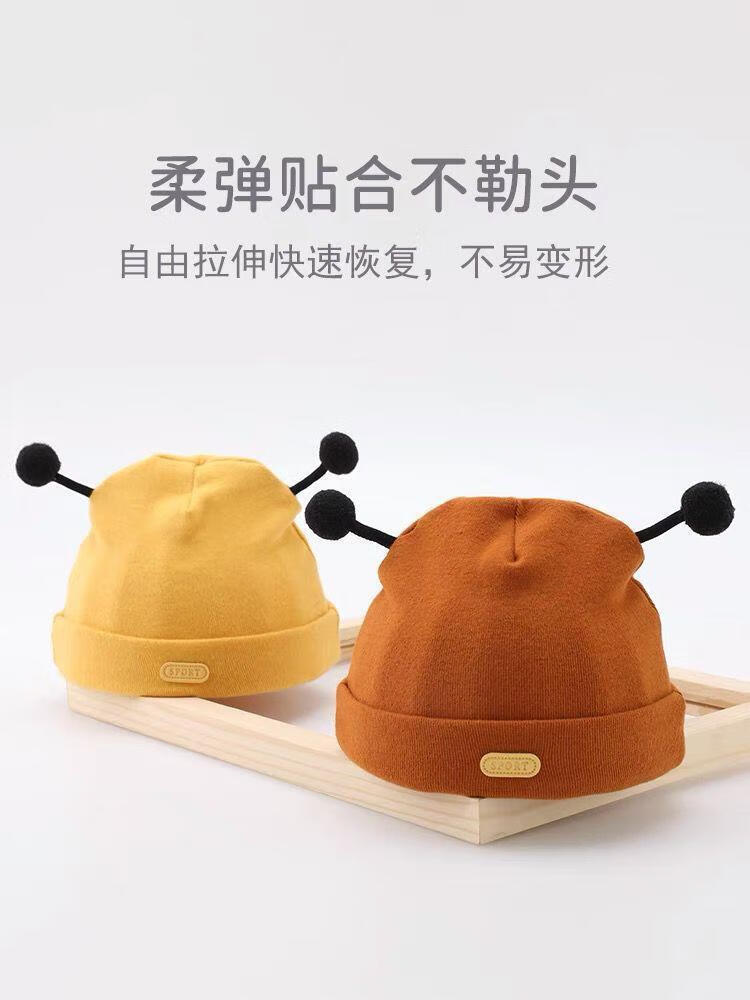彩虹房子新生婴儿帽四季男女初生0-3月满月幼儿护头囟门宝宝胎帽合集 抽条熊兔棉胎帽浅黄色-0-3个月(30-38cm) 四季双层