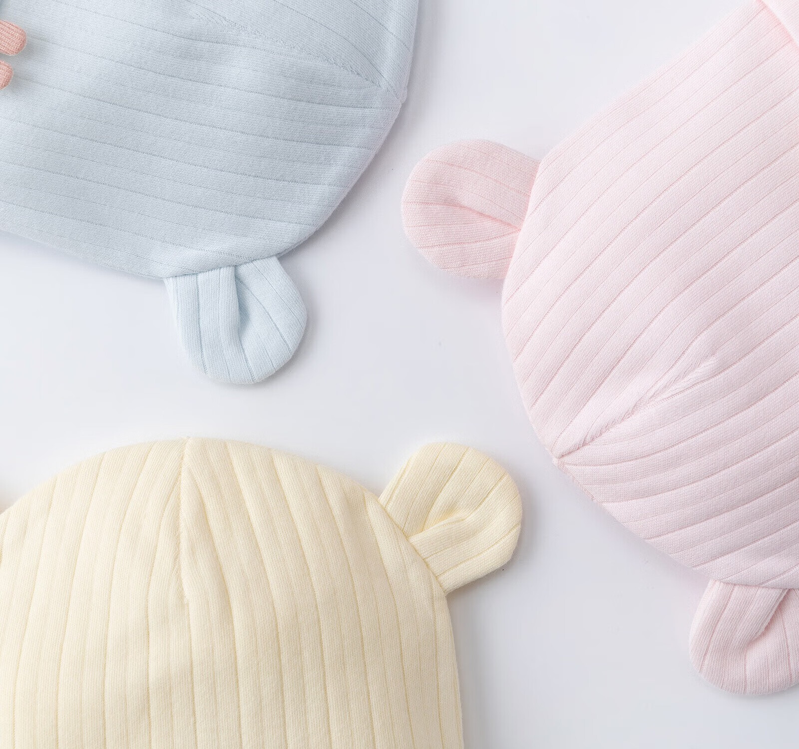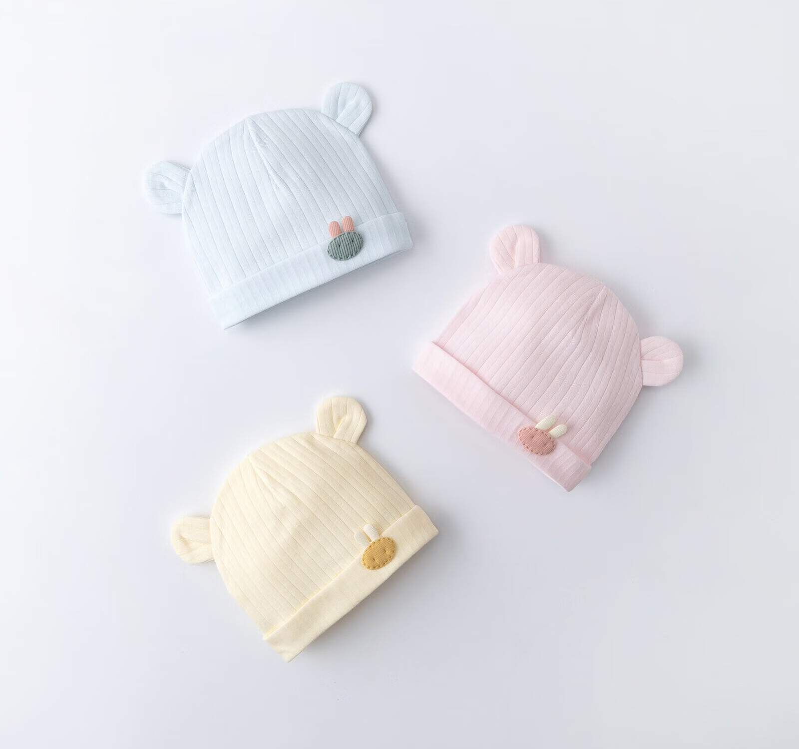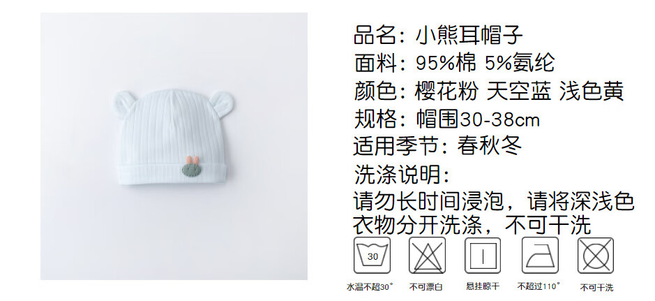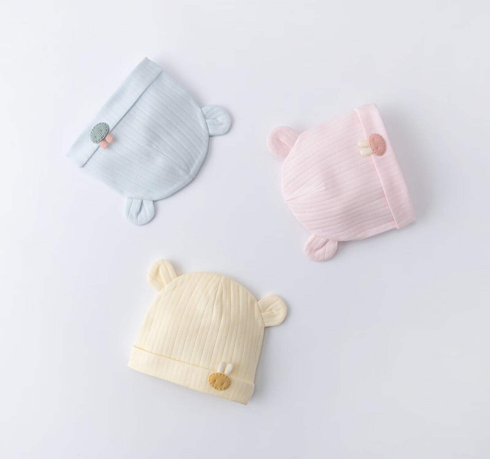 彩虹房子新生婴儿帽四季男女初生0-3月满月幼儿护头囟门宝宝胎帽合集 抽条熊兔棉胎帽浅黄色-0-3个月(30-38cm) 四季双层
