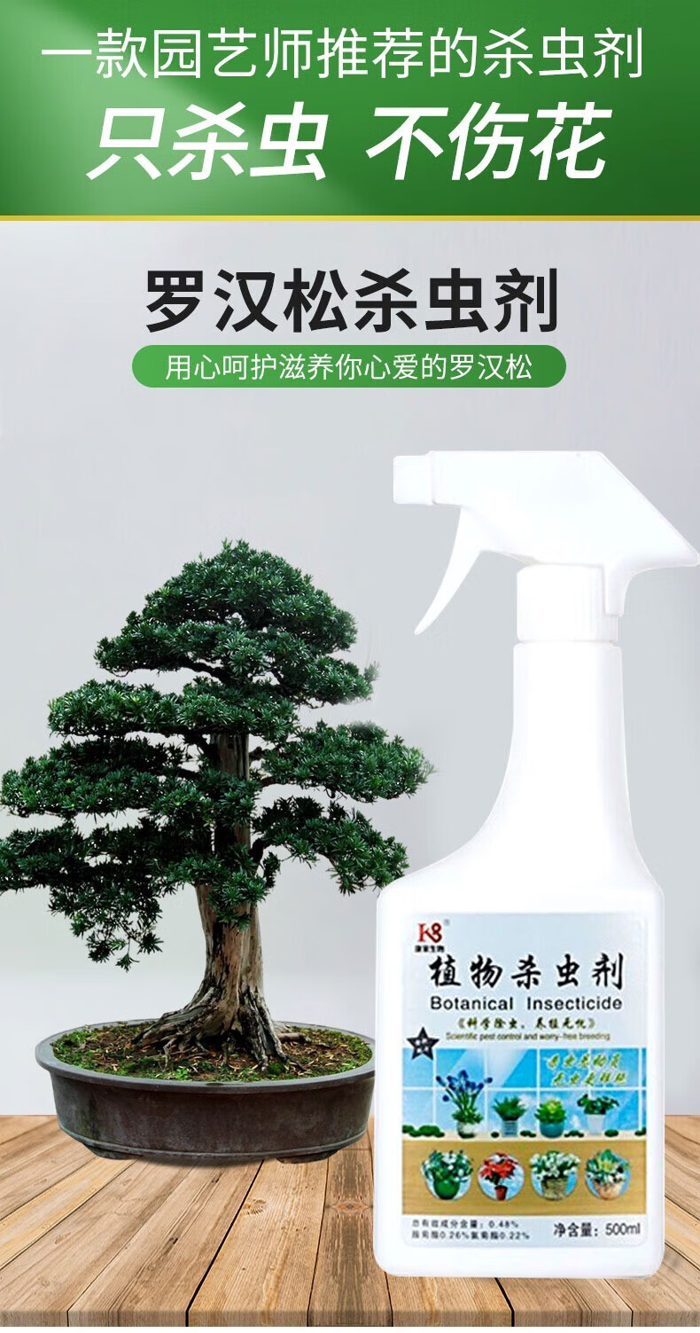 罗汉松杀虫剂新叶蚜白粉黑斑病腐根蚧壳腻虫菌干黄叶枯枝红蜘蛛 1瓶