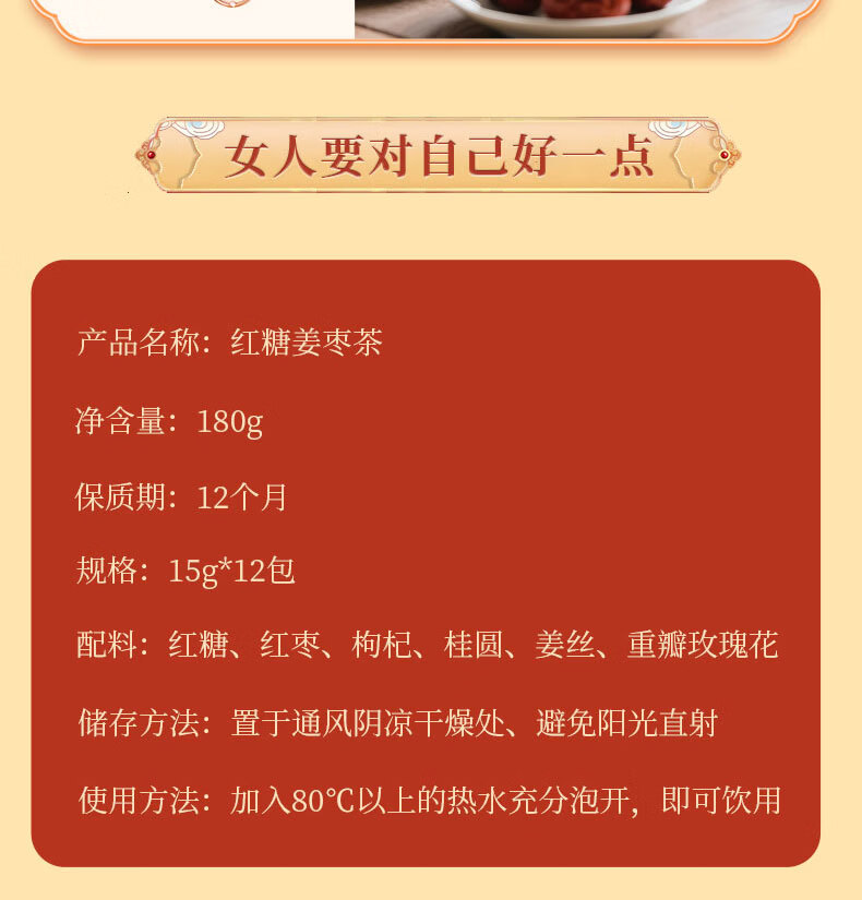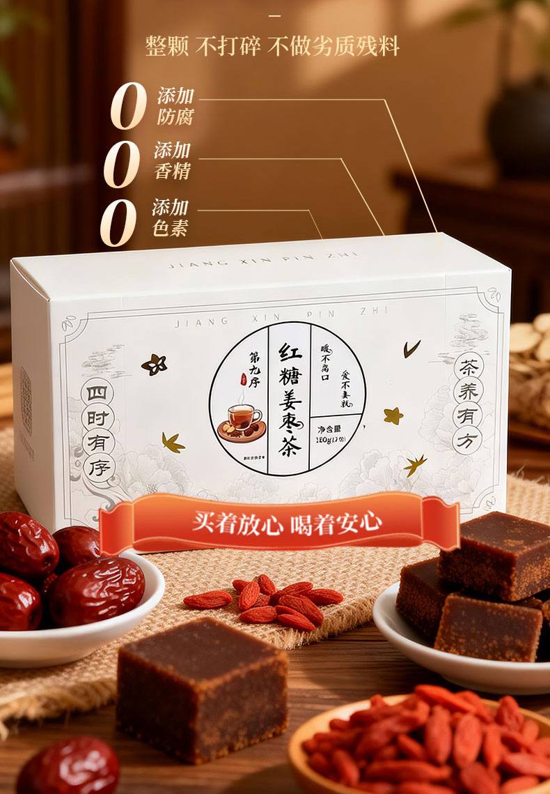 第九序红糖姜茶大姨妈姜枣茶块丝汁红糖水送女友 红糖姜枣茶12包*1盒