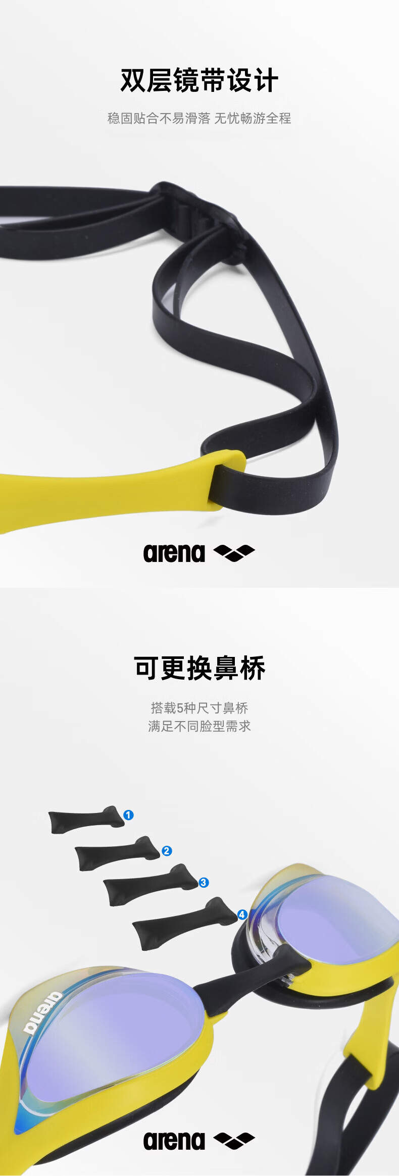 阿瑞娜(arena)进口竞技竞速眼镜蛇游泳镜男女士防雾先锋高清比赛专业泳联认证 26年新色-粉色(PKPK) 平光