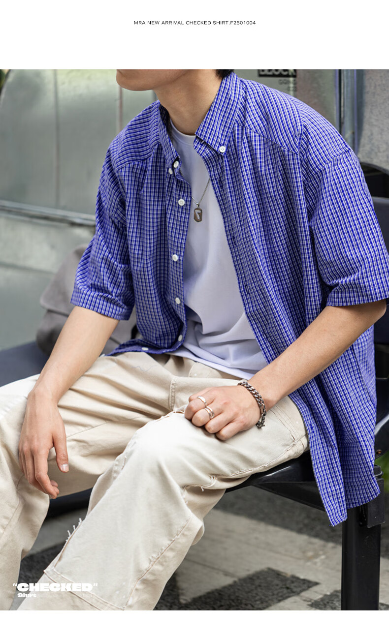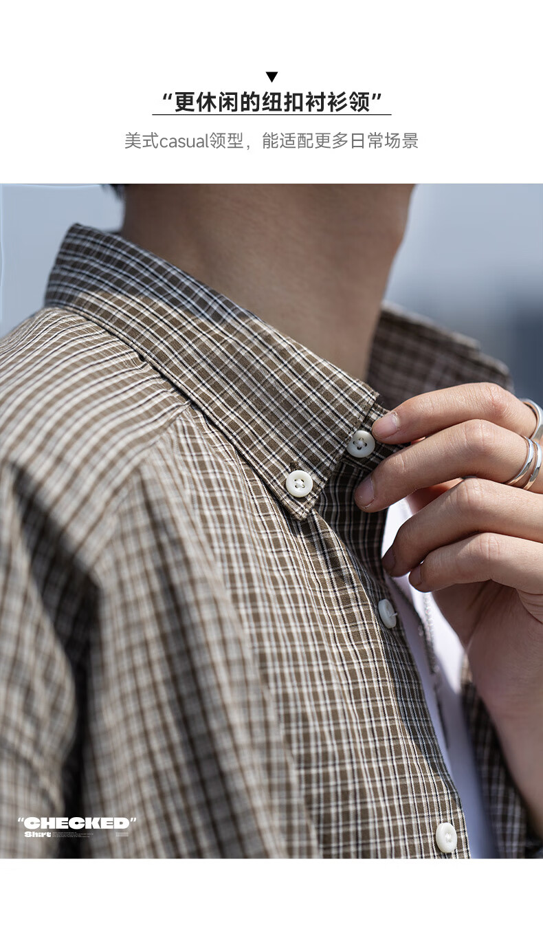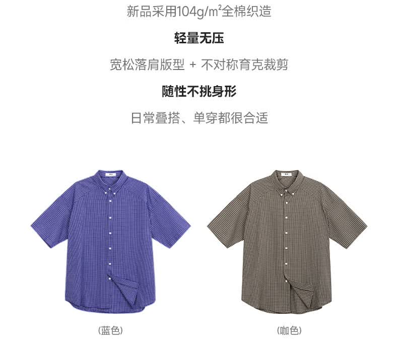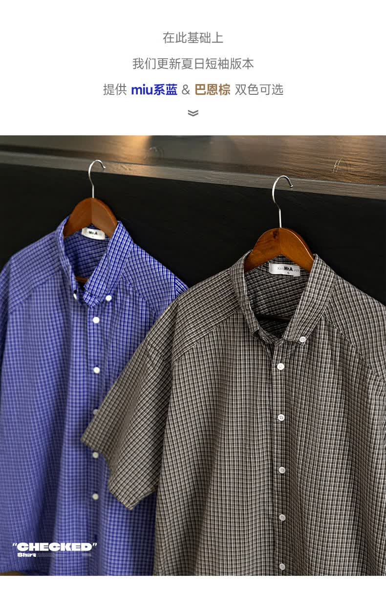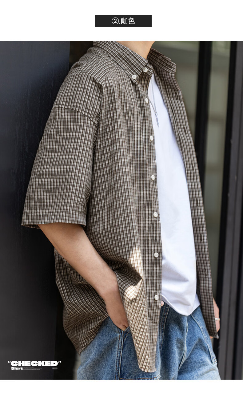 Mr.AIVY格纹短袖衬衫薄款蓝色纯棉休闲宽松半袖衬衣外套男夏 MRA男装 咖色 2XL