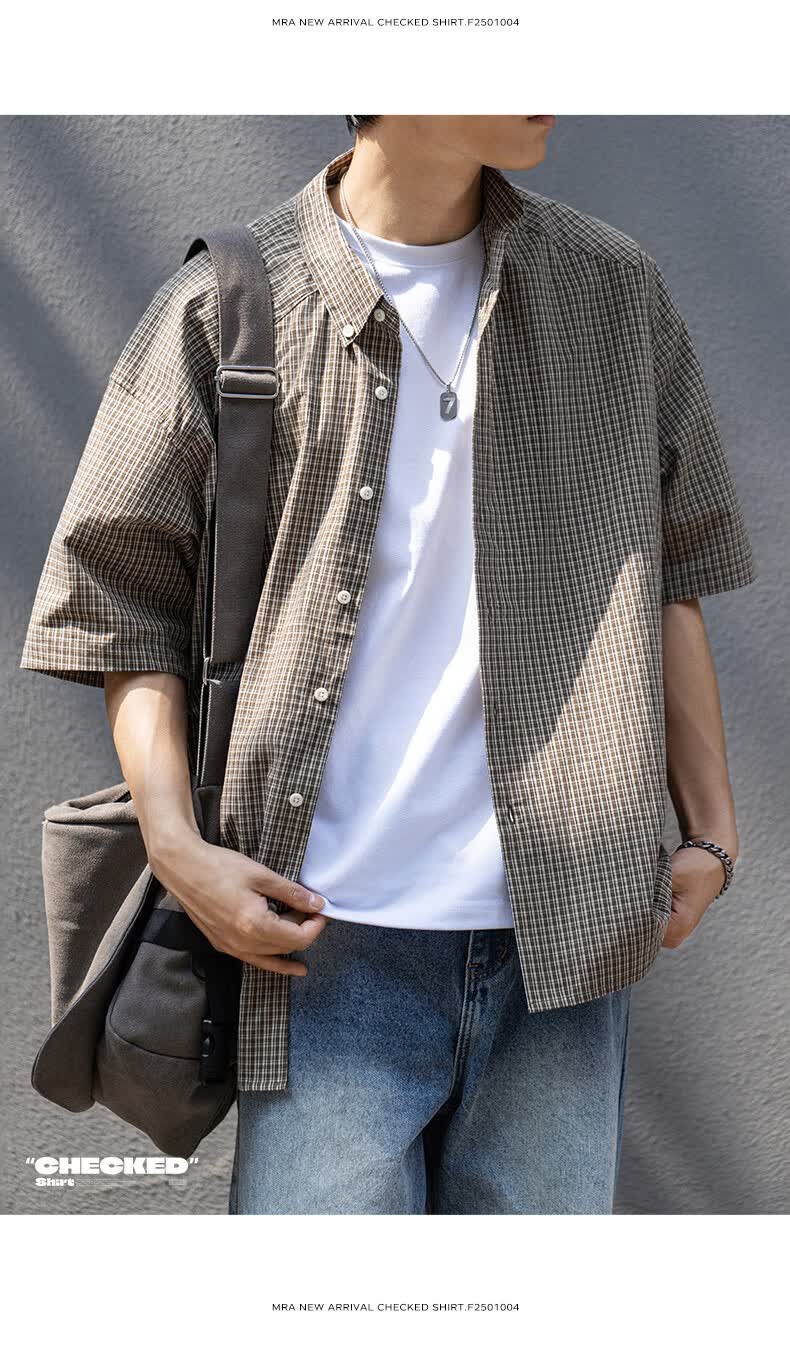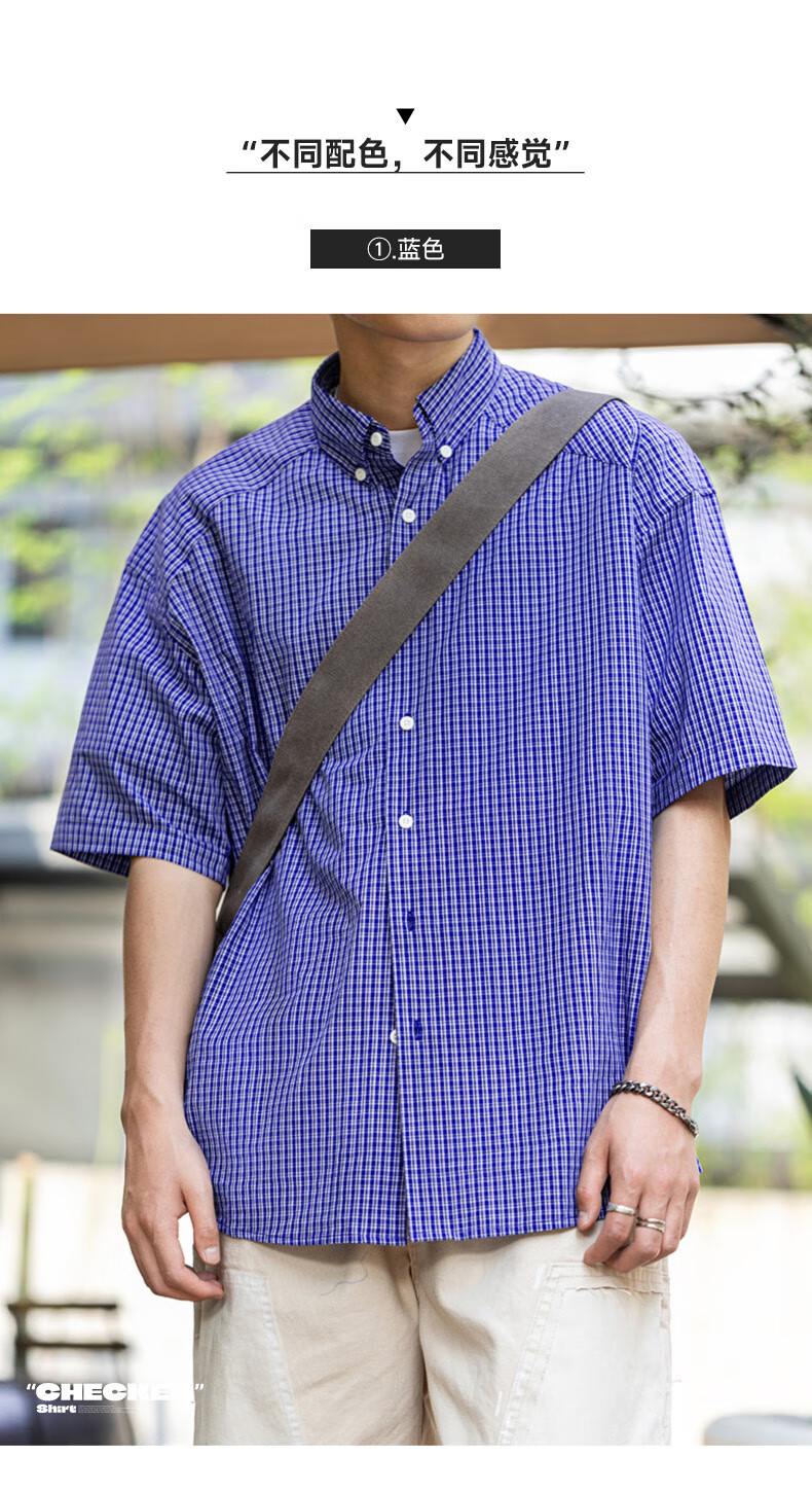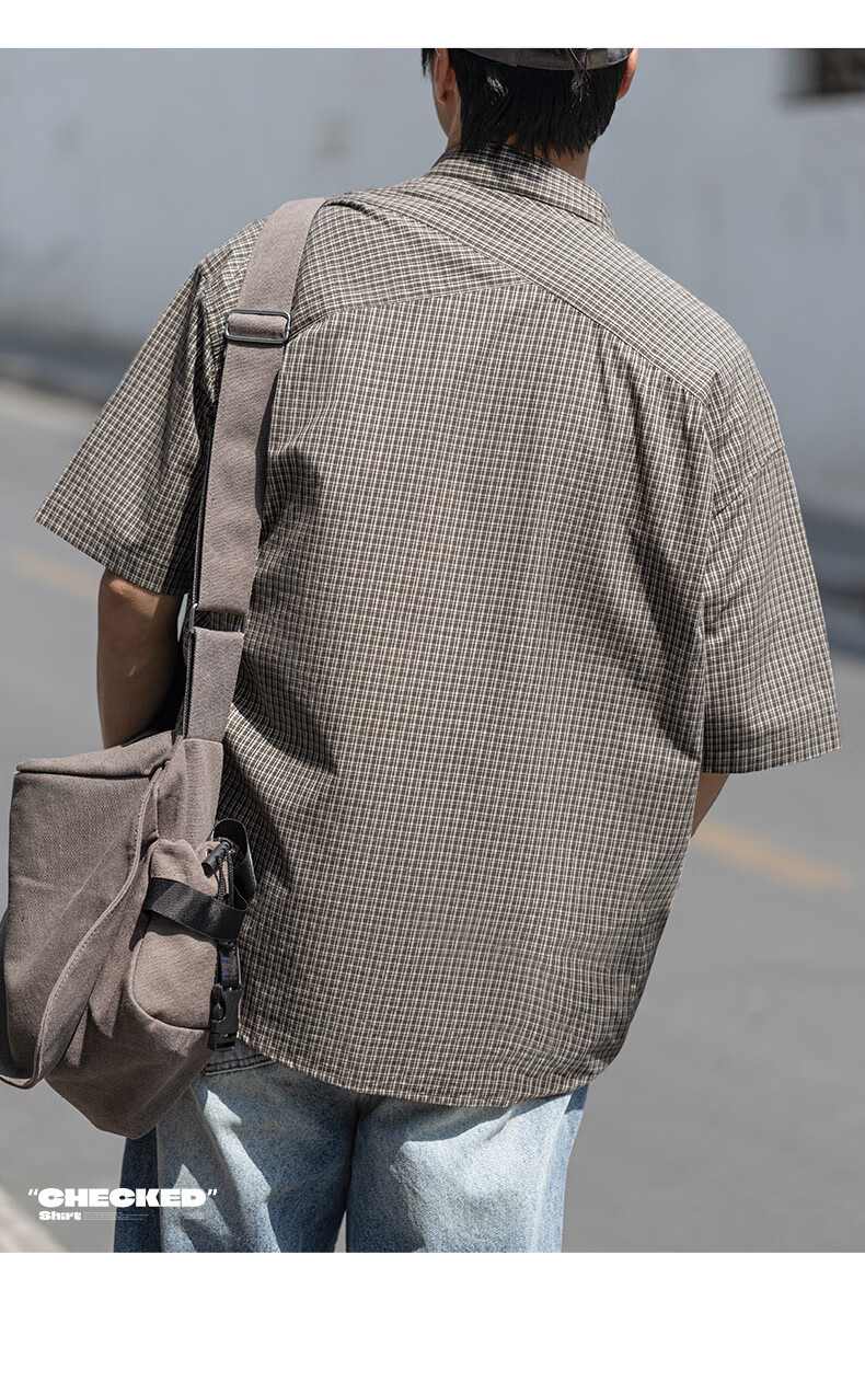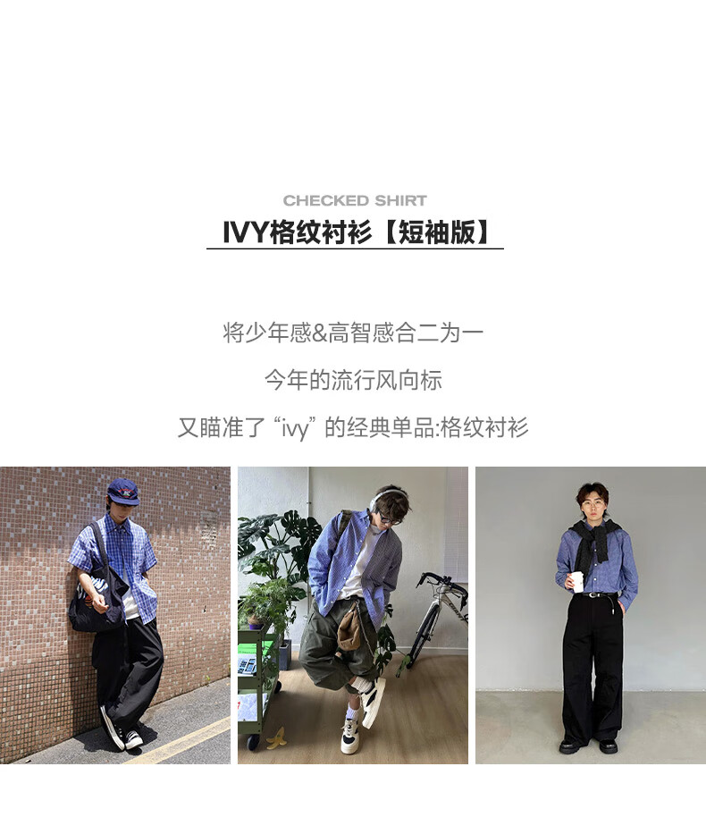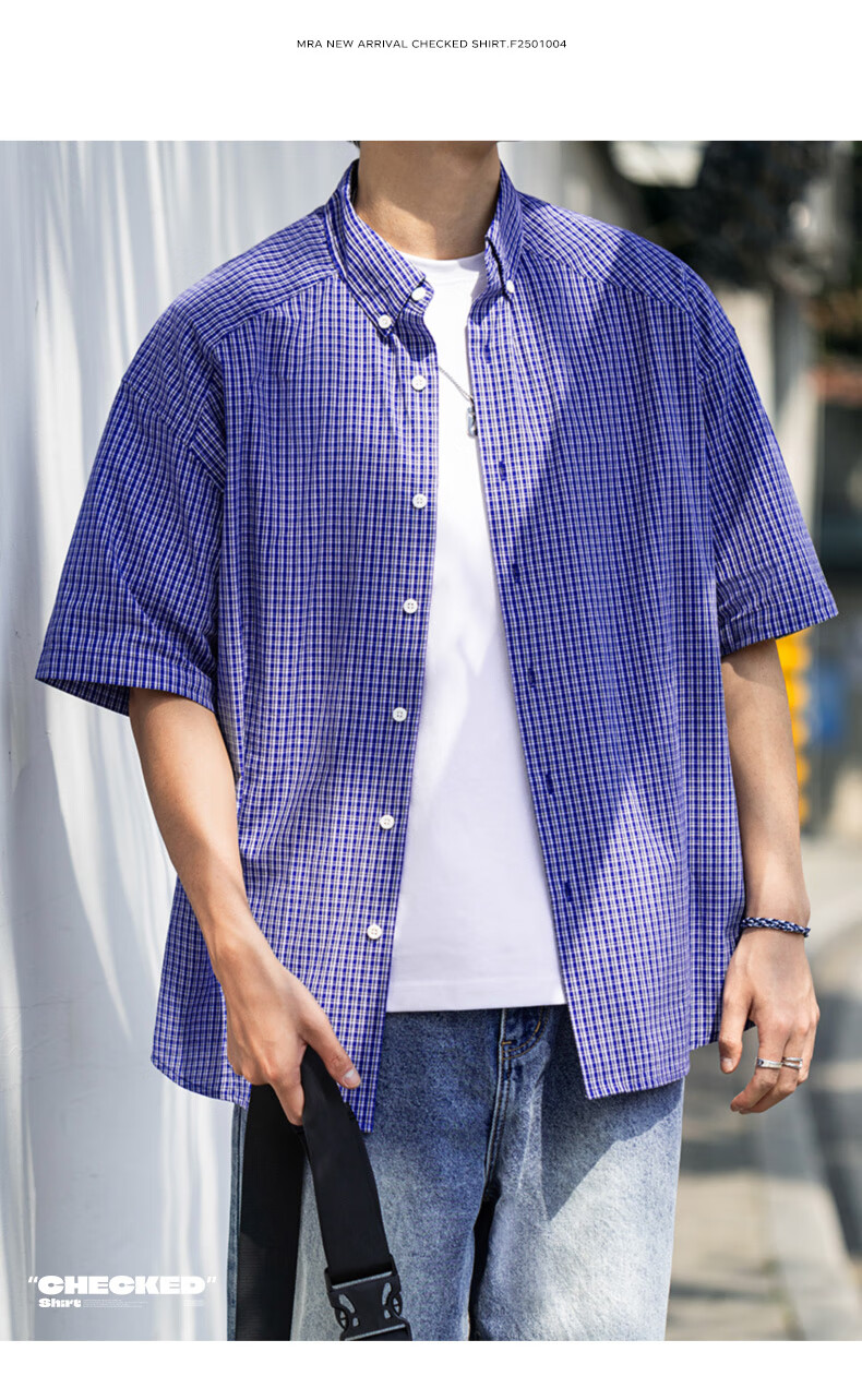 Mr.AIVY格纹短袖衬衫薄款蓝色纯棉休闲宽松半袖衬衣外套男夏 MRA男装 咖色 2XL
