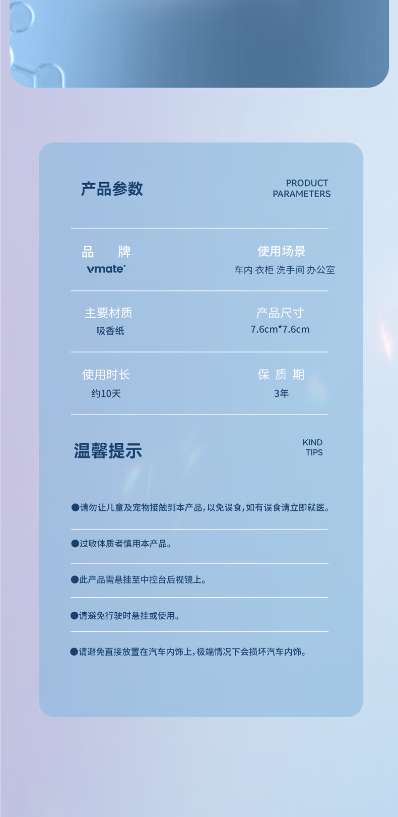 VMATE车享优品车载香片持久香薰异味挂件车用除味装饰潮流挂件汽车礼物 指定香型或定制画面请联系客服