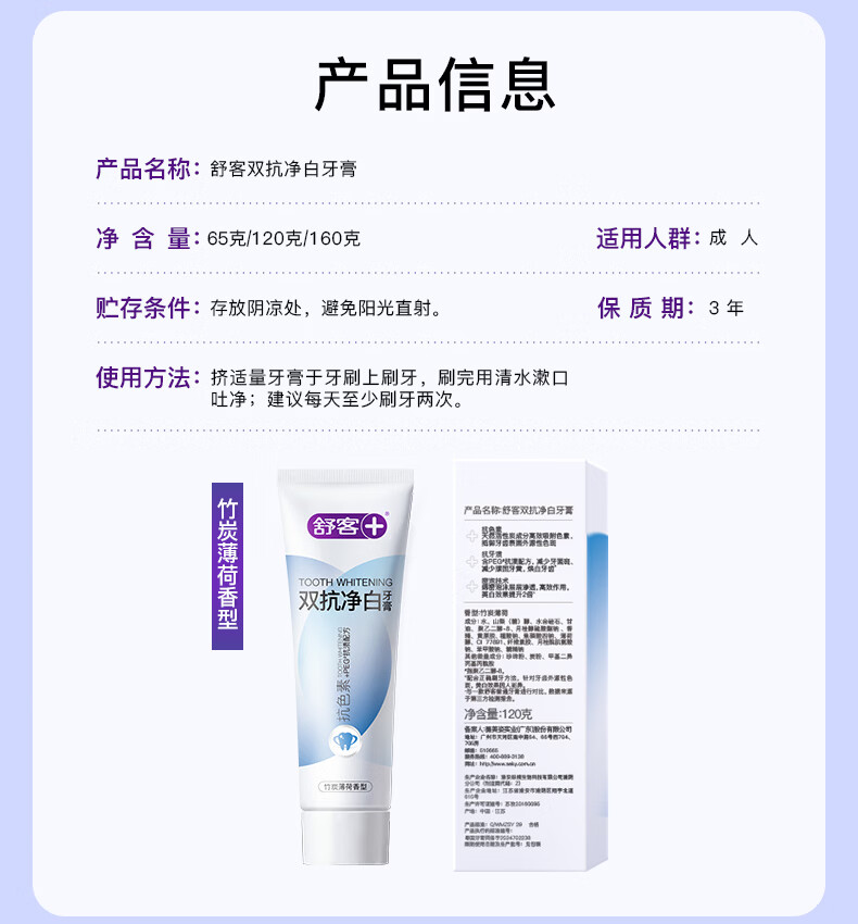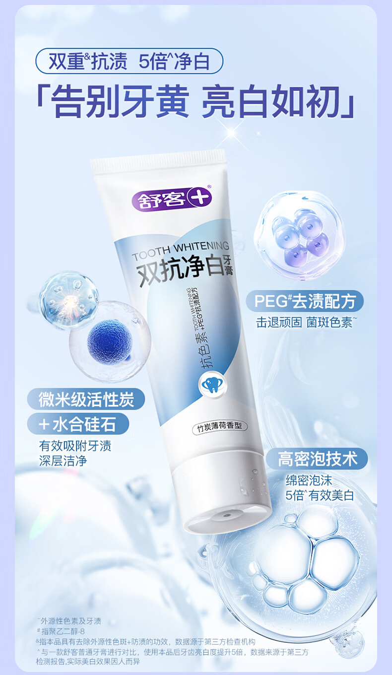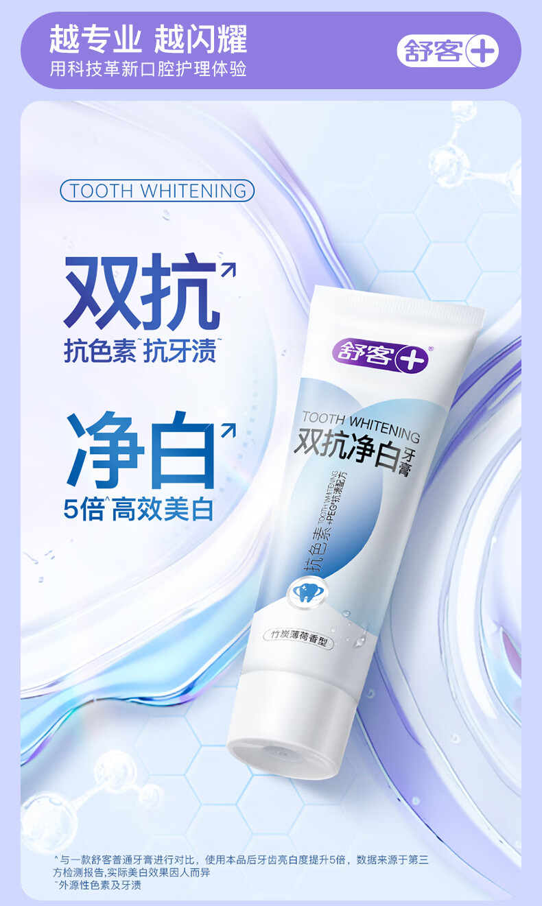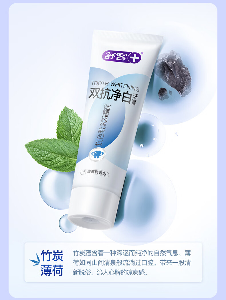 舒客双抗净白牙膏美白去渍防渍抗色素告别牙黄专效防蛀套装 防蛀双抗劲白牙膏套装(到手670g)