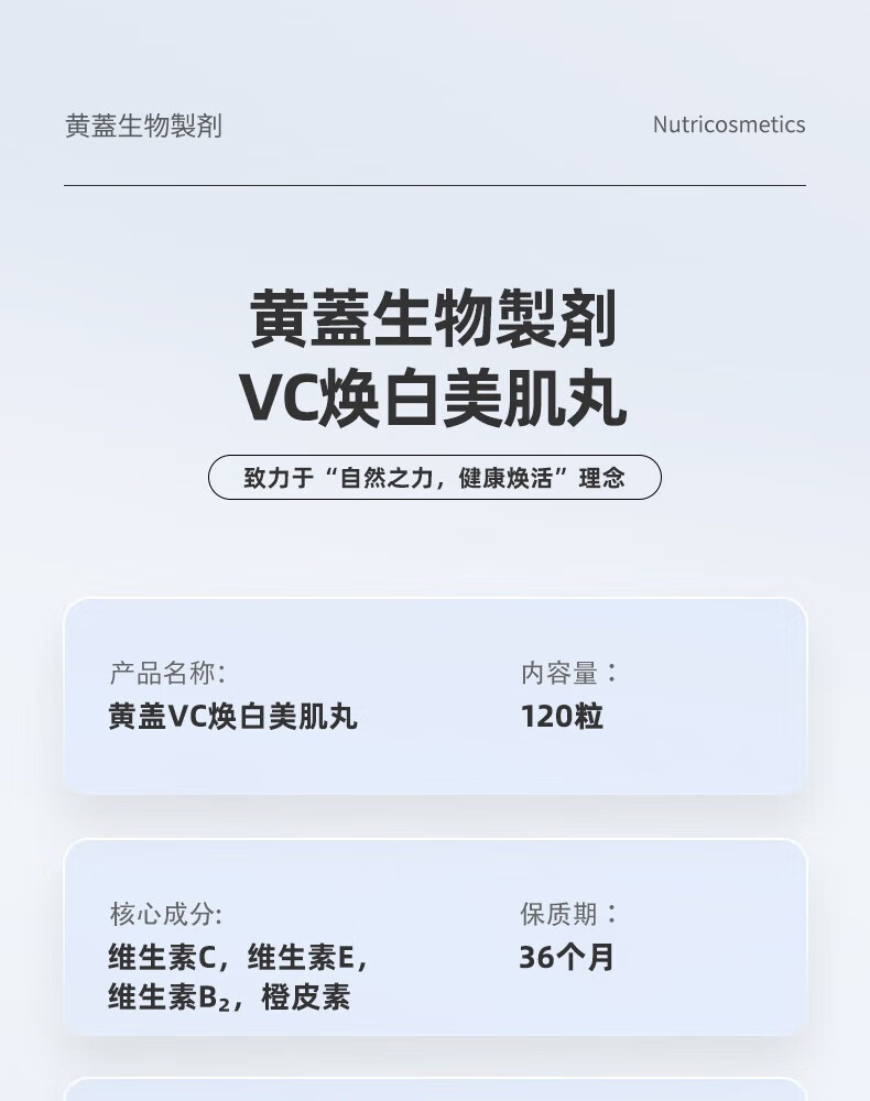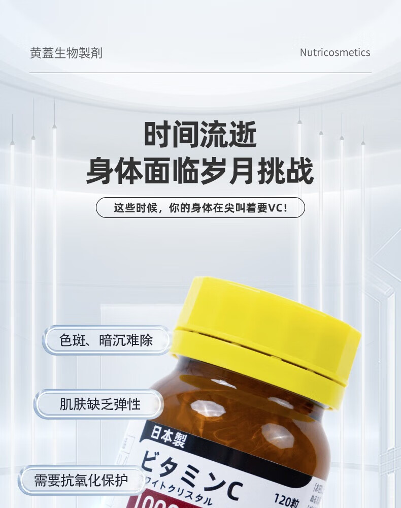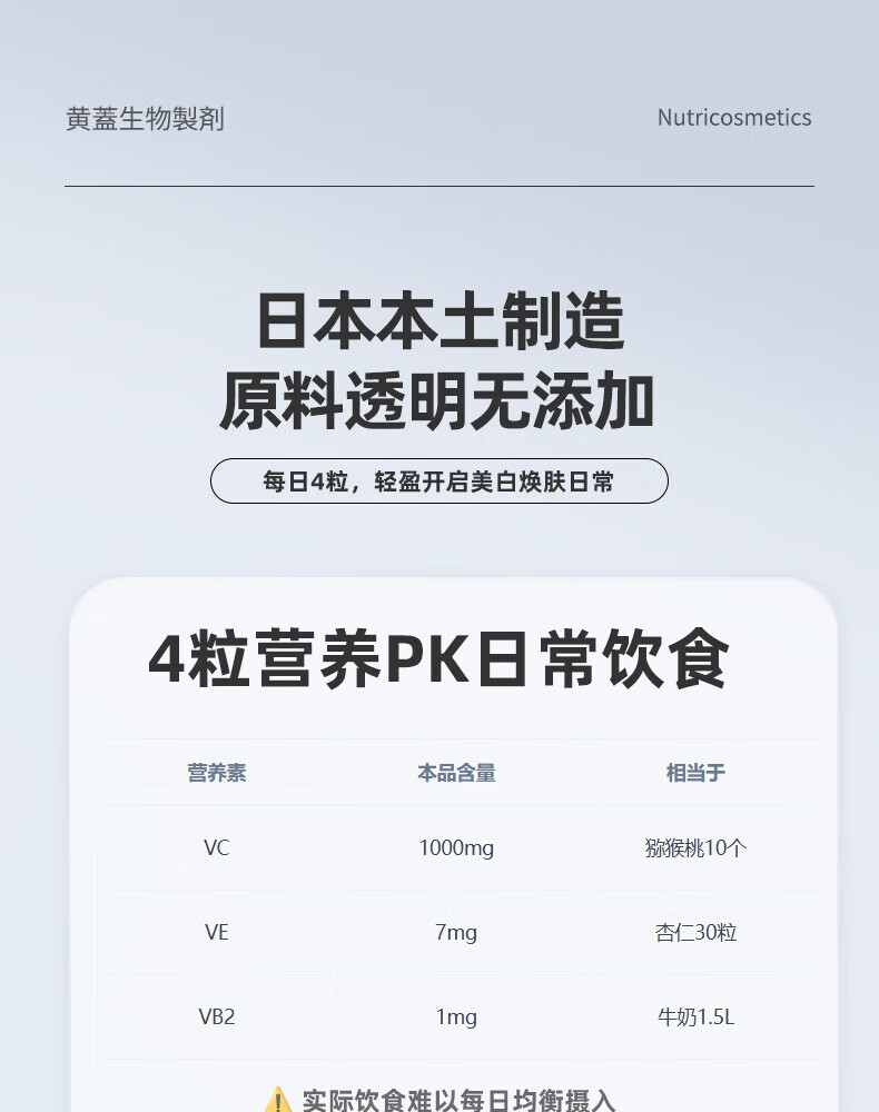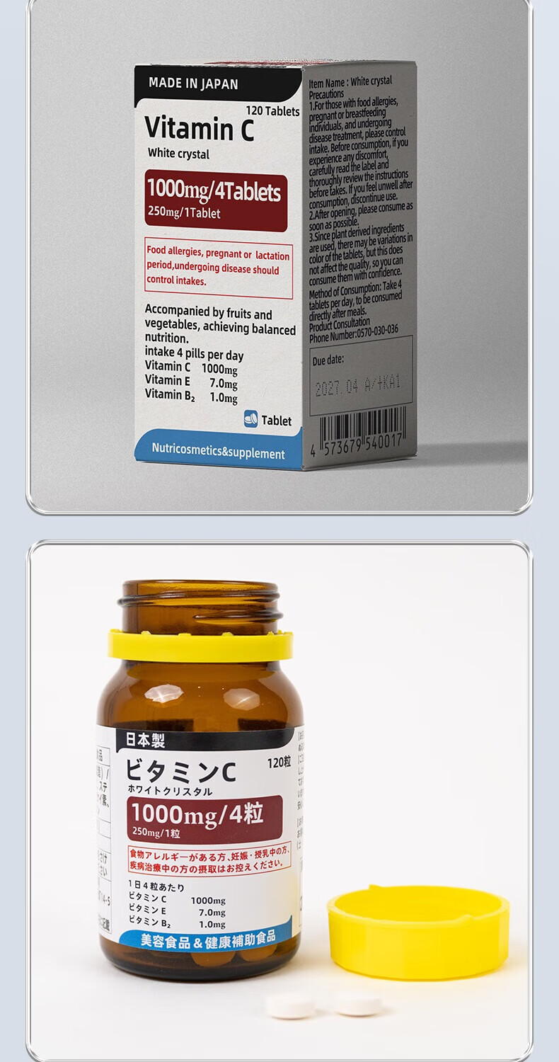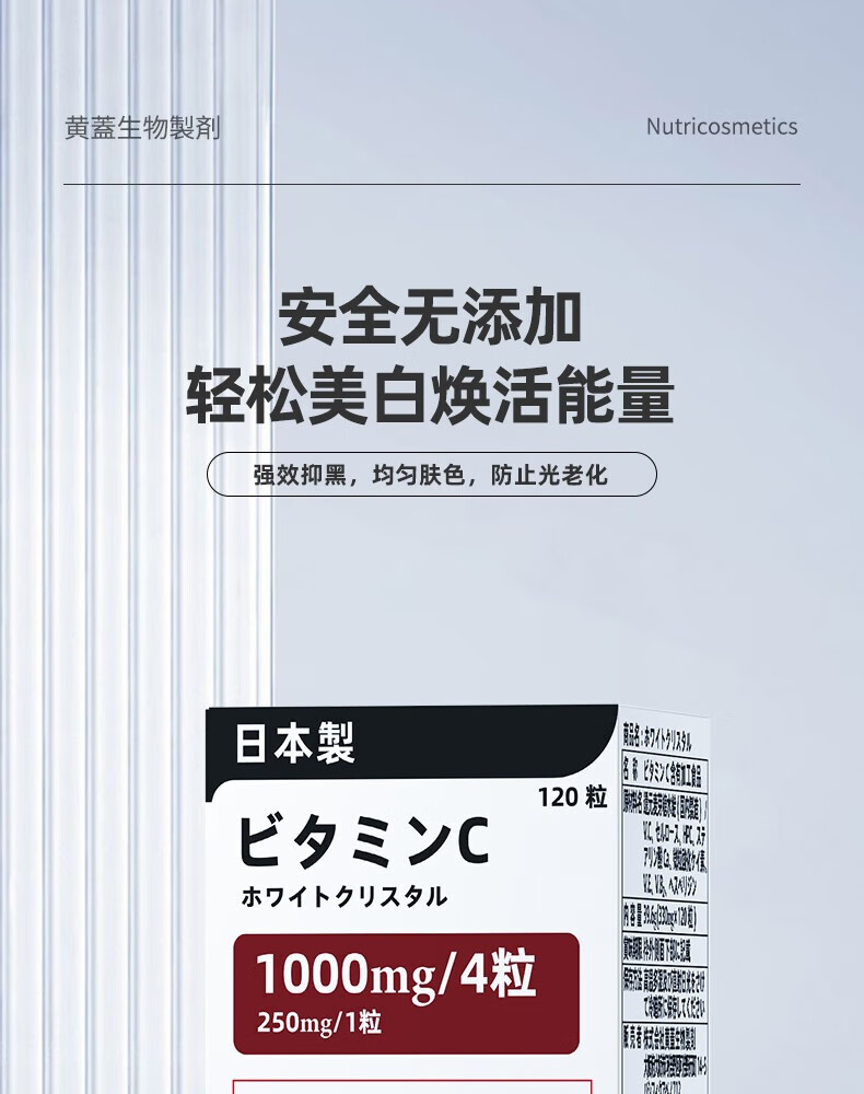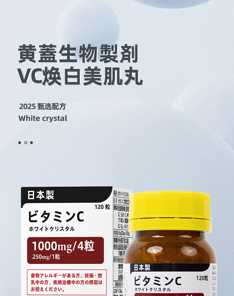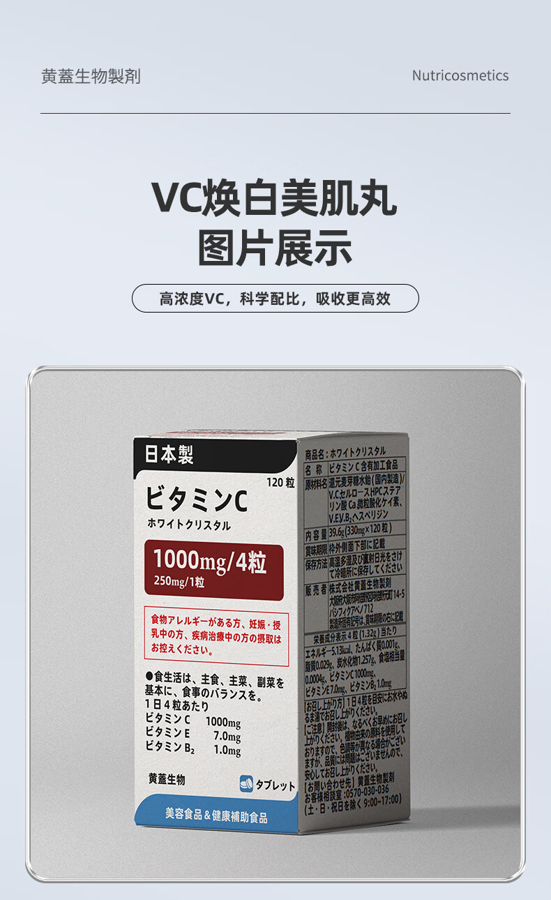 黄蓋日本本土黄盖高浓度VC美白丸口服谷光甘肽祛斑提亮全身水晶美白丸 美白丸口服 120粒*1瓶