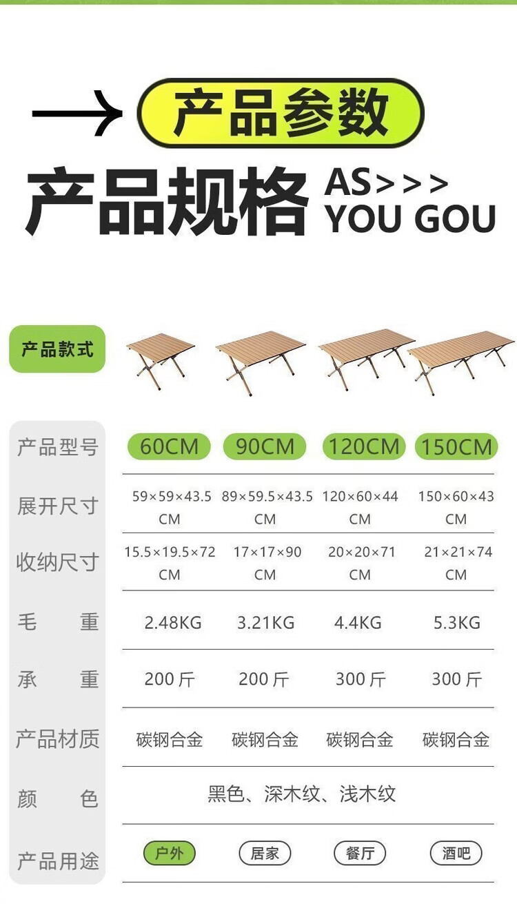 耀和福户外折叠蛋卷桌椅多功能家用全套耐用新款懒人便携式露营野餐用品 黑色 【加固-送收纳】 60单桌【厂家直发 只为冲量】