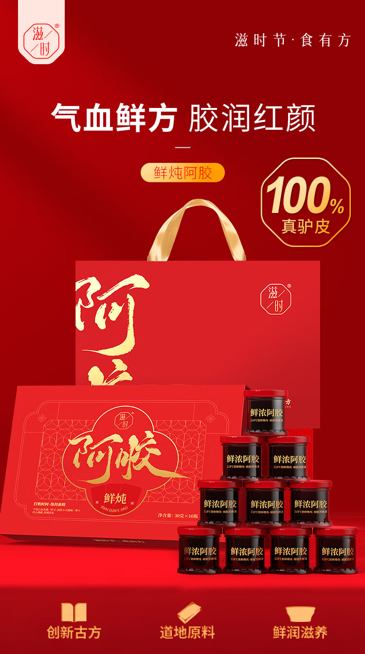 滋时鲜炖阿胶礼盒30g*10瓶 滋气补血养颜营养品 送礼滋补高档礼盒 滋时炖阿胶 30g*10瓶 (礼盒装*1盒)