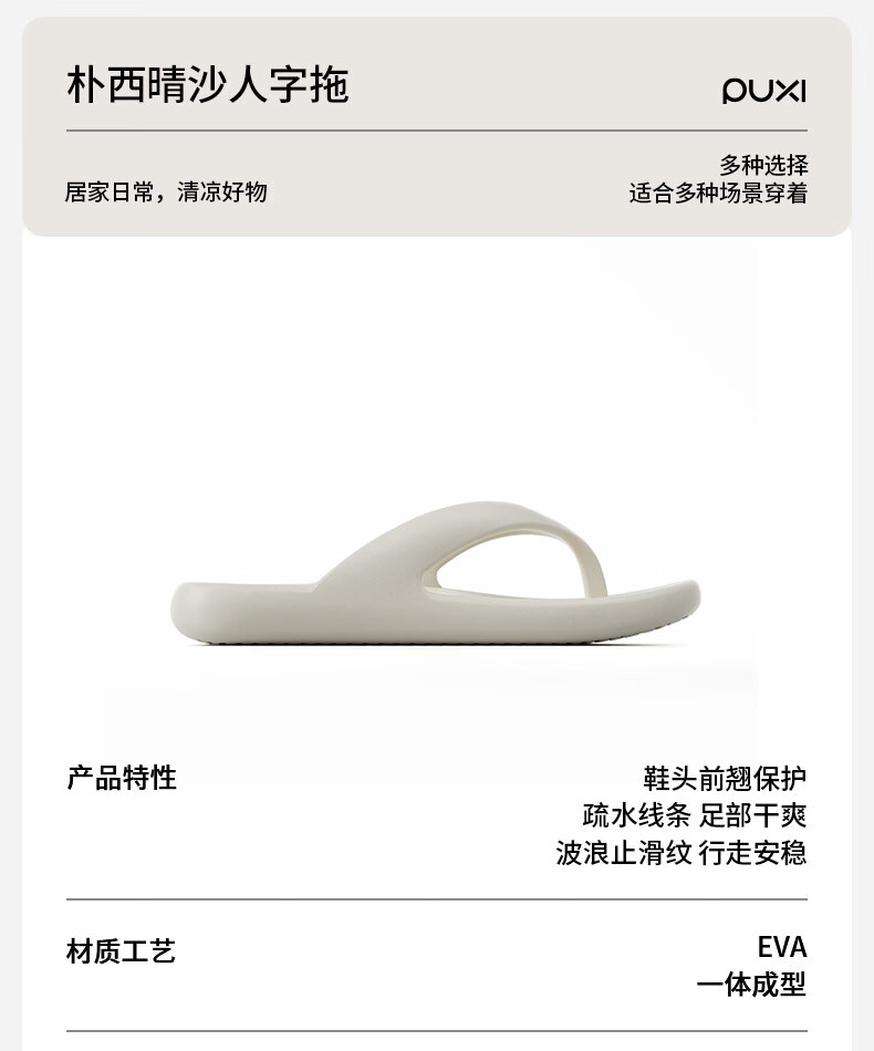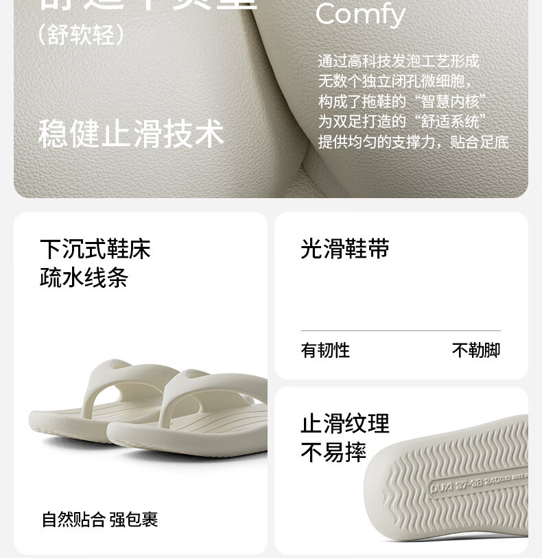 朴西晴沙居家室内凉拖鞋男春季新款软底防滑可外穿海边人字拖鞋女 云朵白 37-38