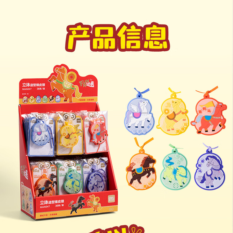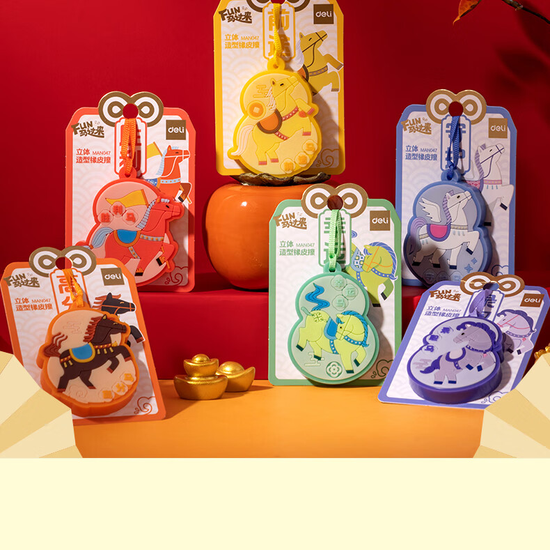 得力橡皮擦马年立体橡皮小学生用少屑干净不易留痕铅笔擦字用儿童卡通橡皮檫幼儿园礼物橡皮创意象皮 【马到成功-立体橡皮】随机5块 无规格