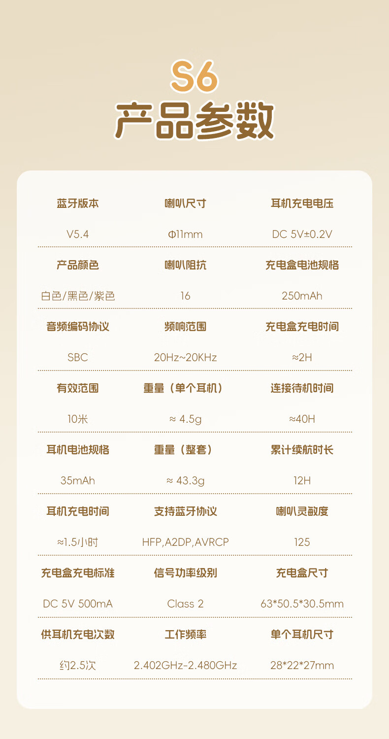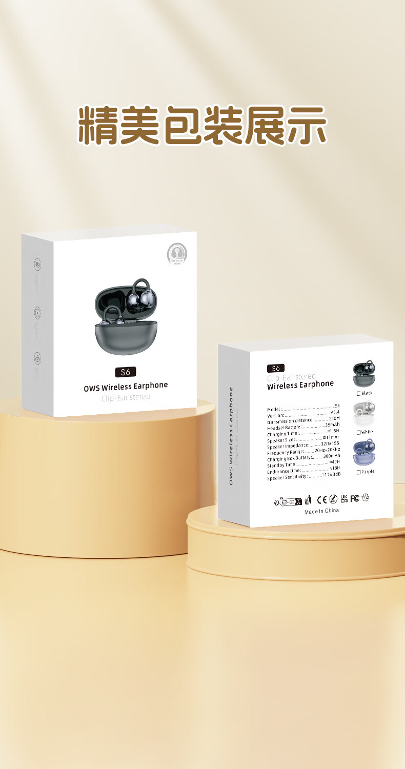 中性2025新款蓝牙耳机S6运动耳机夹耳式高颜值不入耳无线蓝牙耳机 S6pro紫罗兰(数显