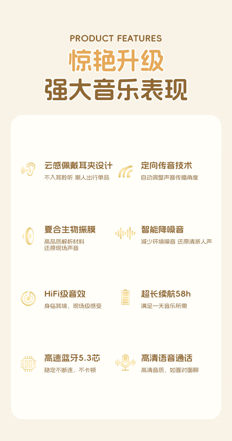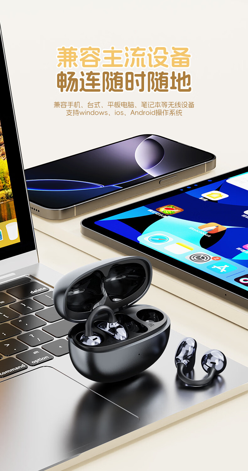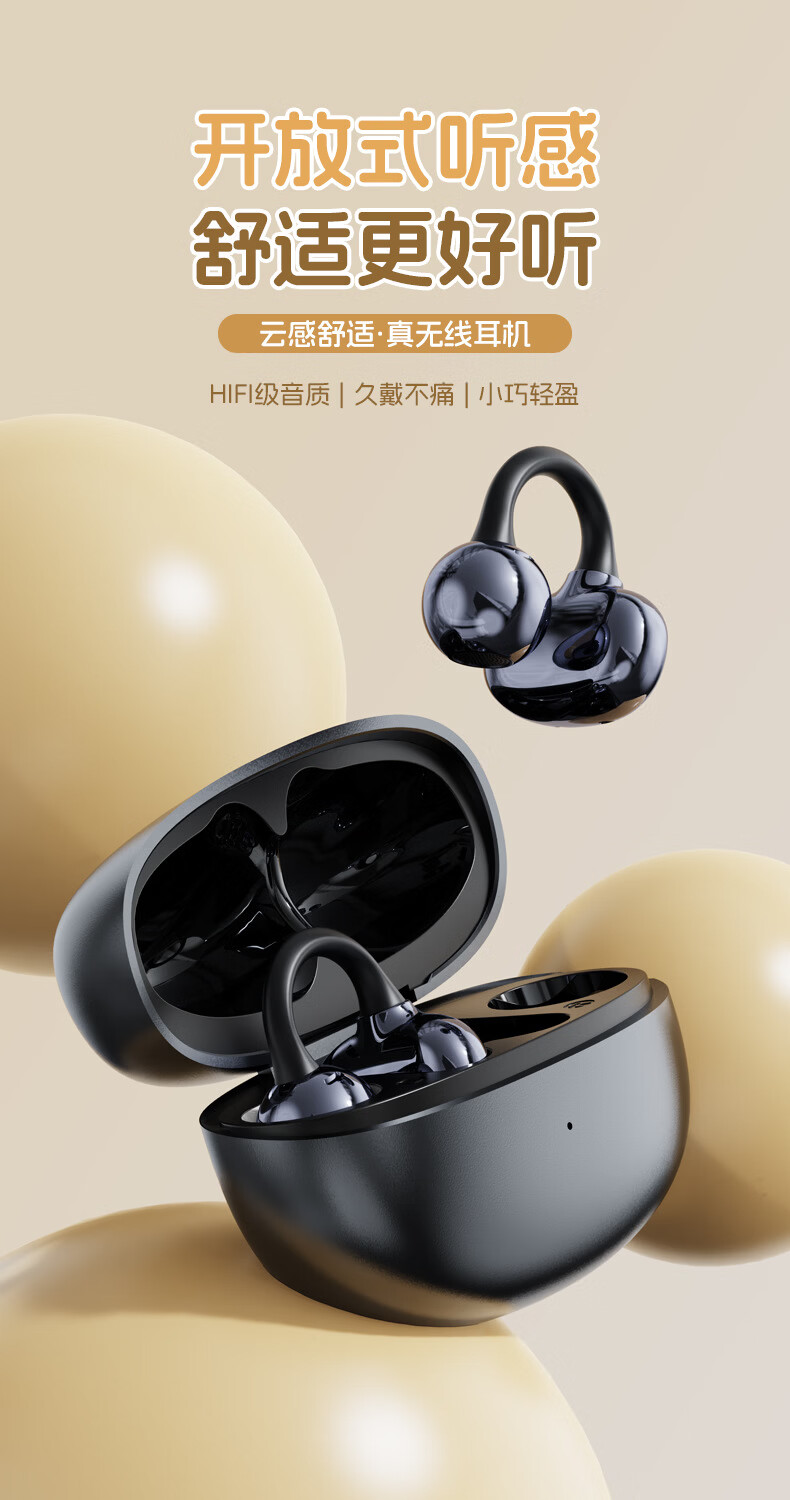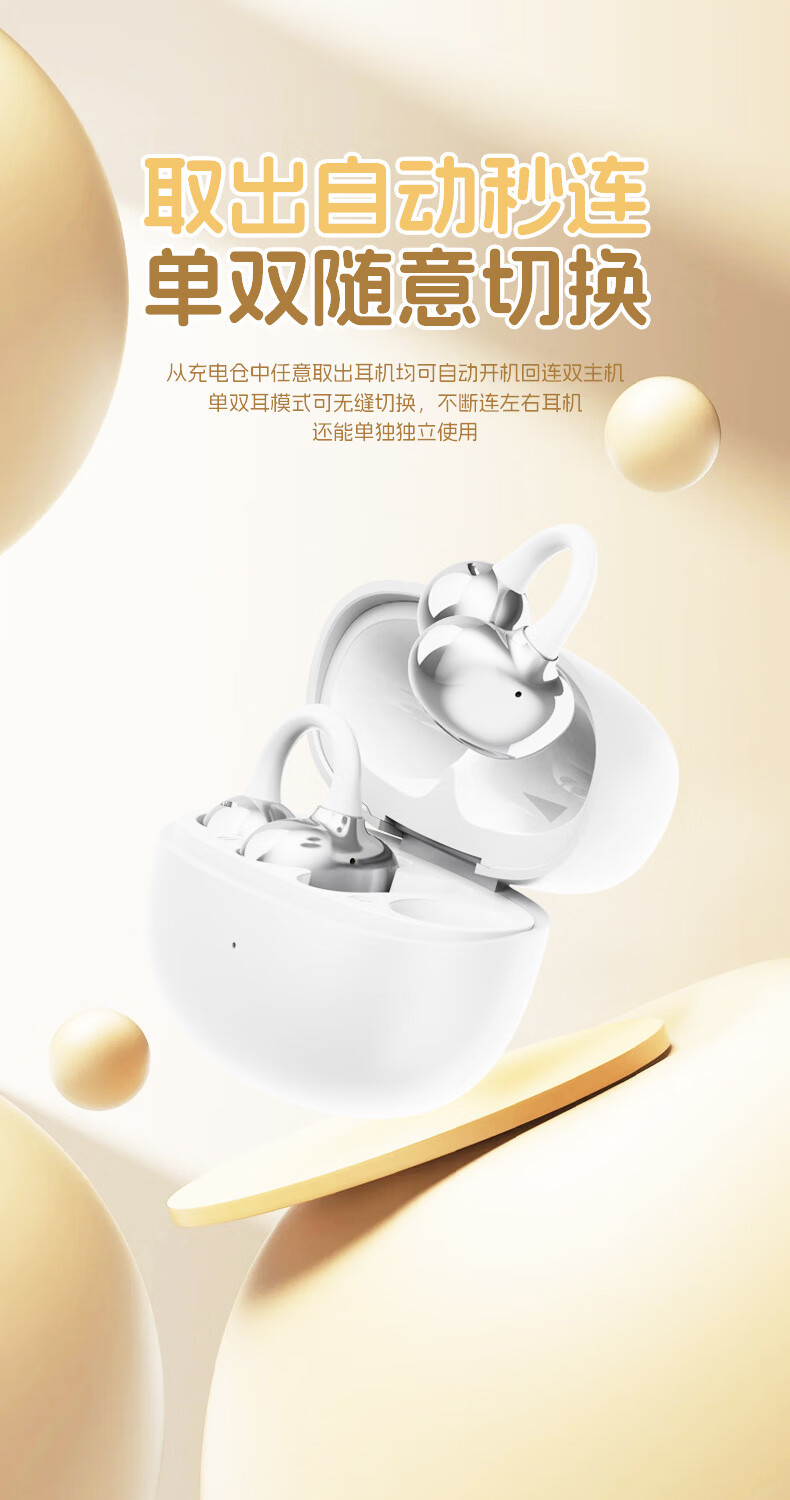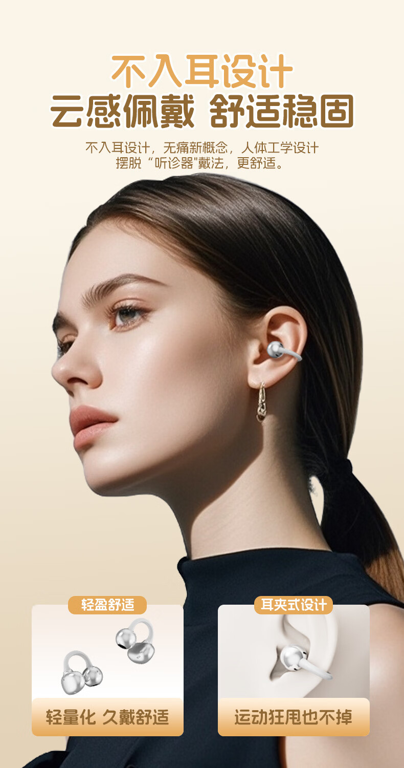 麦拉森【优选】蓝牙耳机真无线不入耳非骨传导耳夹式跑步运动降噪通话户外骑行适用于安卓华为苹果 象牙白+定向音频传输 单耳版【近6小时续航】