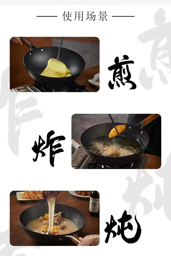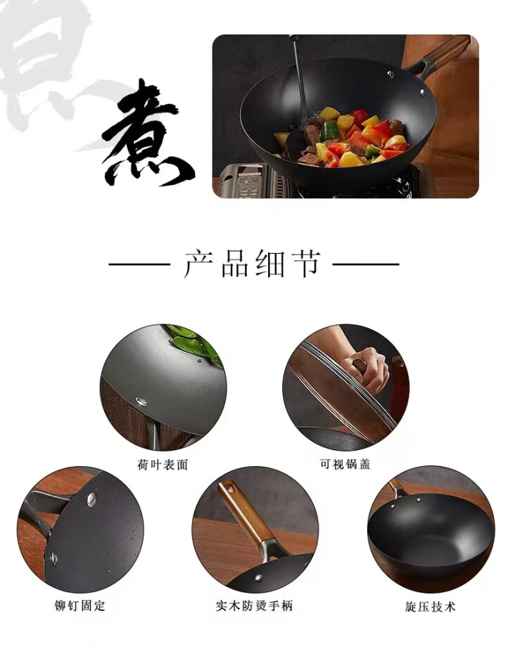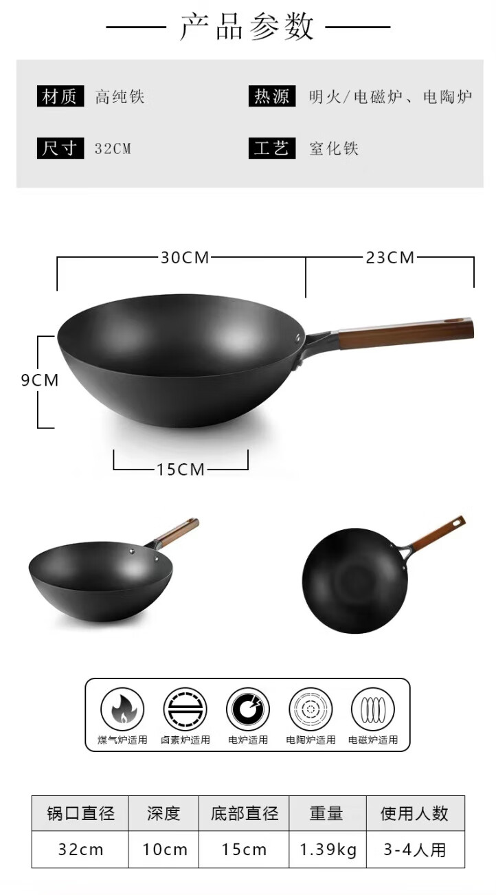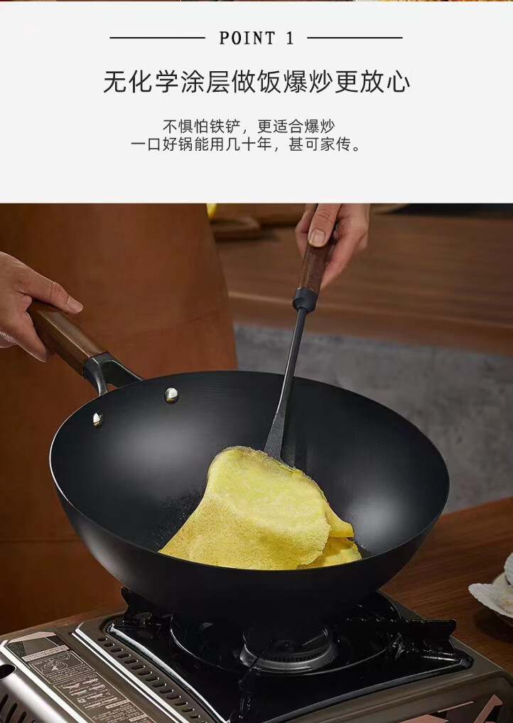 章状元章丘炒锅铸铁锅古法工艺老式生铁铸铁无涂层不易粘家用炒菜锅 古法铸铁锅+盖子铲子 32cm