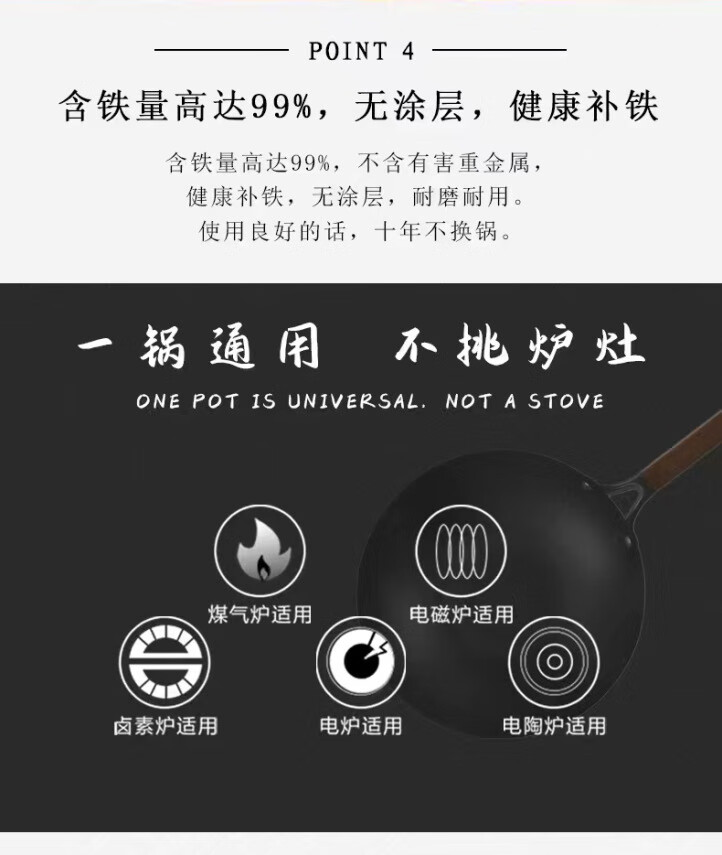 胖东来同款深氮铁锅无涂层不粘锅平底锅铸铁生铁锅氮化炒菜锅家用厨具 商用极铁双耳炒锅(无盖 50cm
