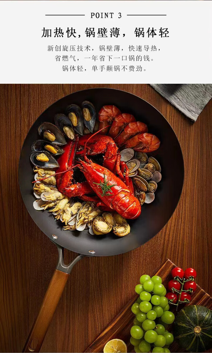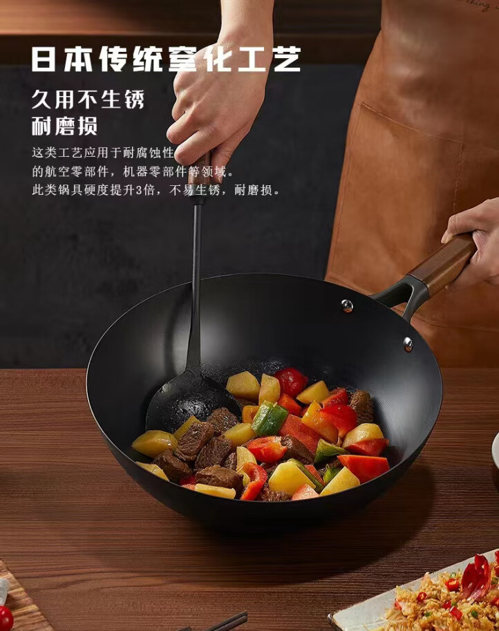 仟厨皇麦饭石炒锅铁锅不粘锅 家用平底锅铁锅炒菜锅燃气灶通用熟铁锅 【升级尊享款+蒸笼】带盖 34cm