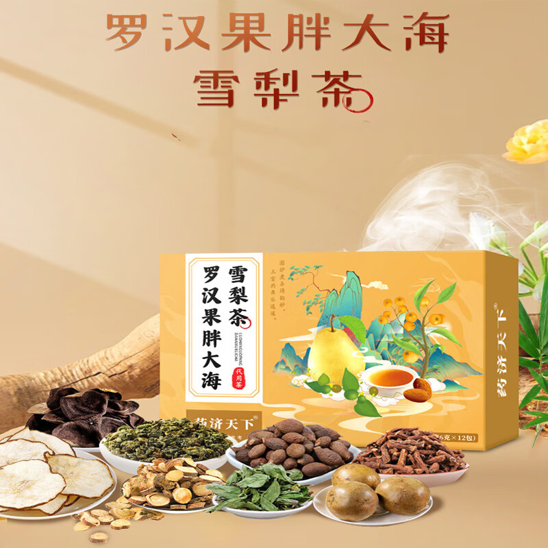 药济天下【正品直发】罗汉果胖大海雪梨茶 胖大海雪梨枇杷茶 罗汉果胖大海雪梨茶6g*12袋*三盒装