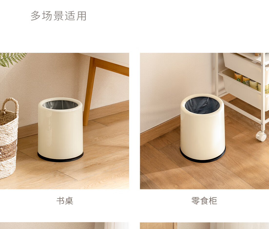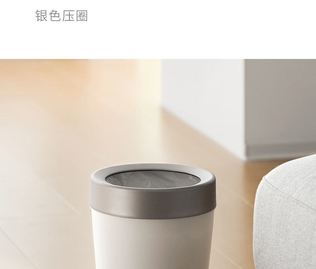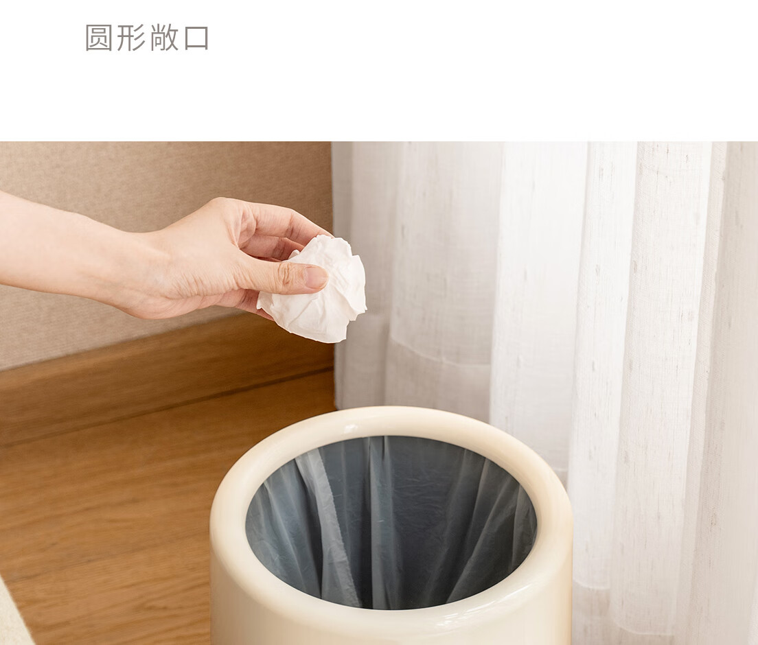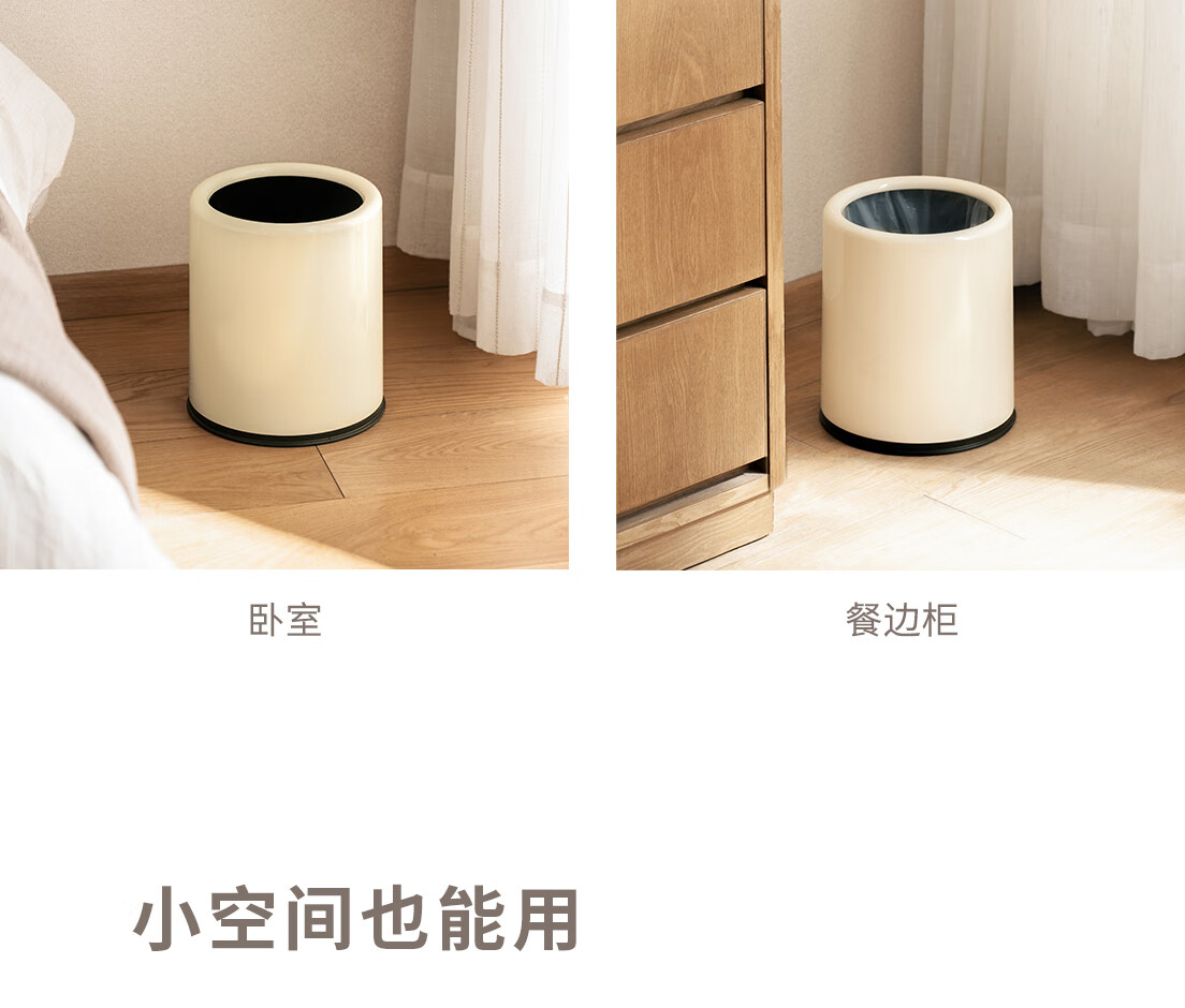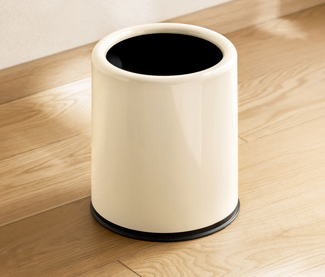 懒角落卫生间垃圾桶家用大容量厨房客厅厕所卧室高颜值大号放纸桶纸篓 无盖圆形 米白色 14L
