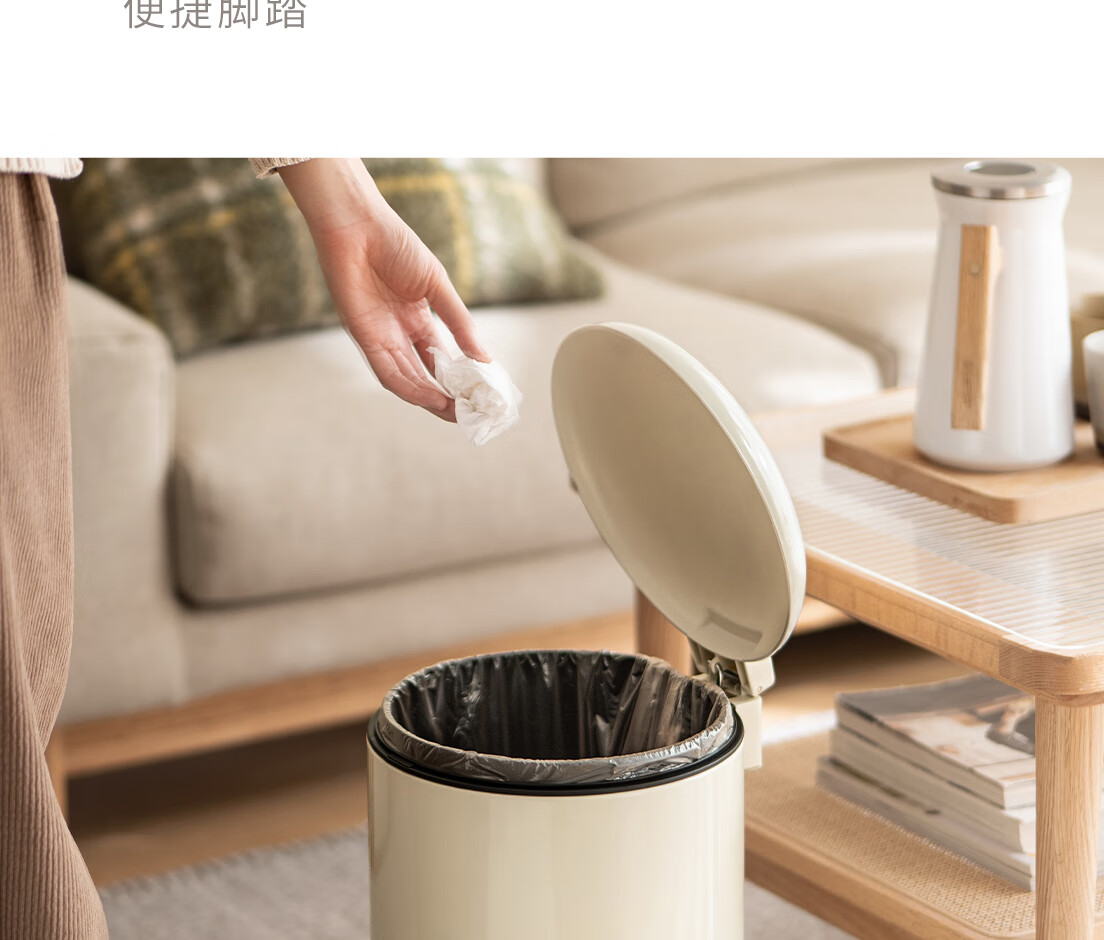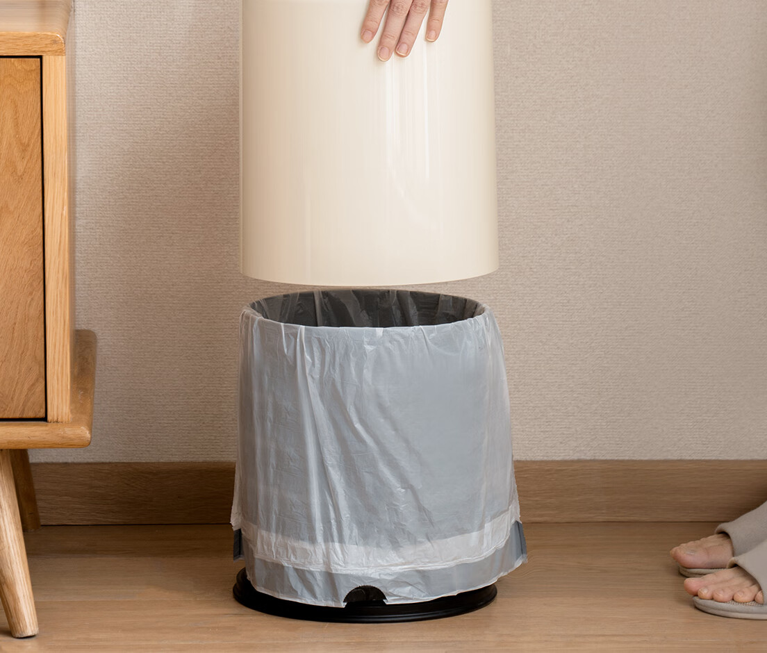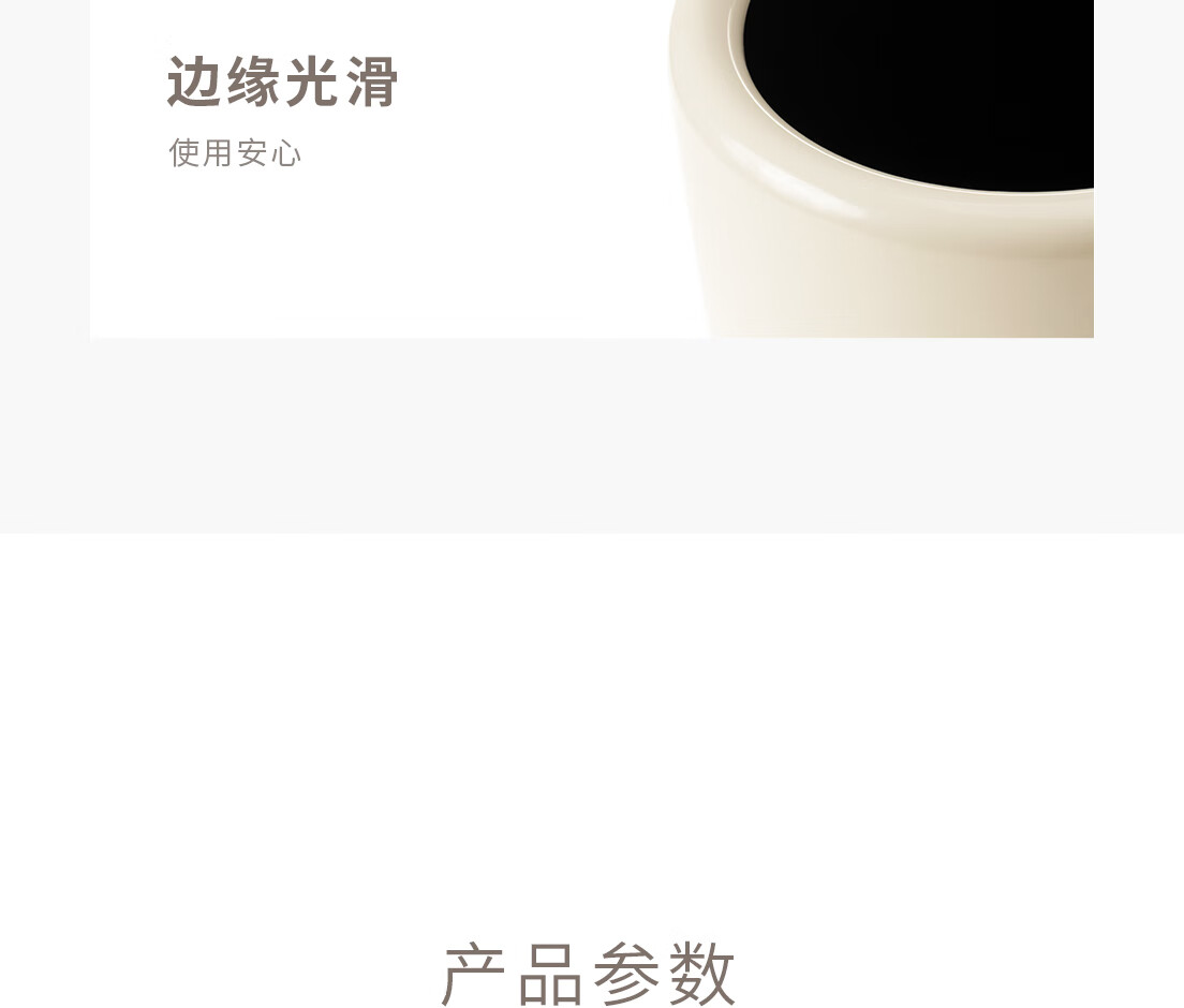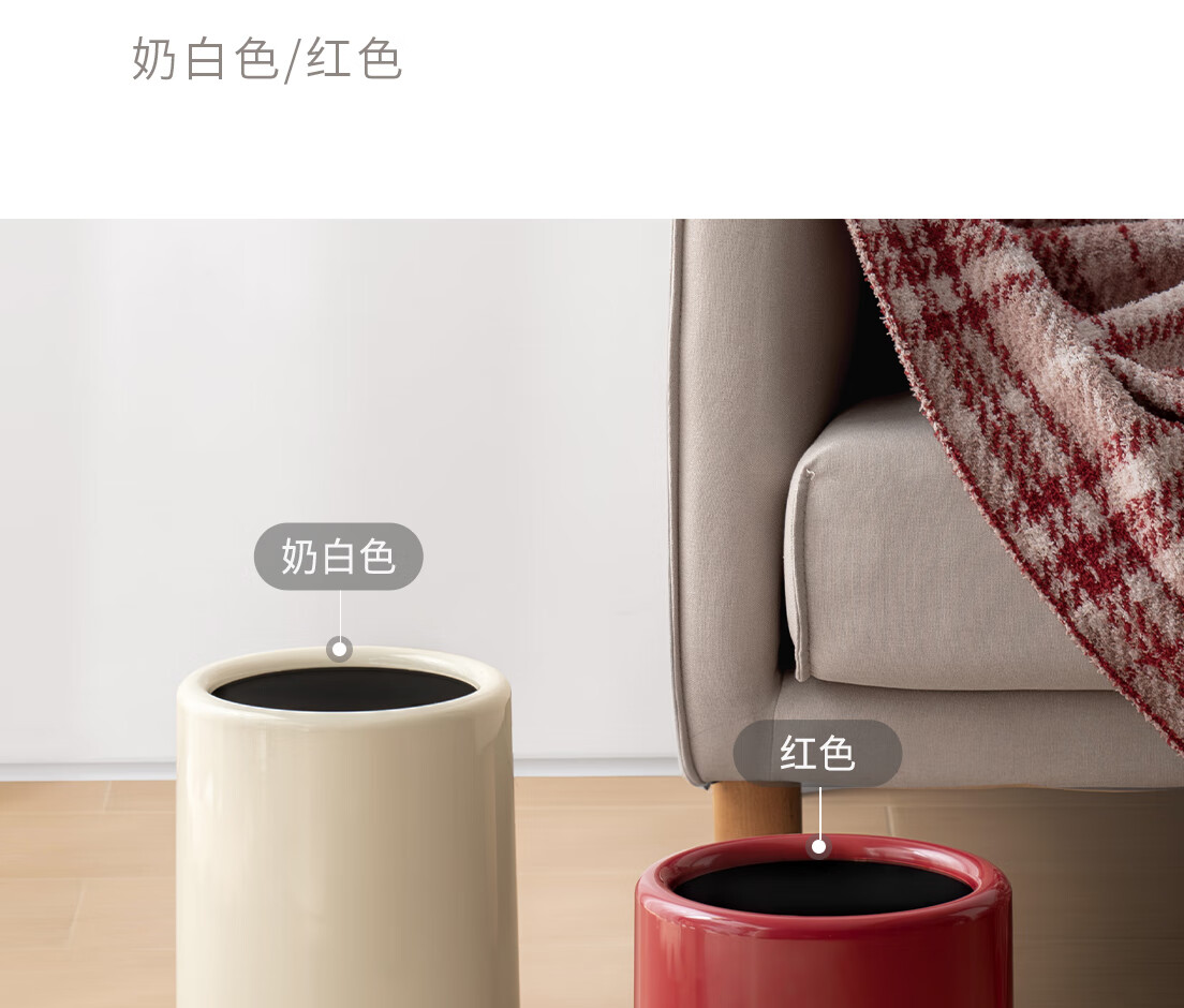 懒角落卫生间垃圾桶家用大容量厨房客厅厕所卧室高颜值大号放纸桶纸篓 无盖圆形 米白色 14L