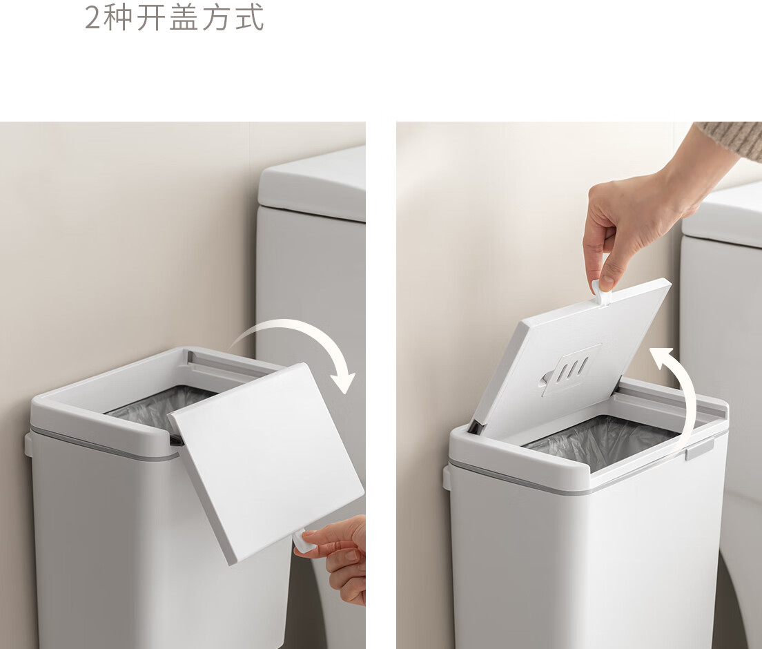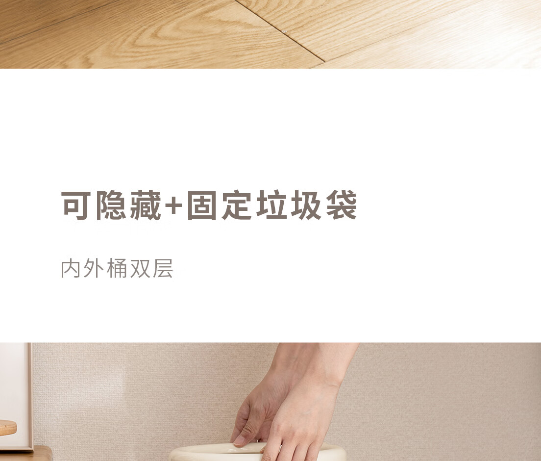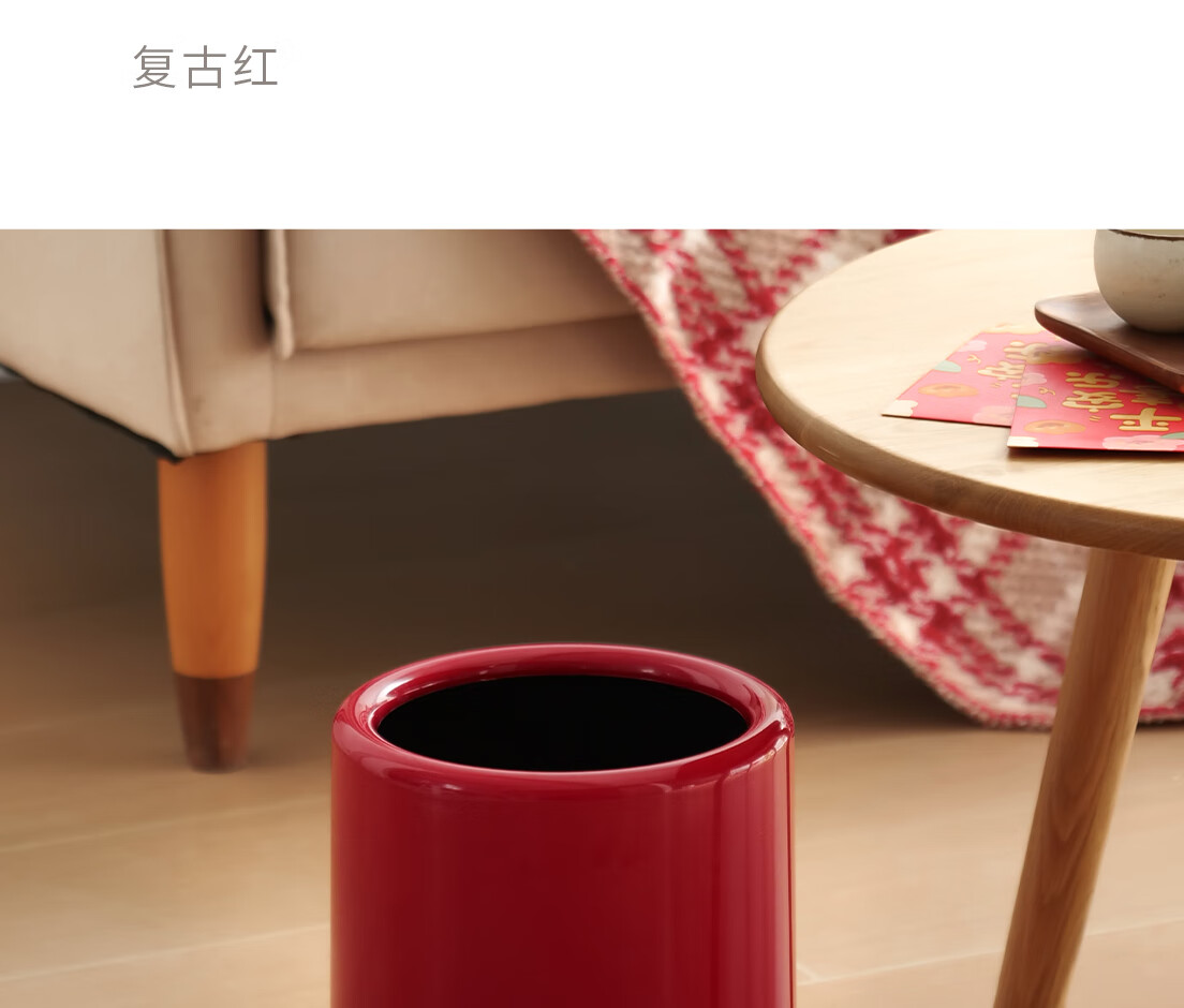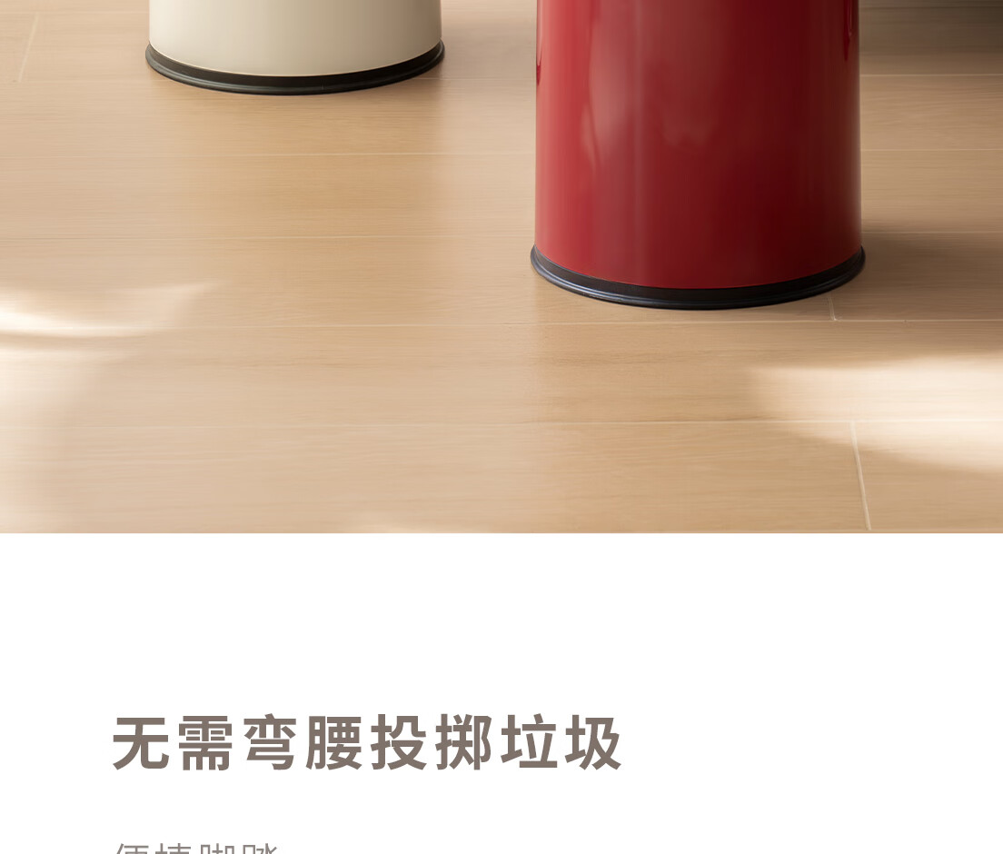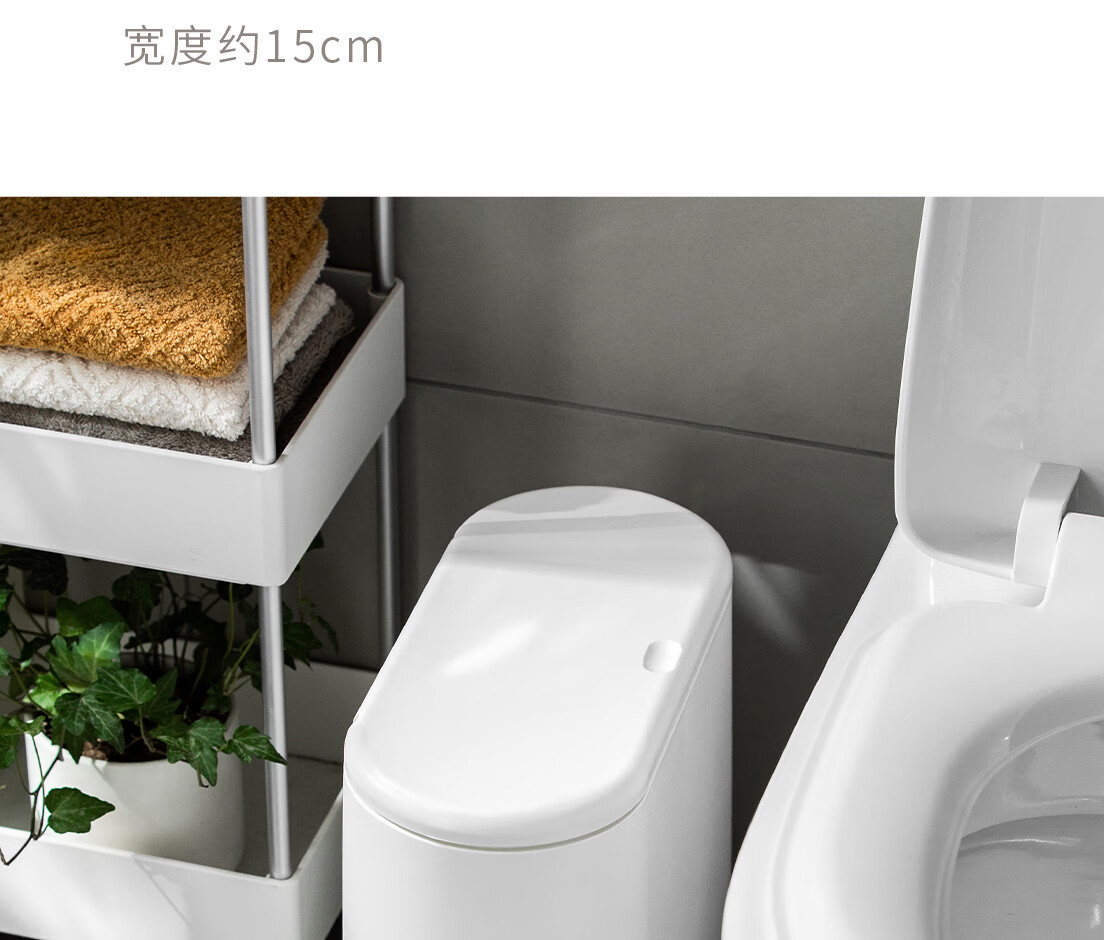 懒角落卫生间垃圾桶家用大容量厨房客厅厕所卧室高颜值大号放纸桶纸篓 无盖圆形 米白色 14L