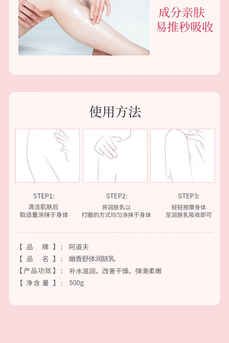 阿道夫身体乳女全身保湿滋润嫩肤清爽持久留香体护肤露春夏四季润肤乳 幽香舒体润肤乳500g