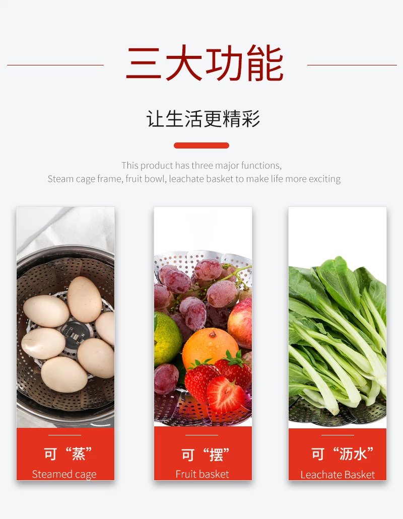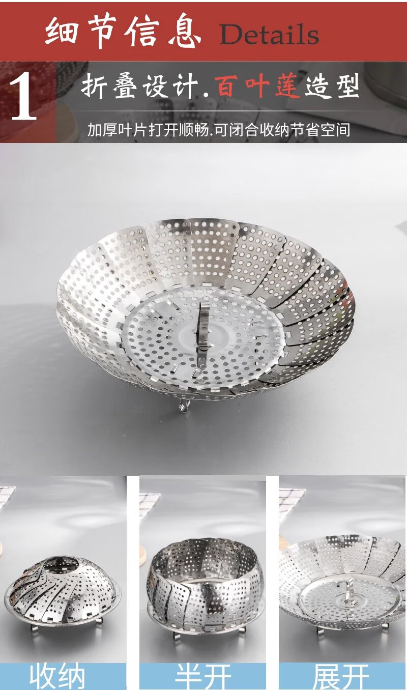 加厚不锈钢蒸架可折叠蒸笼盘蒸屉蒸格水果篮家用蒸盘器厨房收纳
