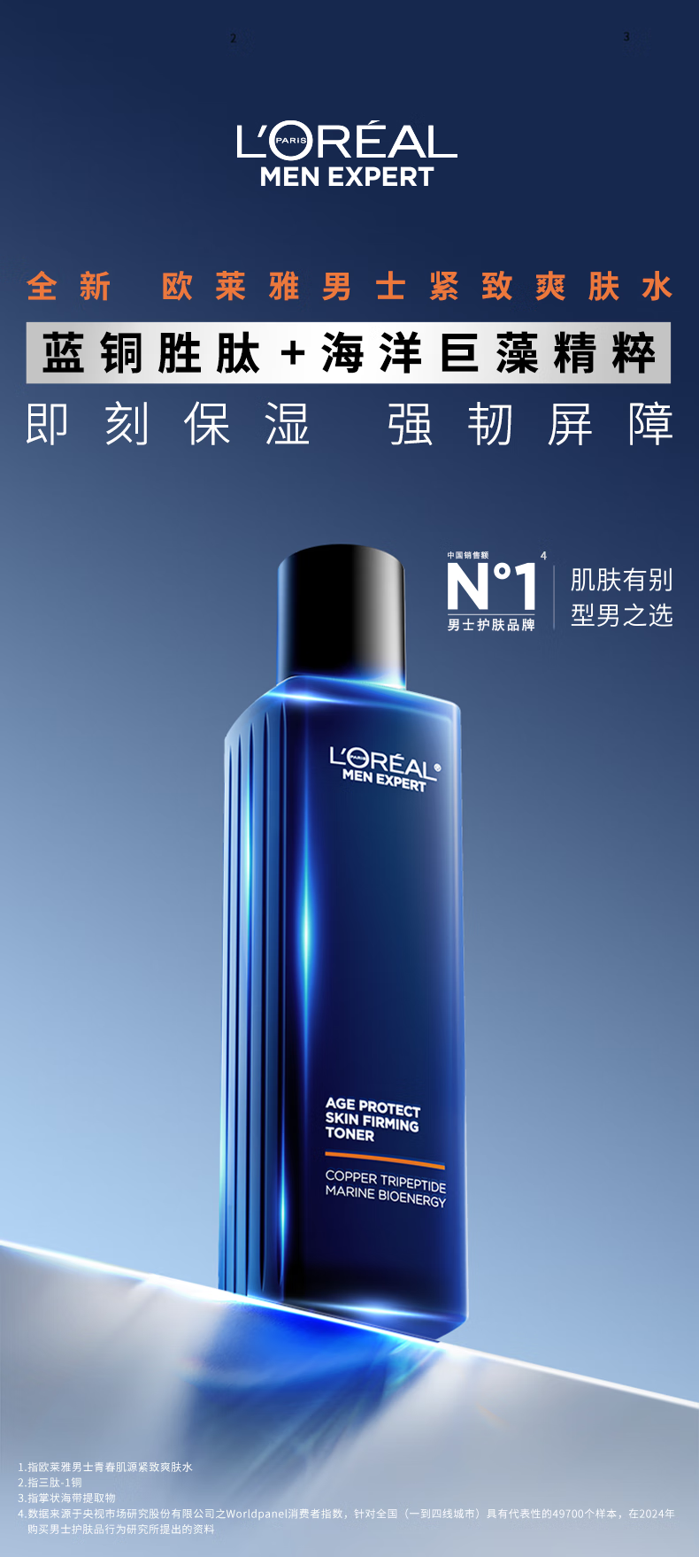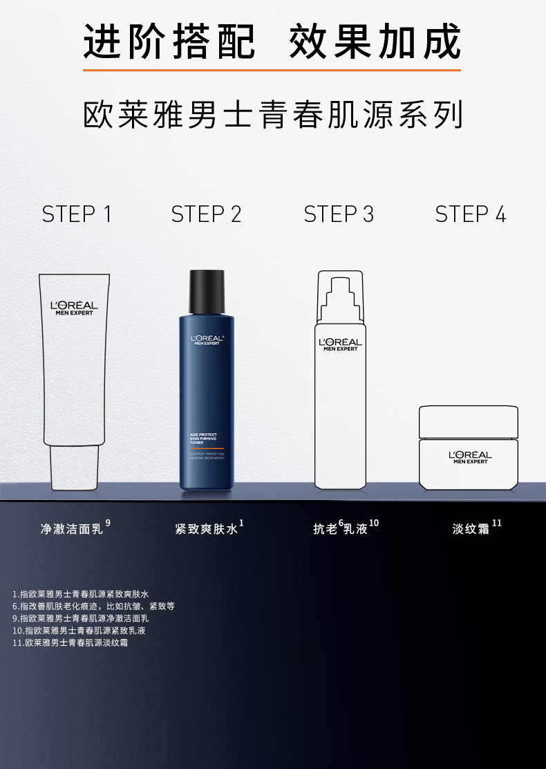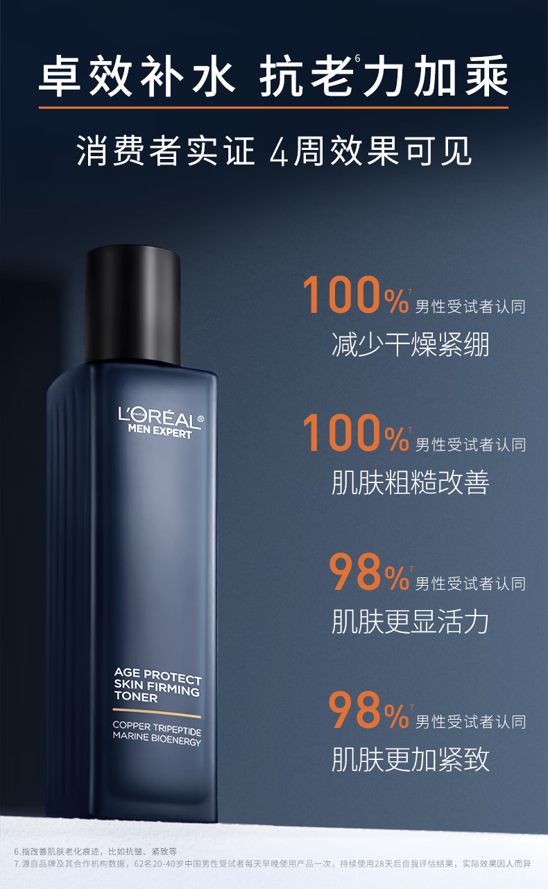 欧莱雅男士青春肌源抗皱紧致爽肤水180ml补水保湿须后护肤品礼物送男生