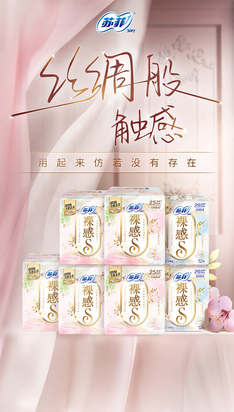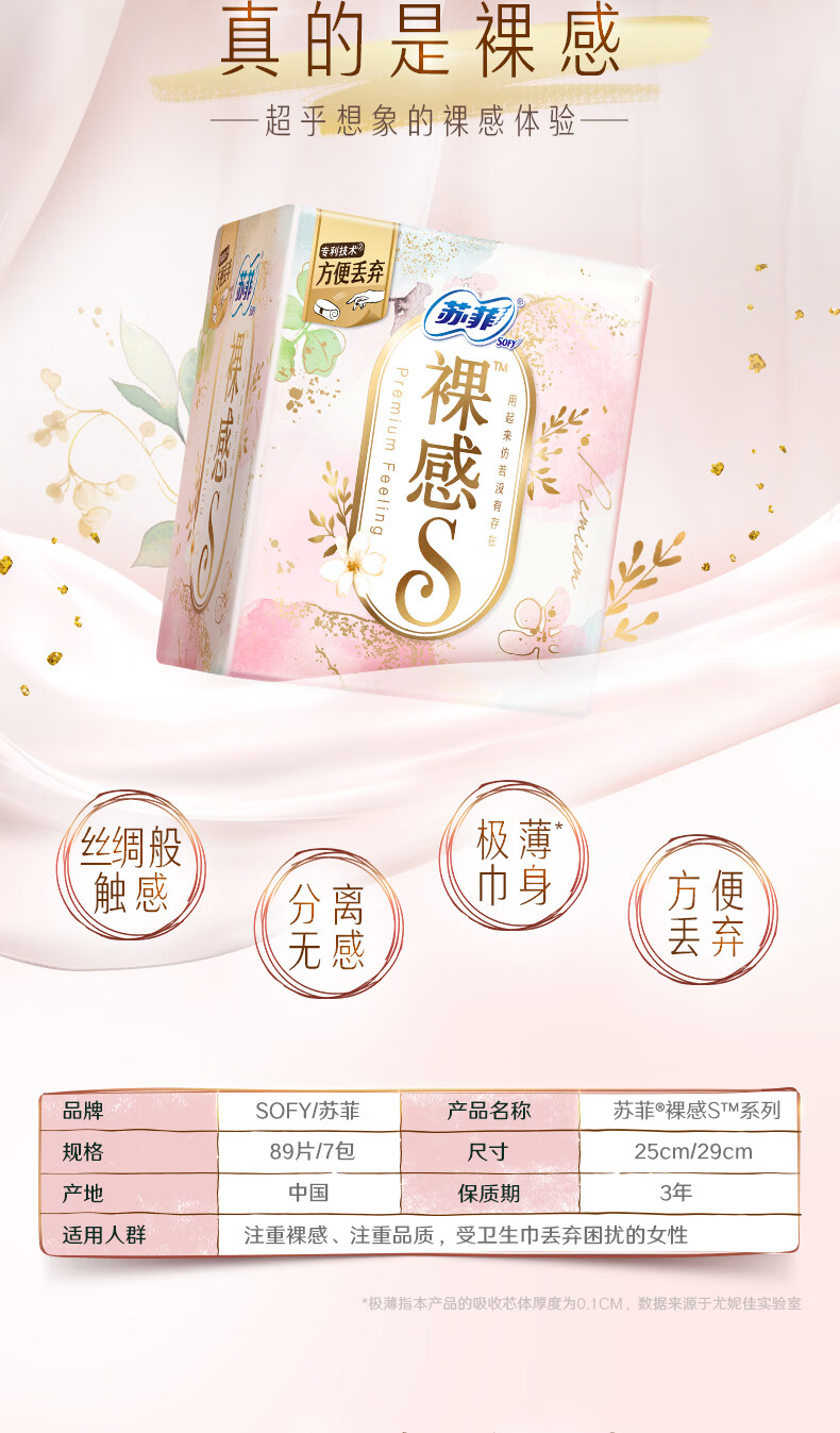 苏菲【婴儿级标准】极上裸感日夜用卫生巾89片透气加长姨妈巾京东自营