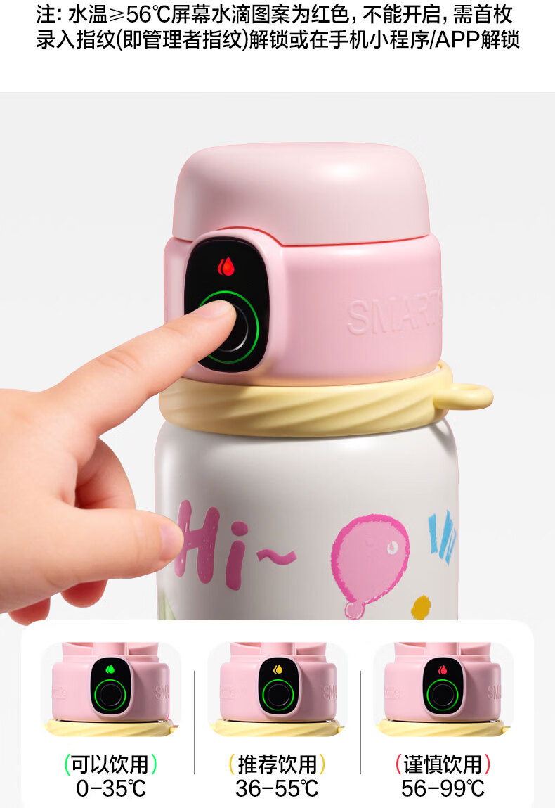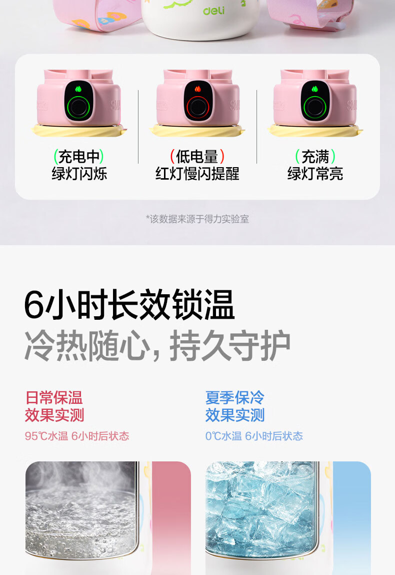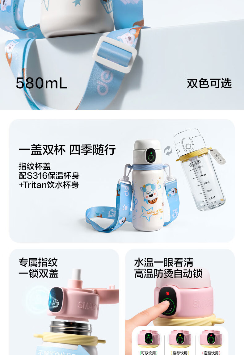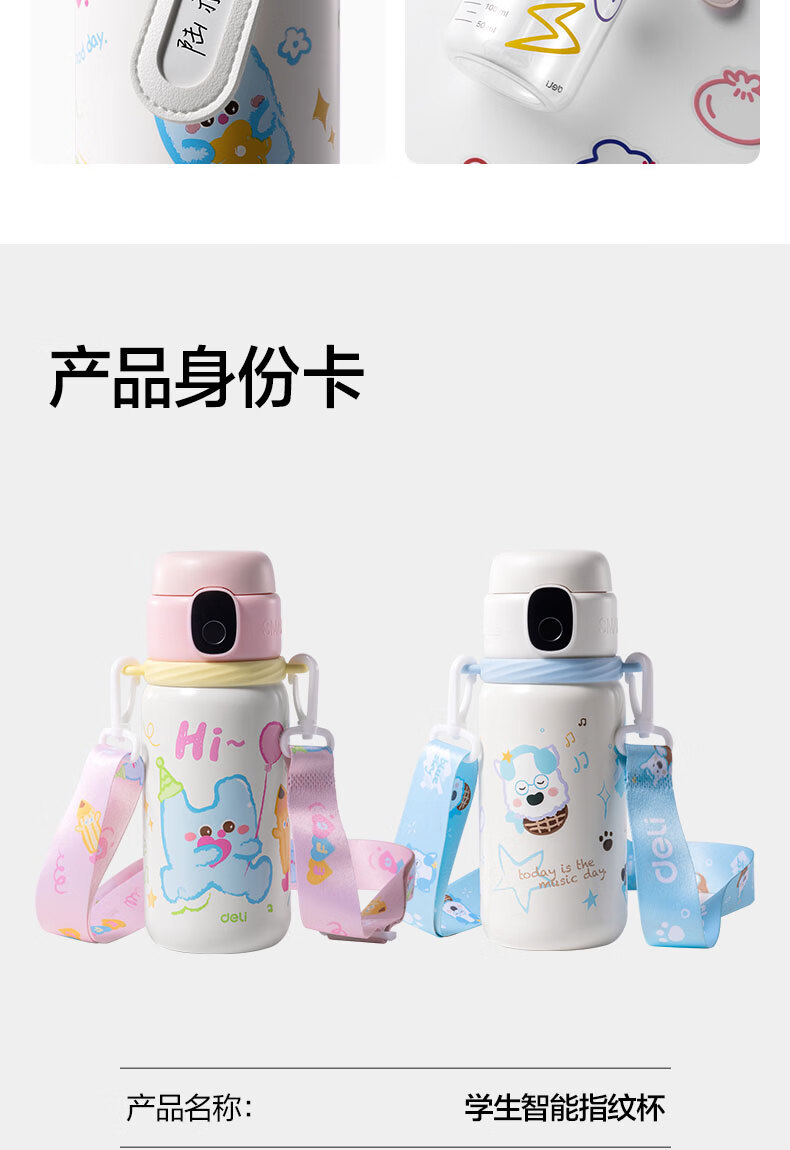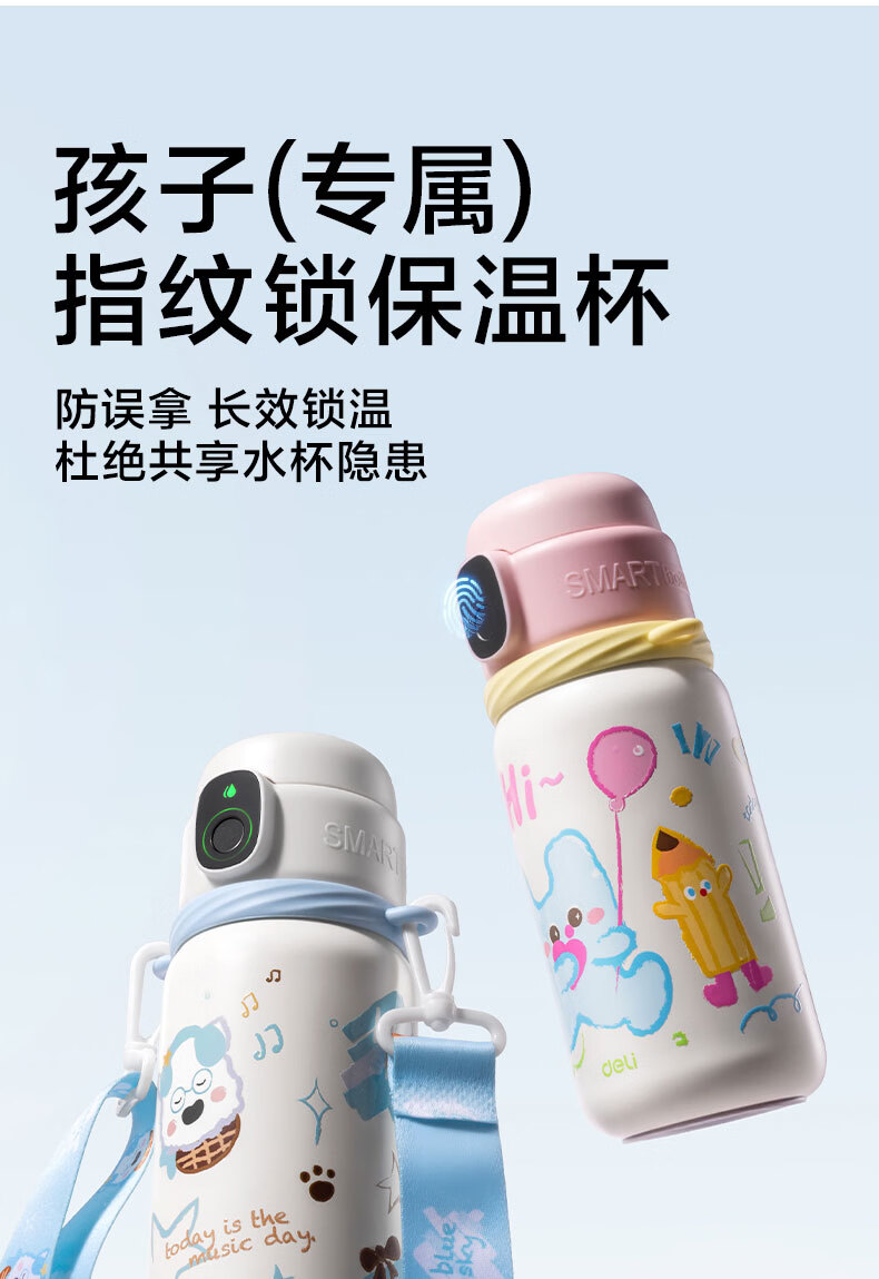 得力(deli)京东限定儿童智能指纹保温杯一盖双杯316不锈钢男女580ml水杯子