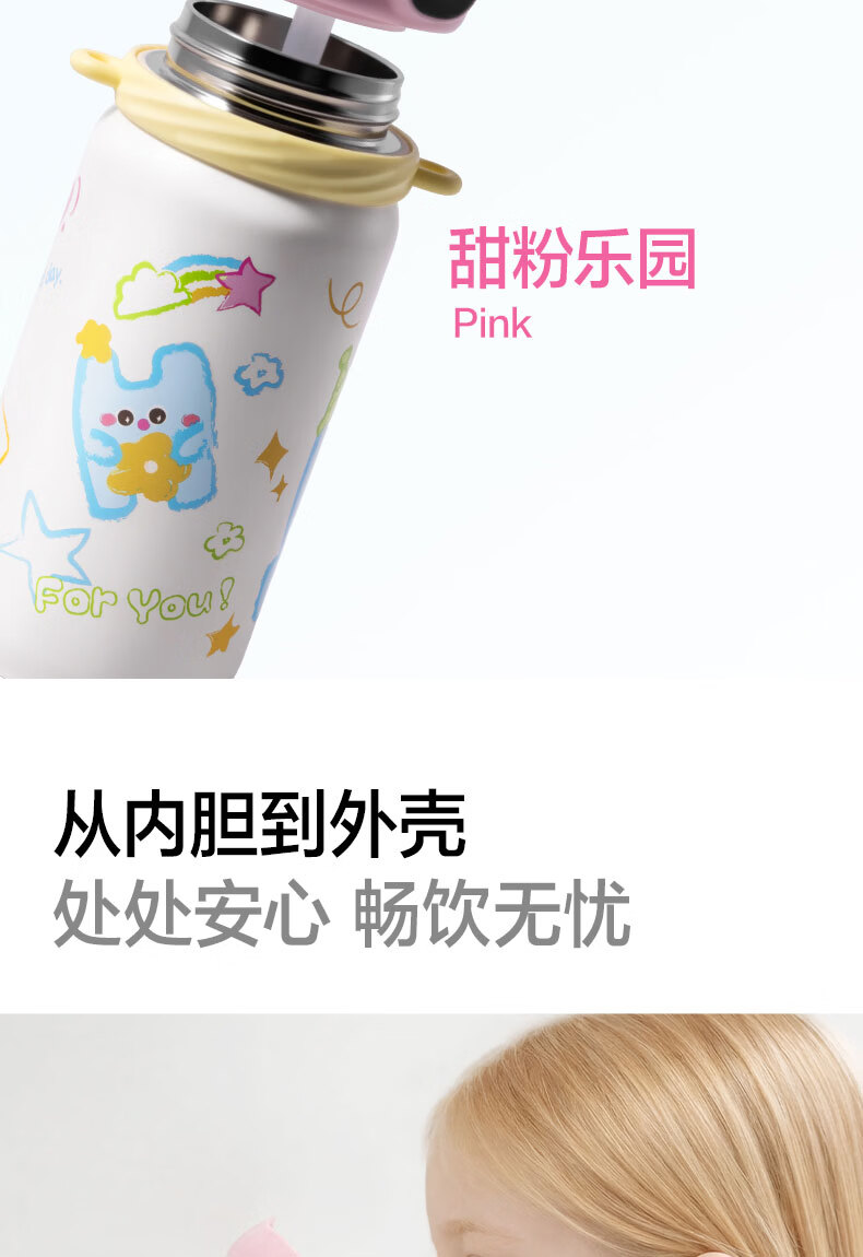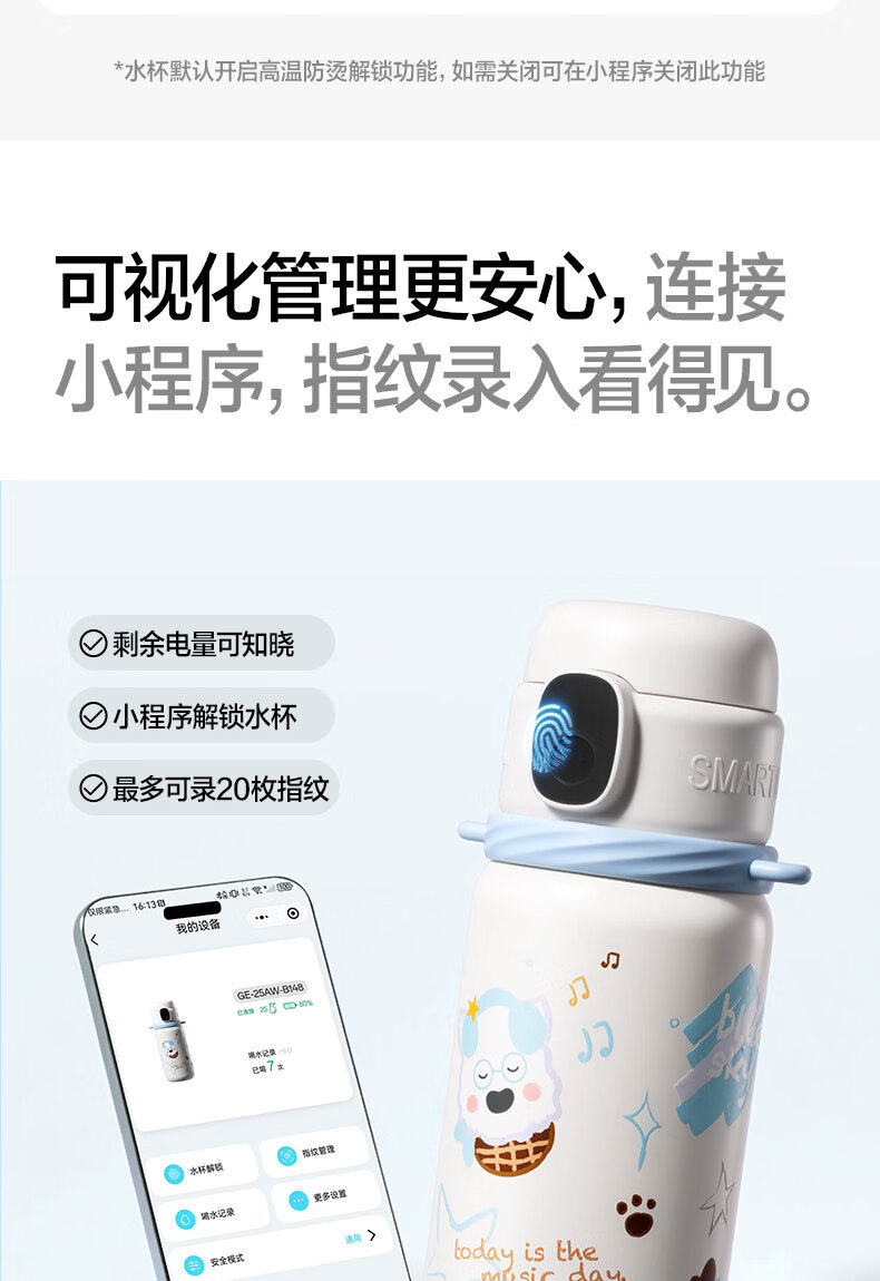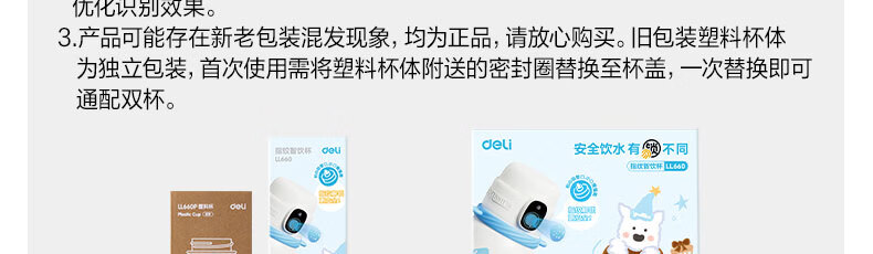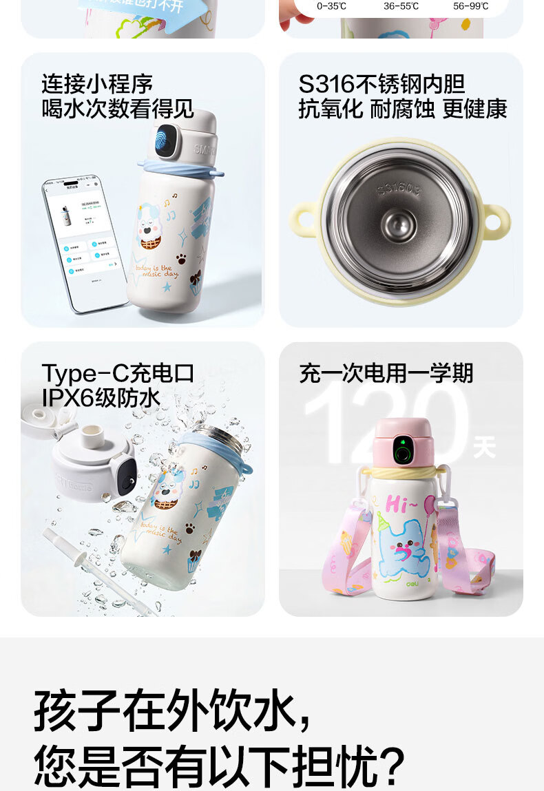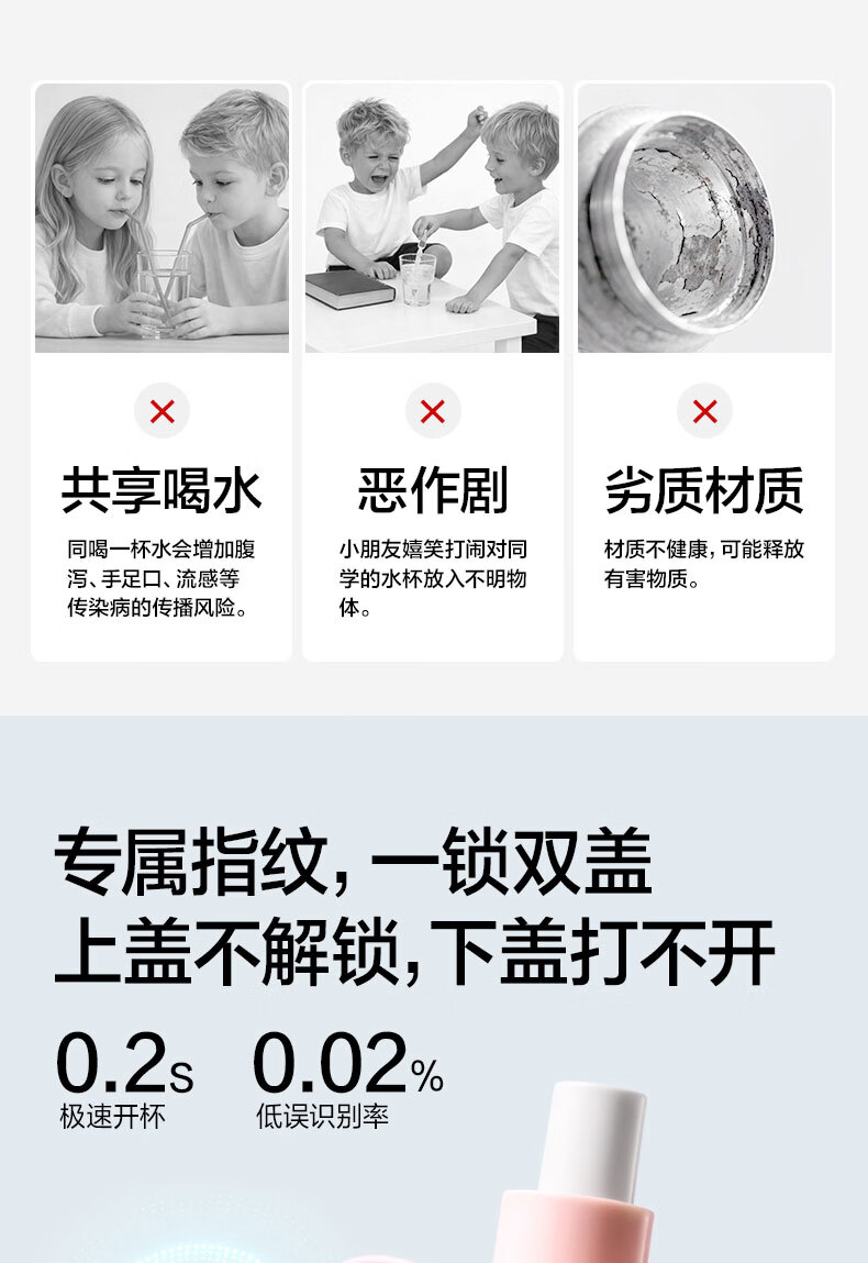 得力(deli)京东限定儿童智能指纹保温杯一盖双杯316不锈钢男女580ml水杯子