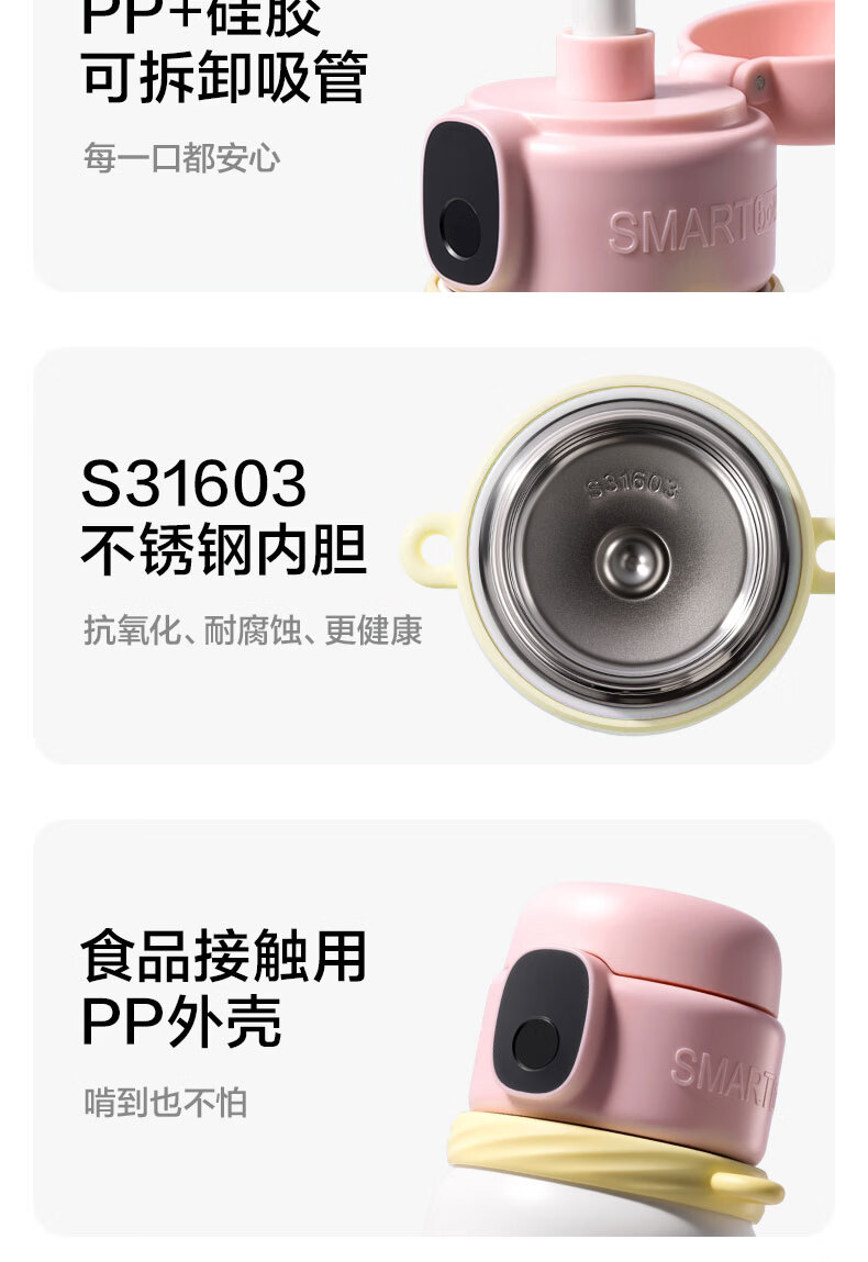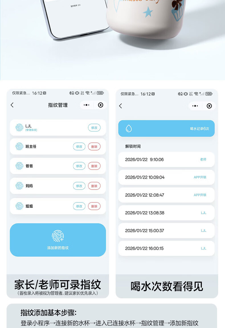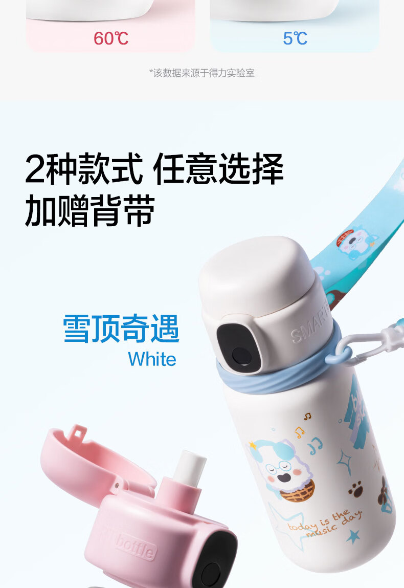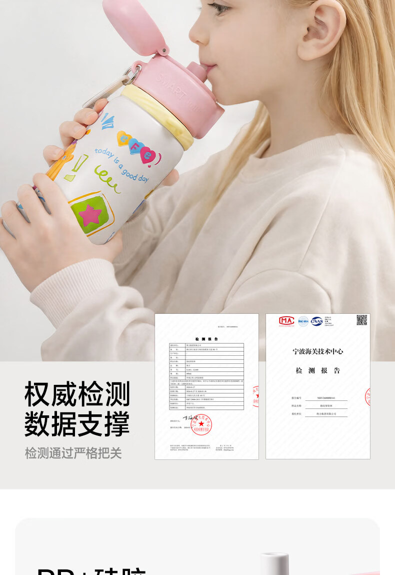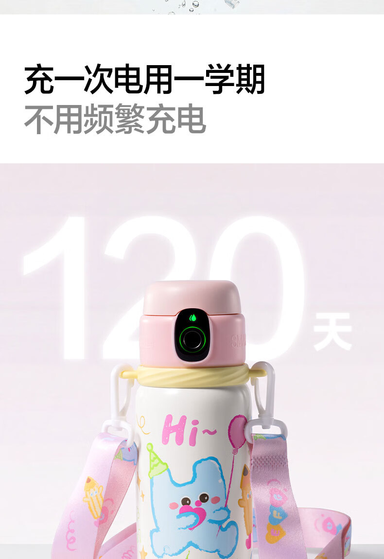 得力(deli)京东限定儿童智能指纹保温杯一盖双杯316不锈钢男女580ml水杯子