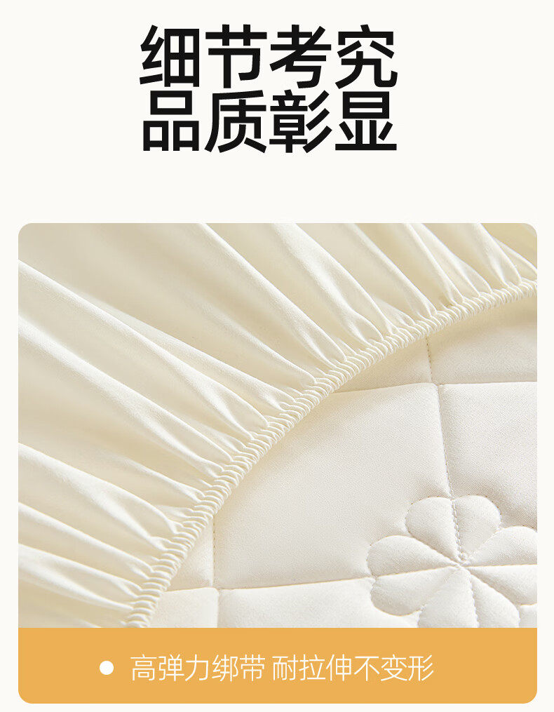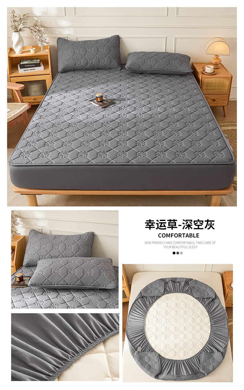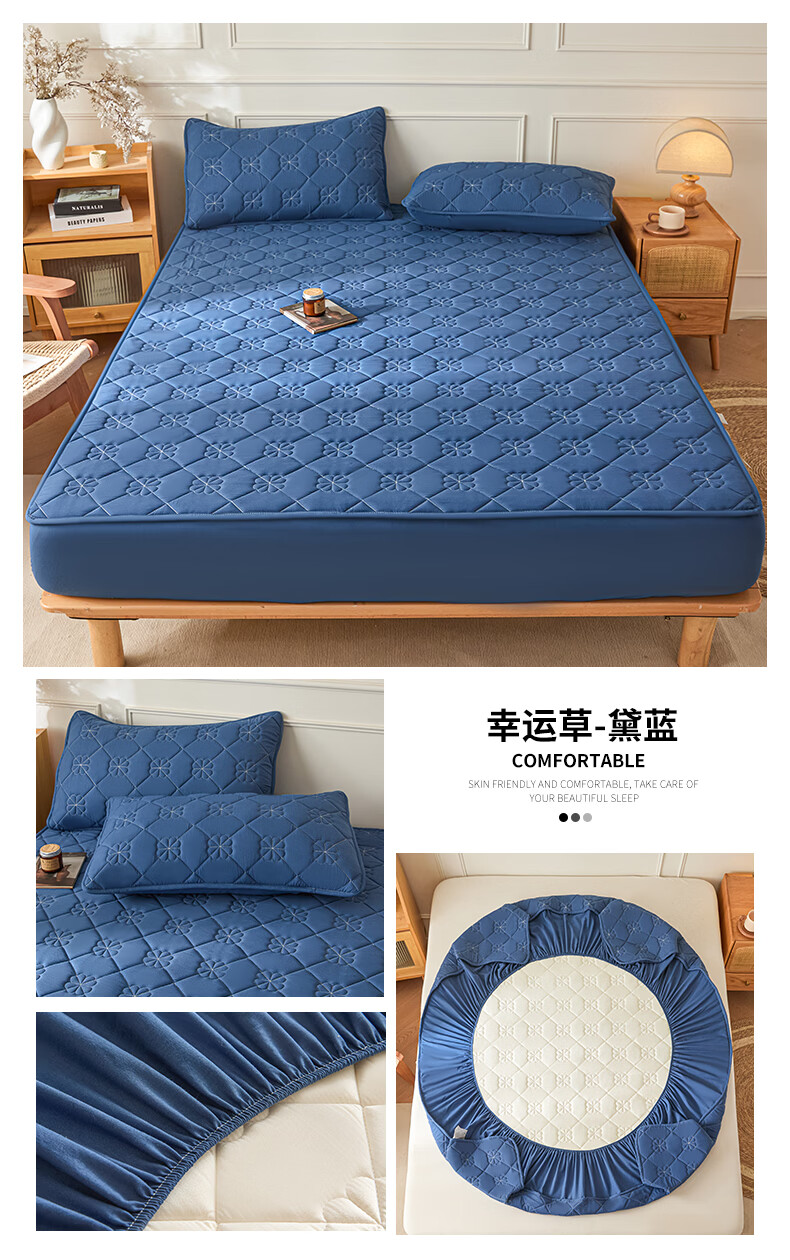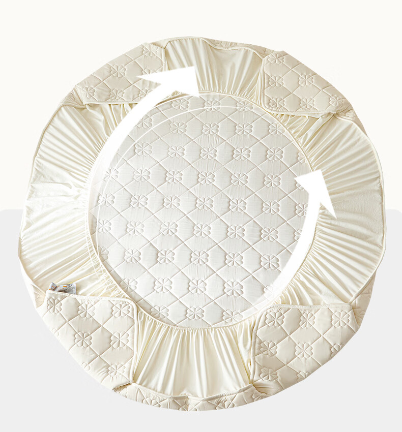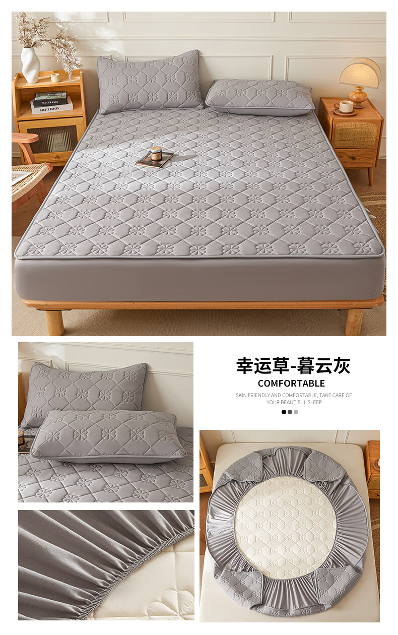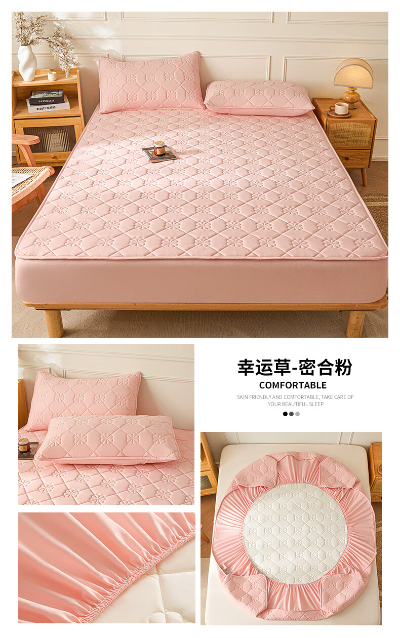 无印良品7A抗菌夹棉床笠1.8米x2米单件家用加厚床罩床垫保护套床单防尘罩 幸运草-月光白【A类夹棉 360°全包防滑】 180cm*200cm 床笠+枕套一对
