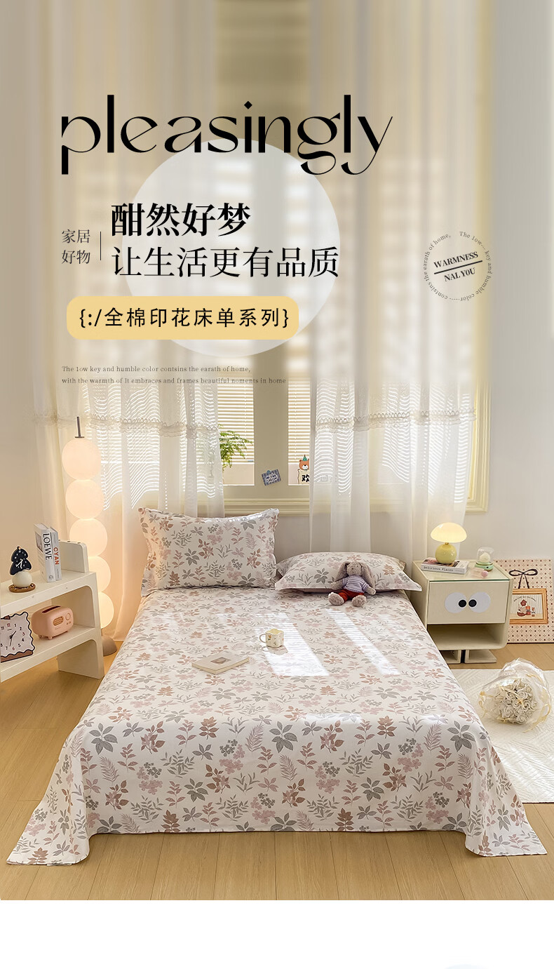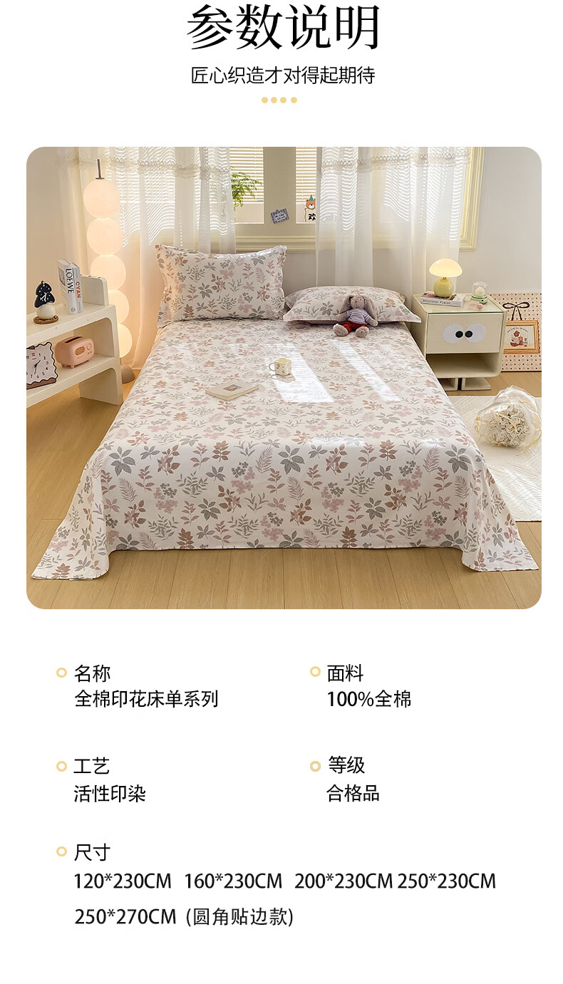 无印良品全棉床单200x230cm单件纯棉宿舍单人床盖家用裸睡被单床罩三件套 洛克庄园红【100%全棉面料/柔软舒适】 120cm*230cm 单床单【适合0.9m床】